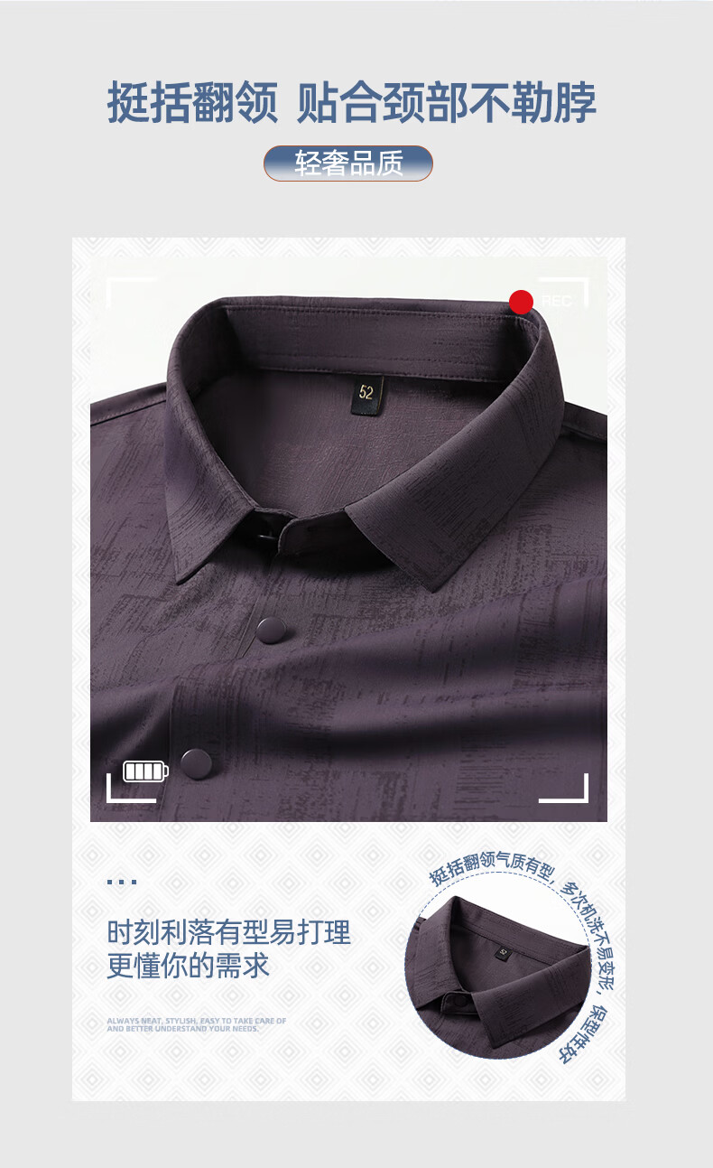 SHANSHAN杉杉【锦氨凉感透气】短袖衬衫男通勤休闲日常职场内搭夏季新款 浅灰色 M /170