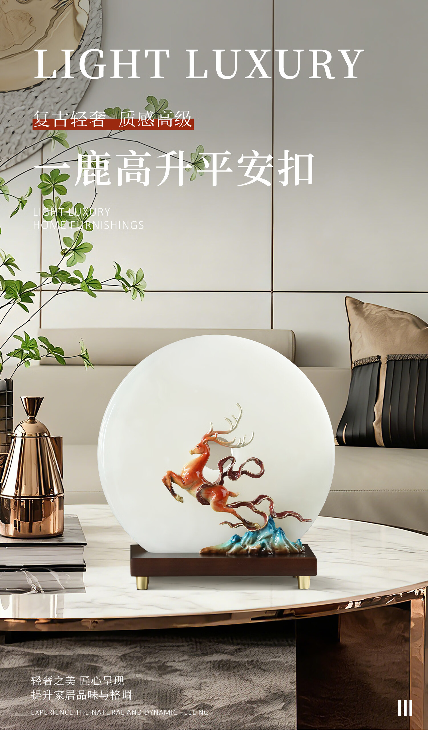 南初先生一鹿高升平安扣桌面摆件工艺品客厅电视柜老板办公室摆件开业礼物 一鹿高升平安扣-礼盒装