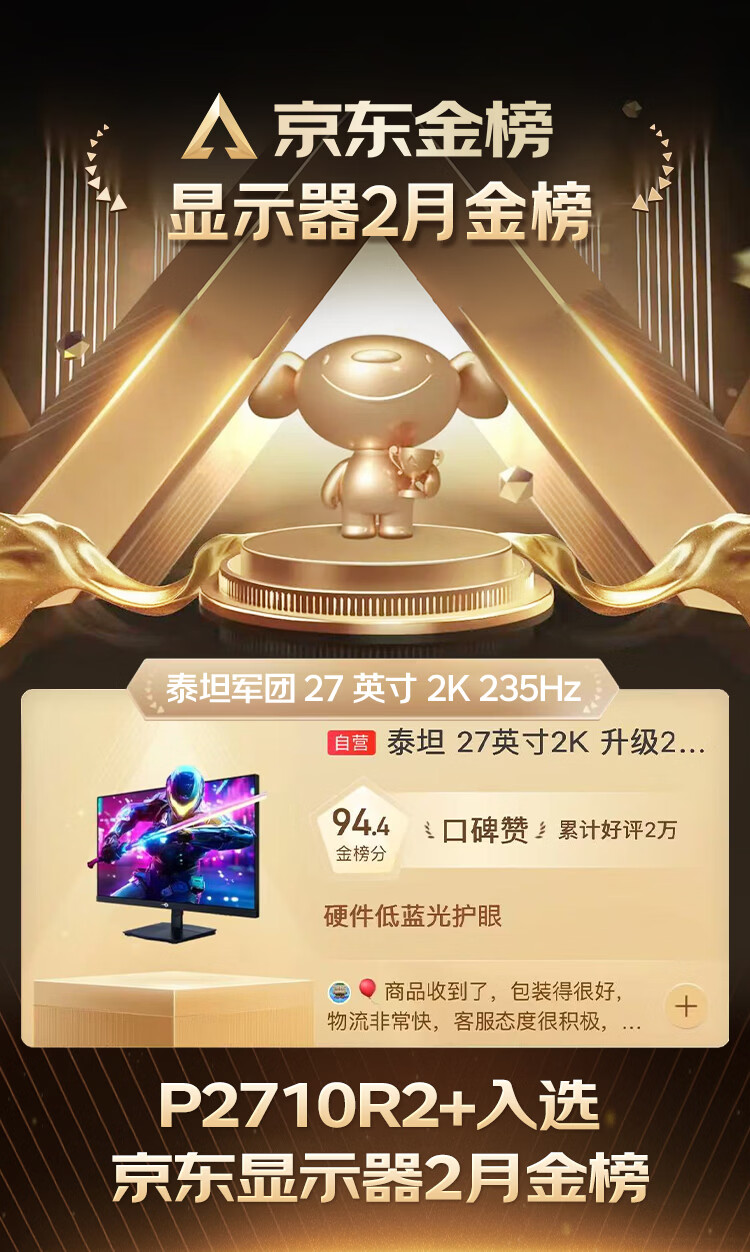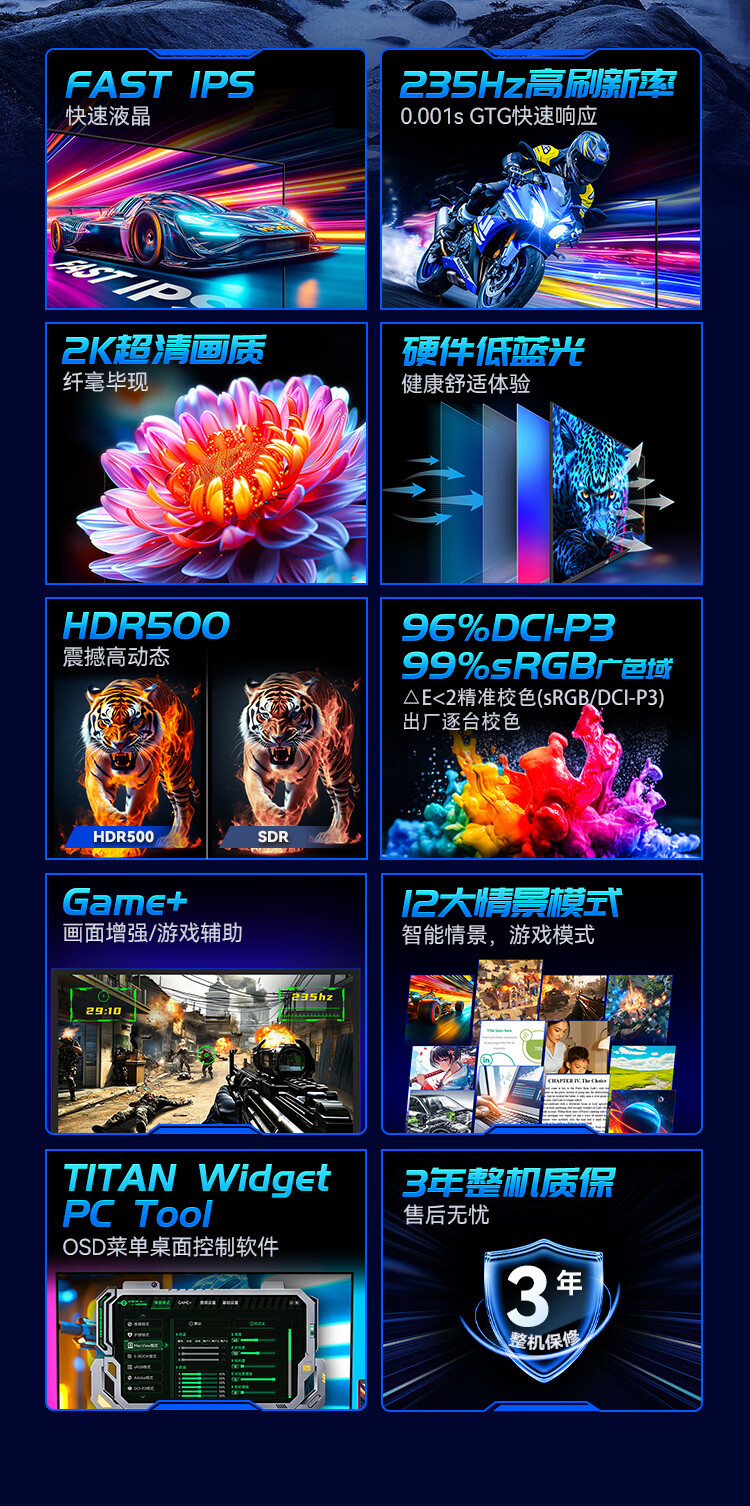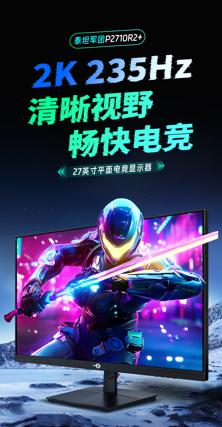 泰坦军团 27英寸 2K 升级235Hz HDR500nit高亮版 硬件低蓝光 专业电竞调校 出厂校色 三角洲显示器P2710R2+