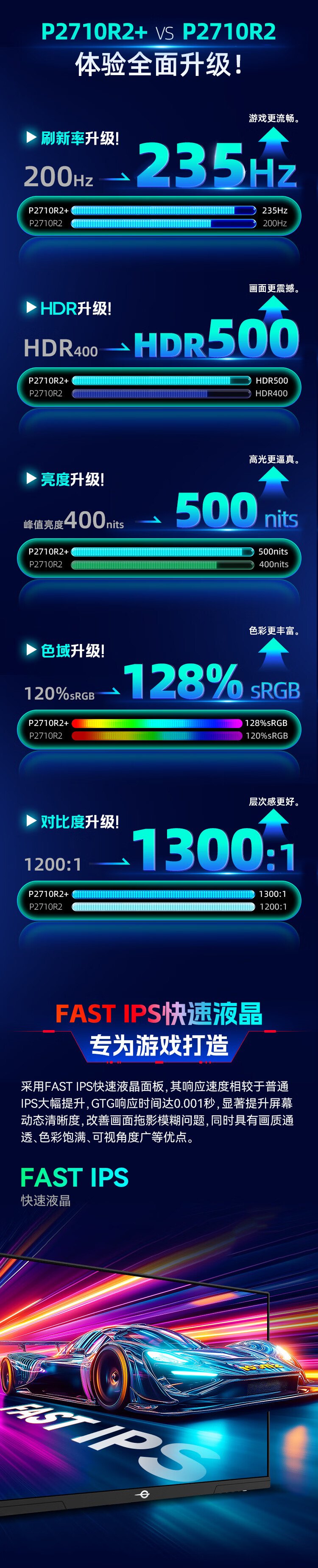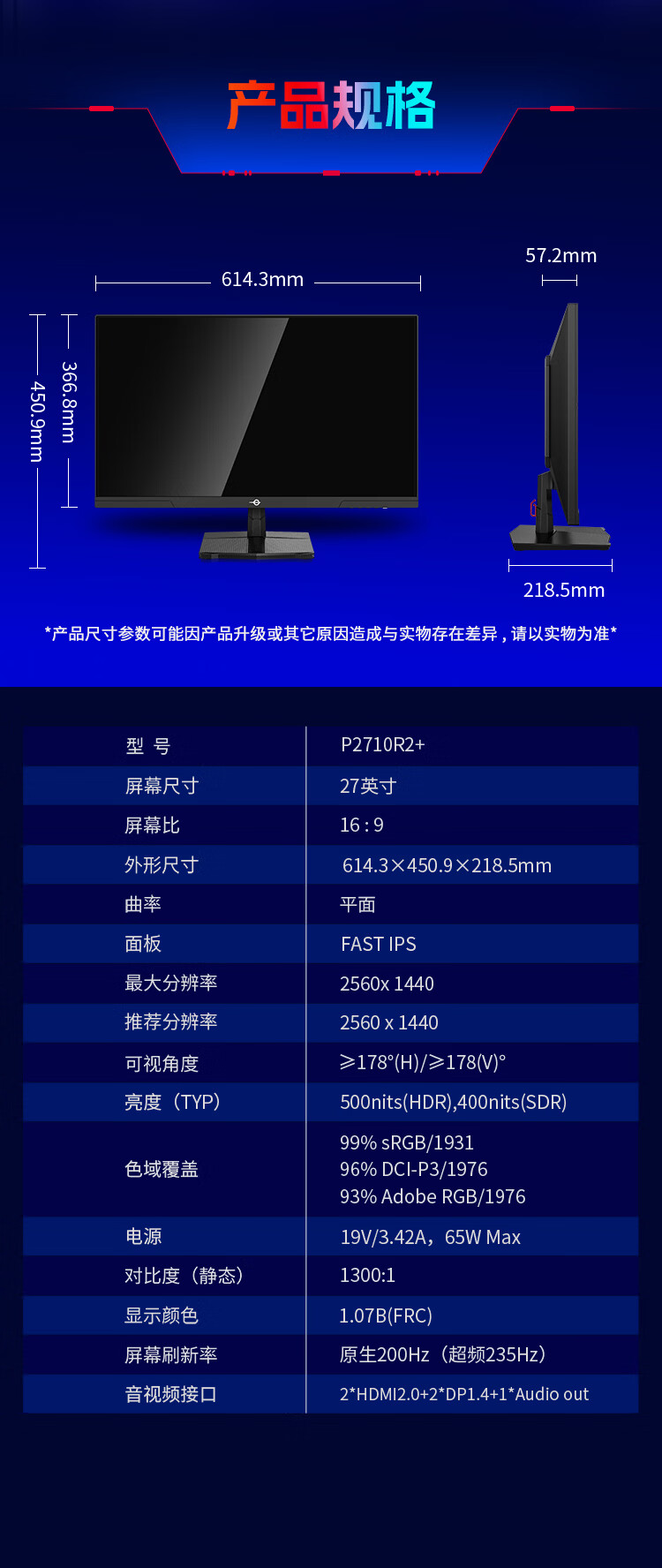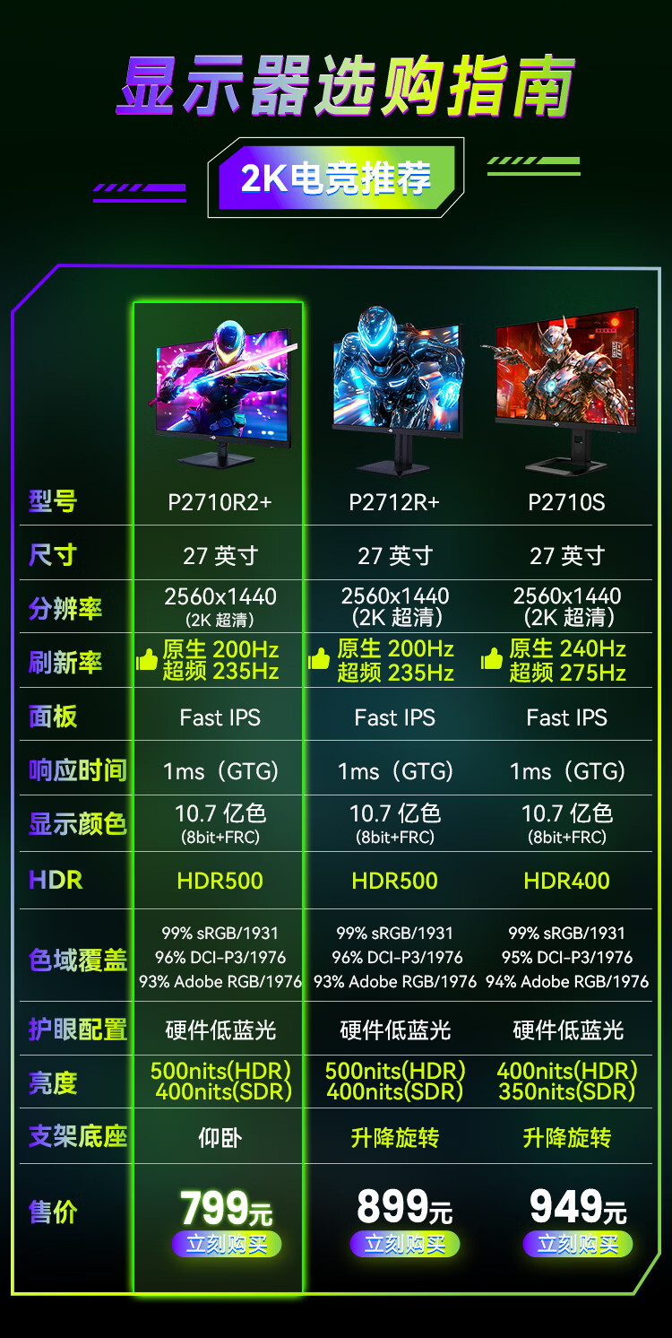 泰坦军团 27英寸 2K 升级235Hz HDR500nit高亮版 硬件低蓝光 专业电竞调校 出厂校色 三角洲显示器P2710R2+