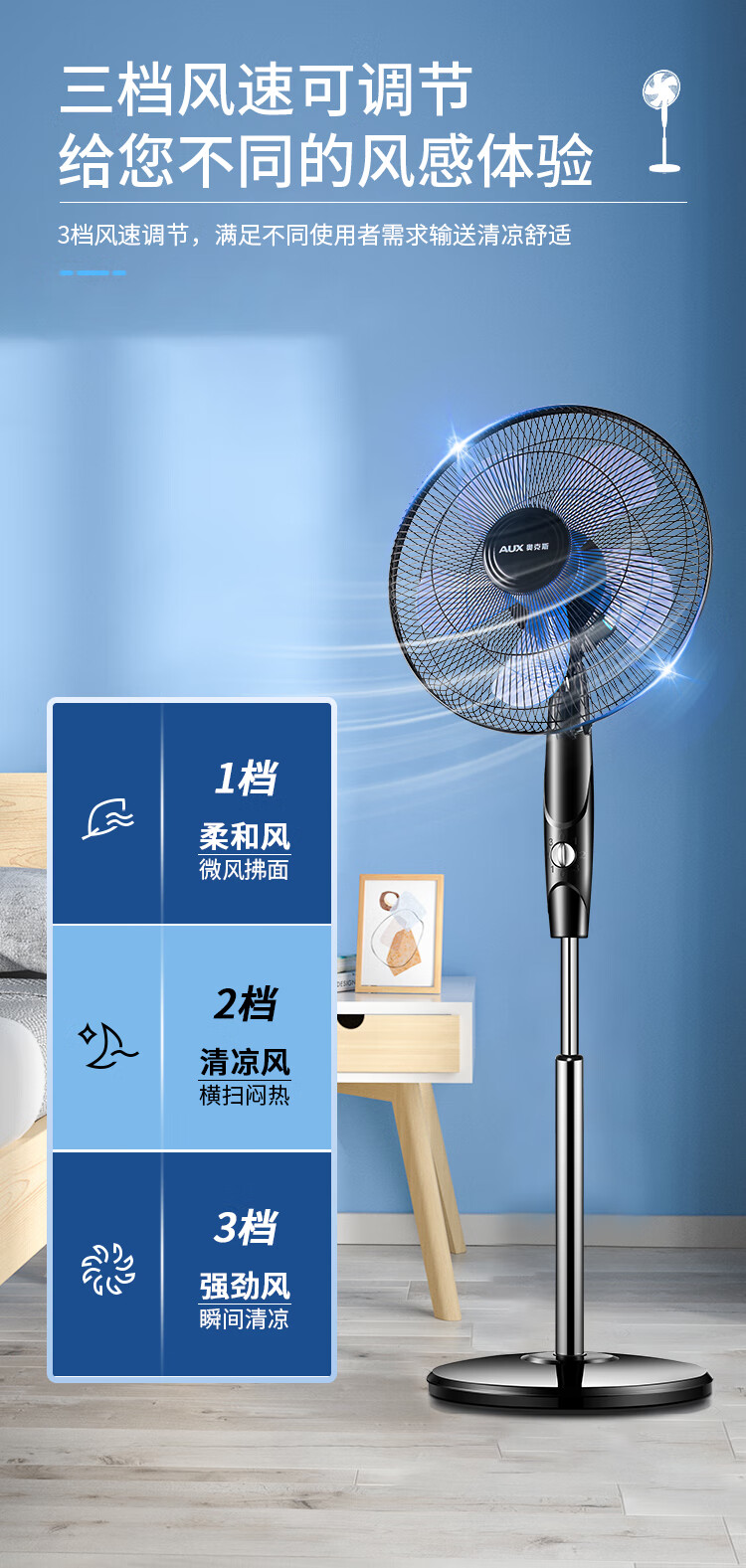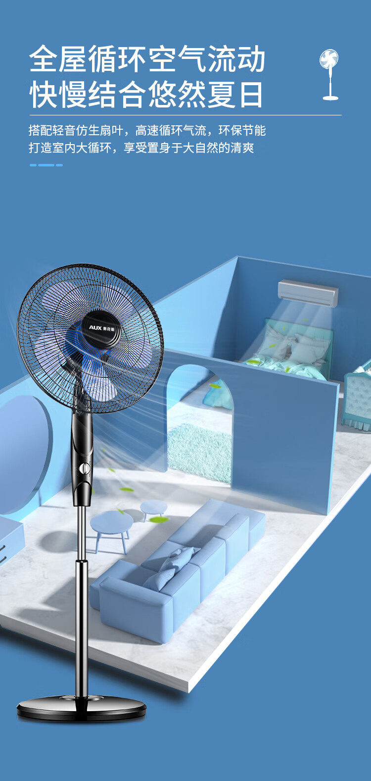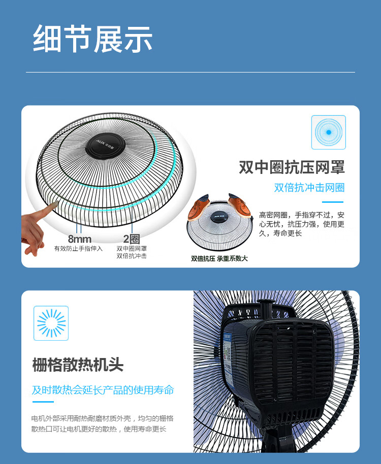 奥克斯(AUX)FS1613 电风扇/落地扇/空气流通/交流定频工业落地扇/工程家用风扇/五叶大风量风扇