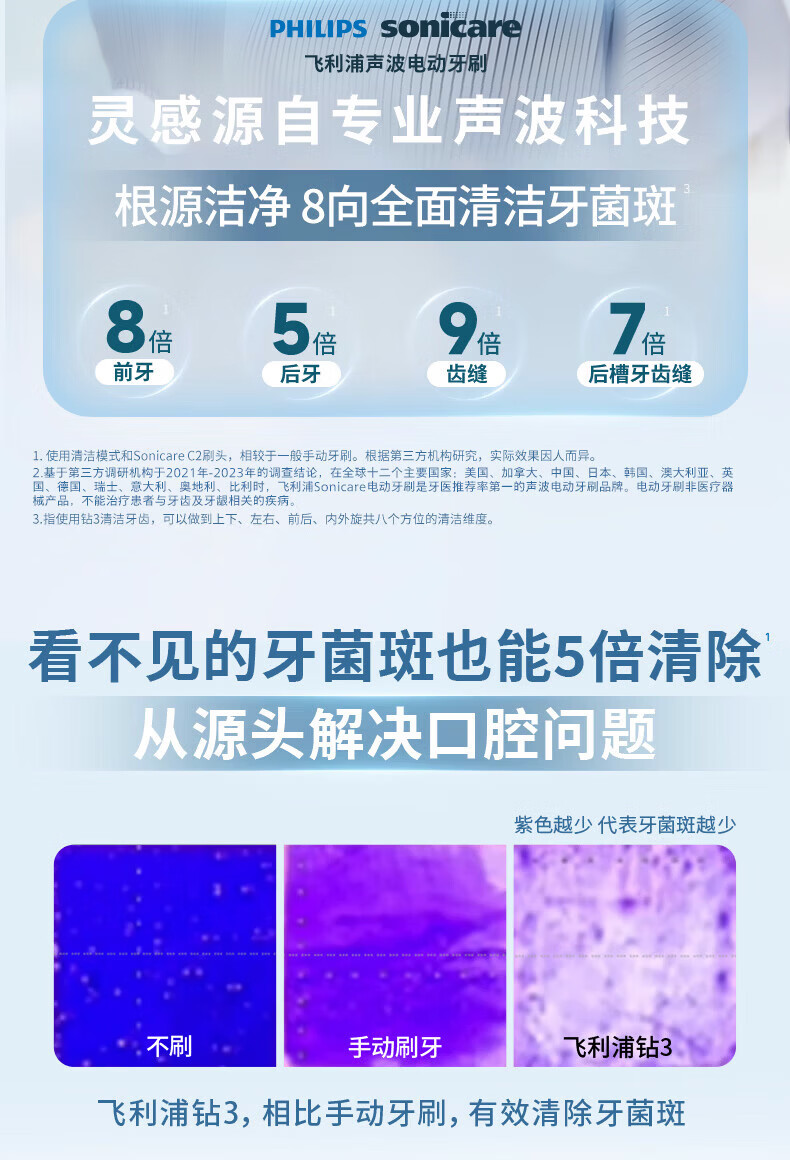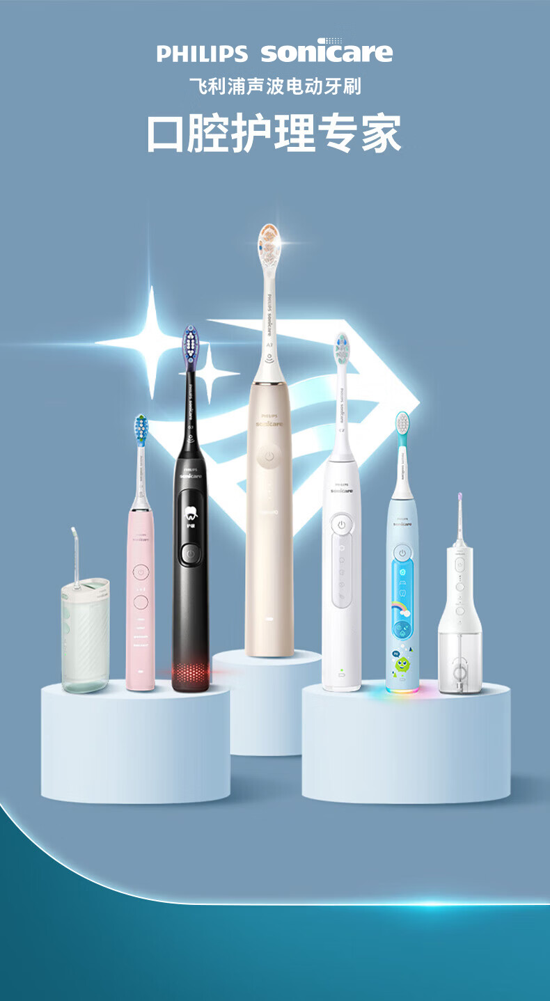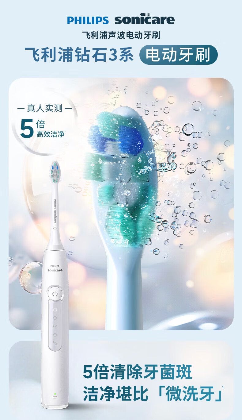 飞利浦(PHILIPS)声波电动牙刷钻石3系 情侣款送男生/女友礼物 生日礼物 微泡水流 白色 HX5181/01