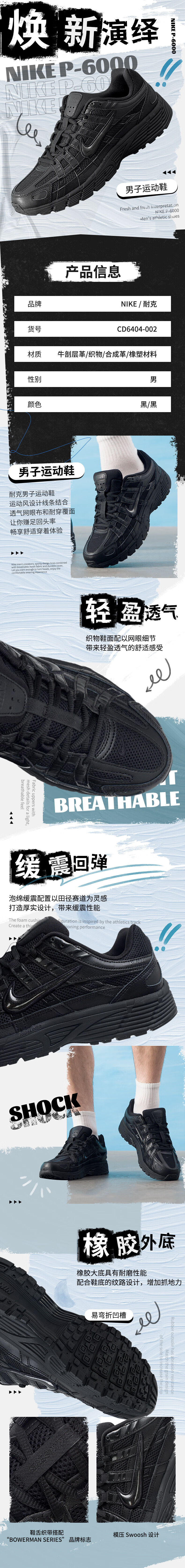 耐克男鞋Nike2026新款P-6000厚底老爹鞋黑色运动鞋潮流百搭休闲鞋鞋子 CD6404-002 42.5