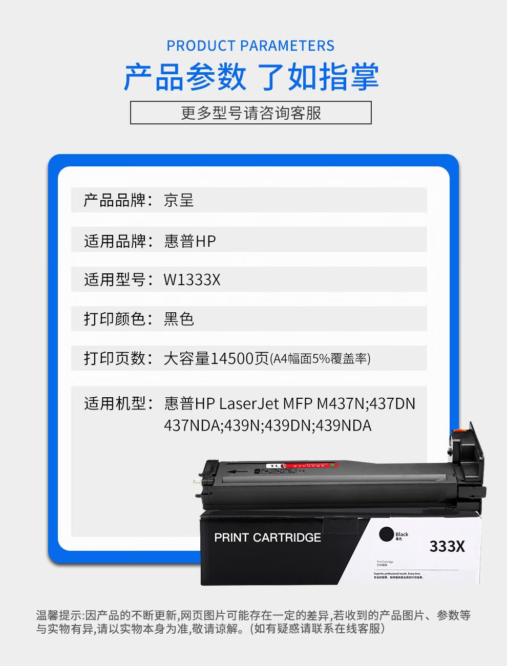 京呈W1333X粉盒适用惠普hp laserjet mfp M437N 437DN 437NDA打印机439N 439DN 439NDA硒鼓墨盒333a大容量粉盒1支
