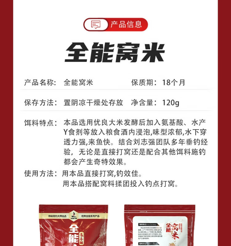 刘志强全能窝米袋装小包装酒米打窝料饵料120g装 全能窝米120g*1袋