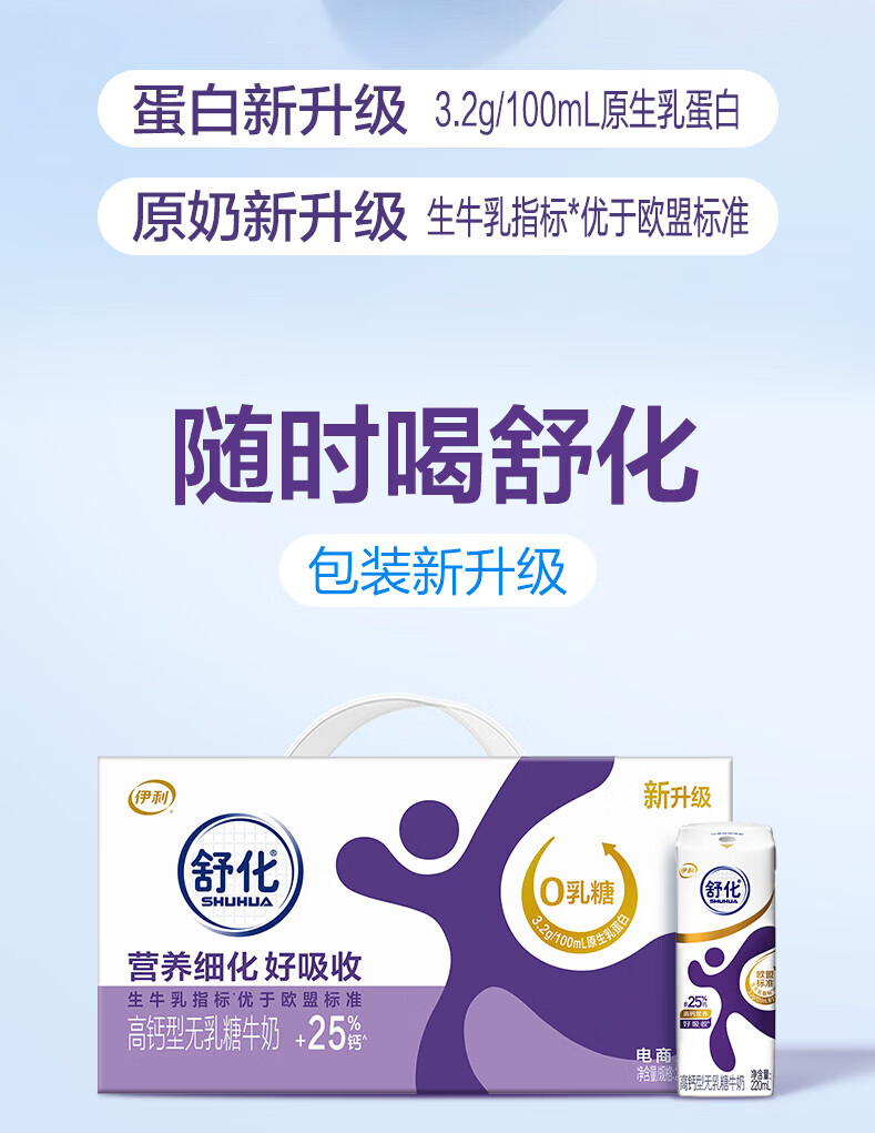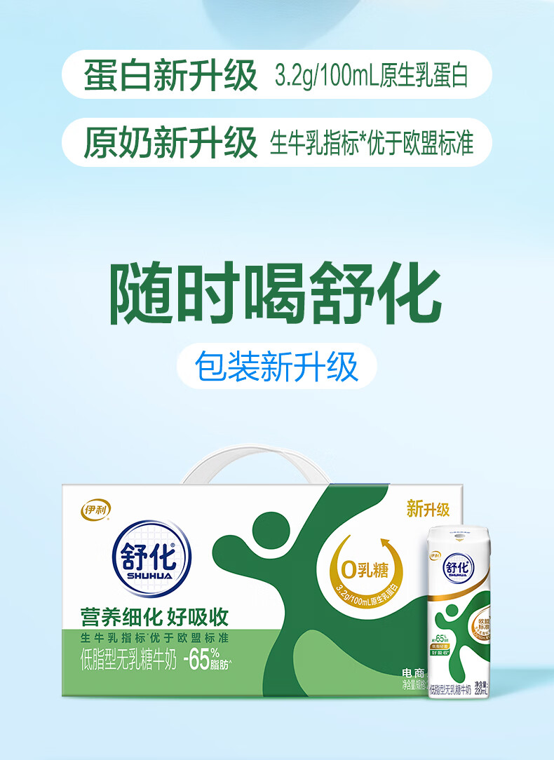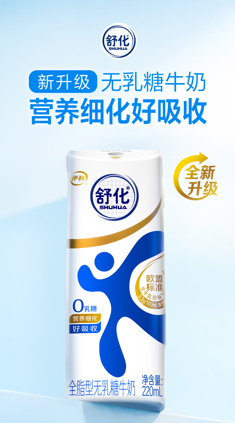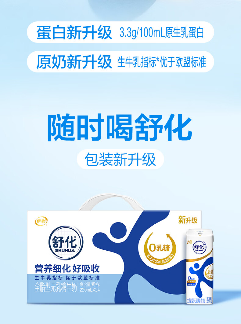 伊利舒化无乳糖牛奶系列零乳糖 营养细化 多种规格可选 年货礼盒 【脱脂型】0乳糖220ml*24盒*2箱 1月产
