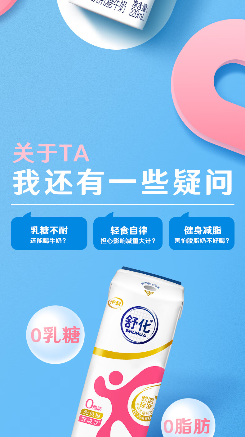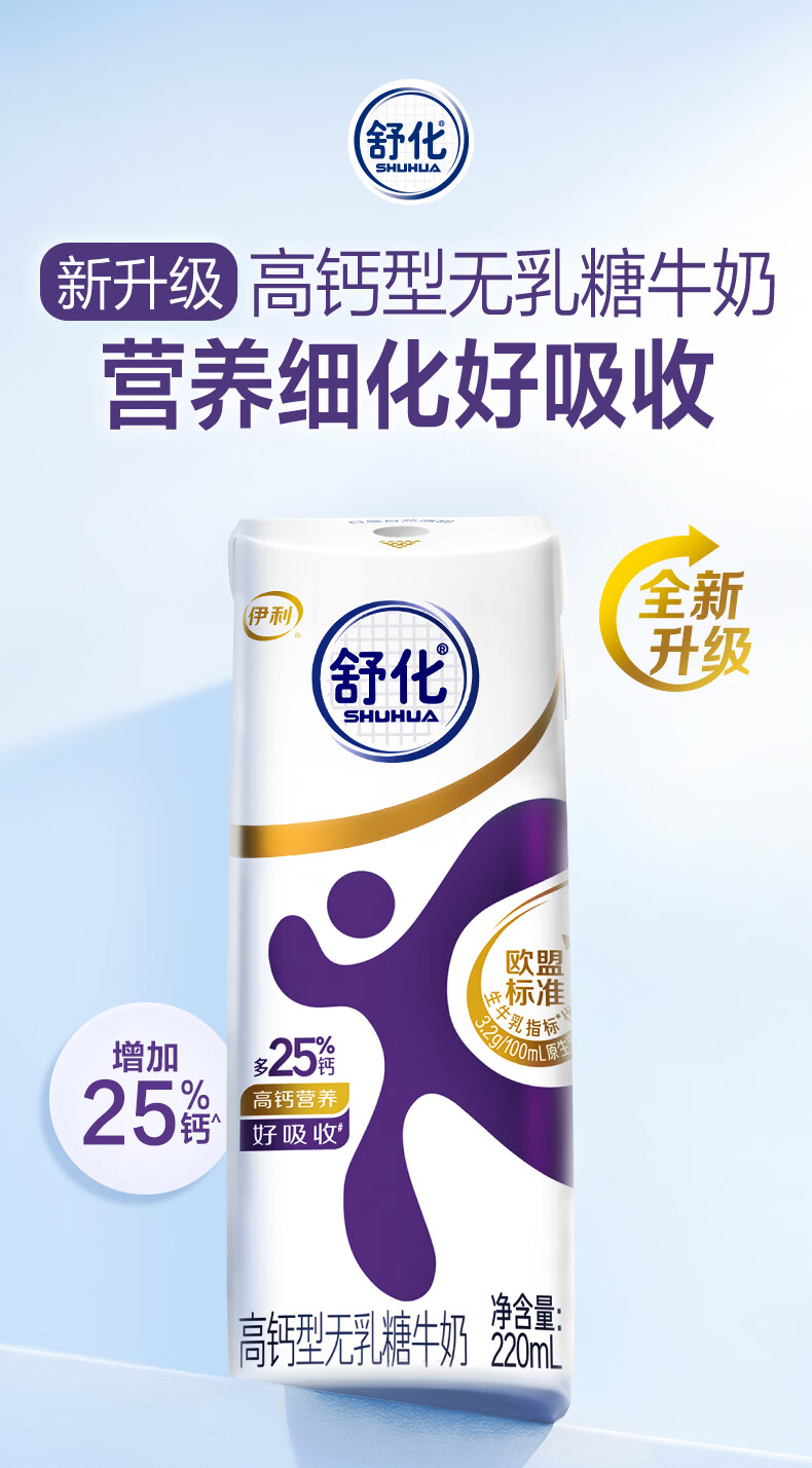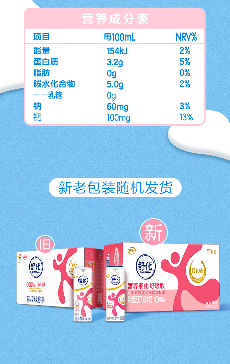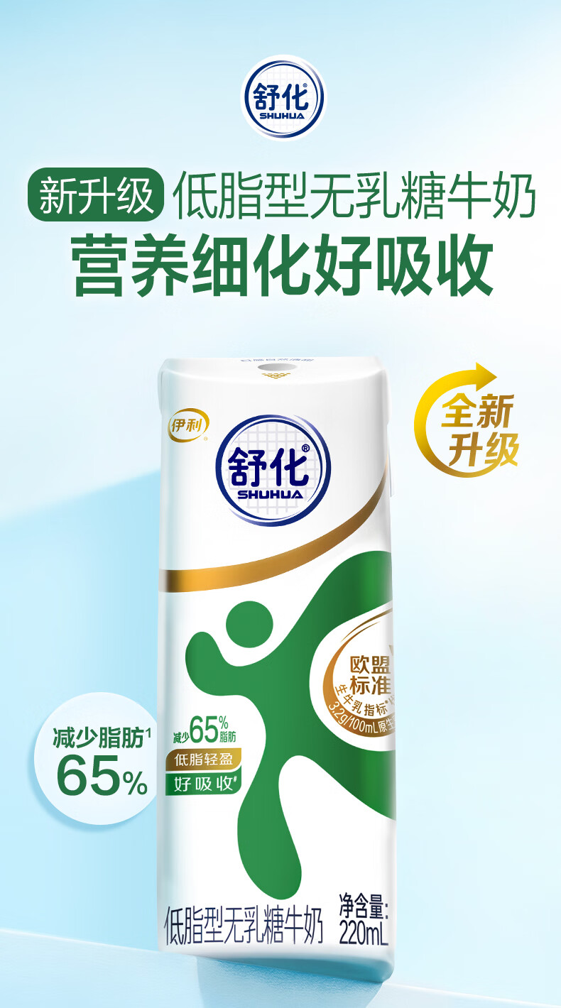 伊利舒化无乳糖牛奶系列零乳糖 营养细化 多种规格可选 年货礼盒 【脱脂型】0乳糖220ml*24盒*2箱 1月产
