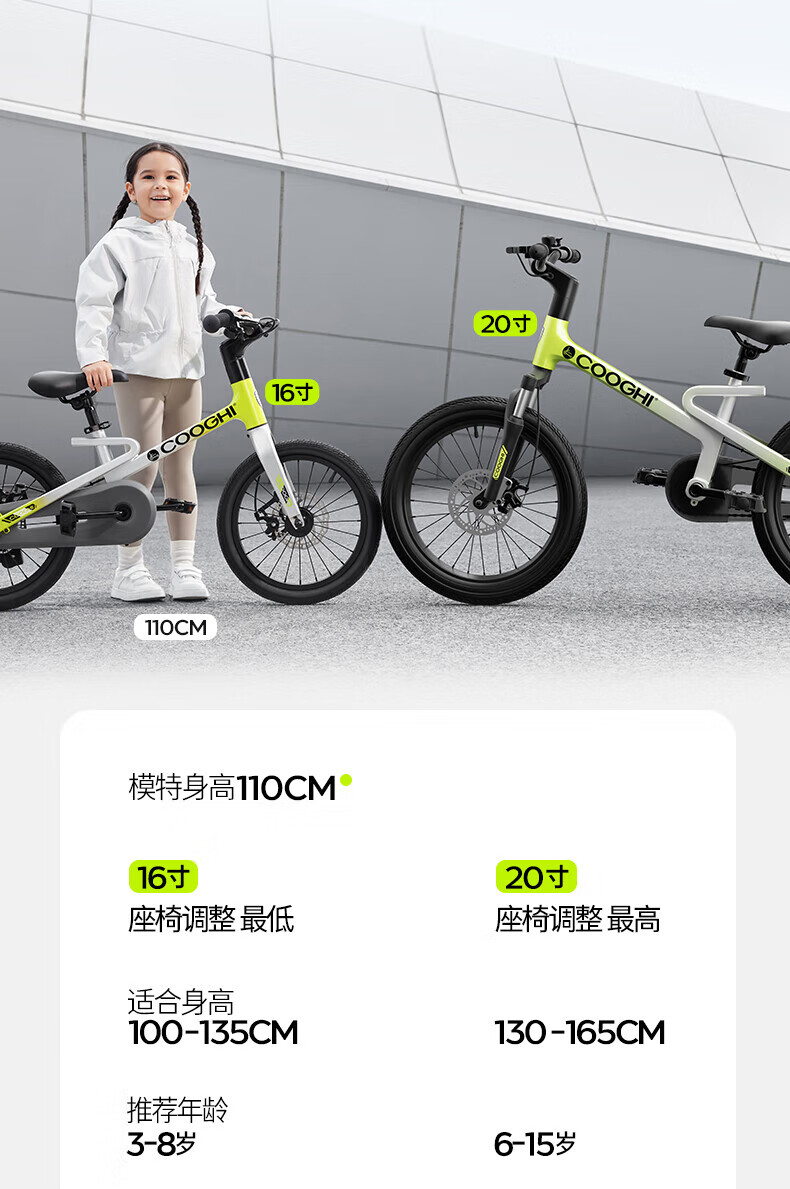 酷骑儿童自行车F1 18寸镁合金轻便避震充气胎初学者5-11岁酷骑绿