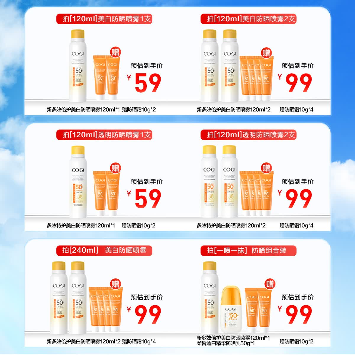 高姿透明防晒喷雾80mlSPF50+PA++++防水防汗户外便携军训必备防晒霜