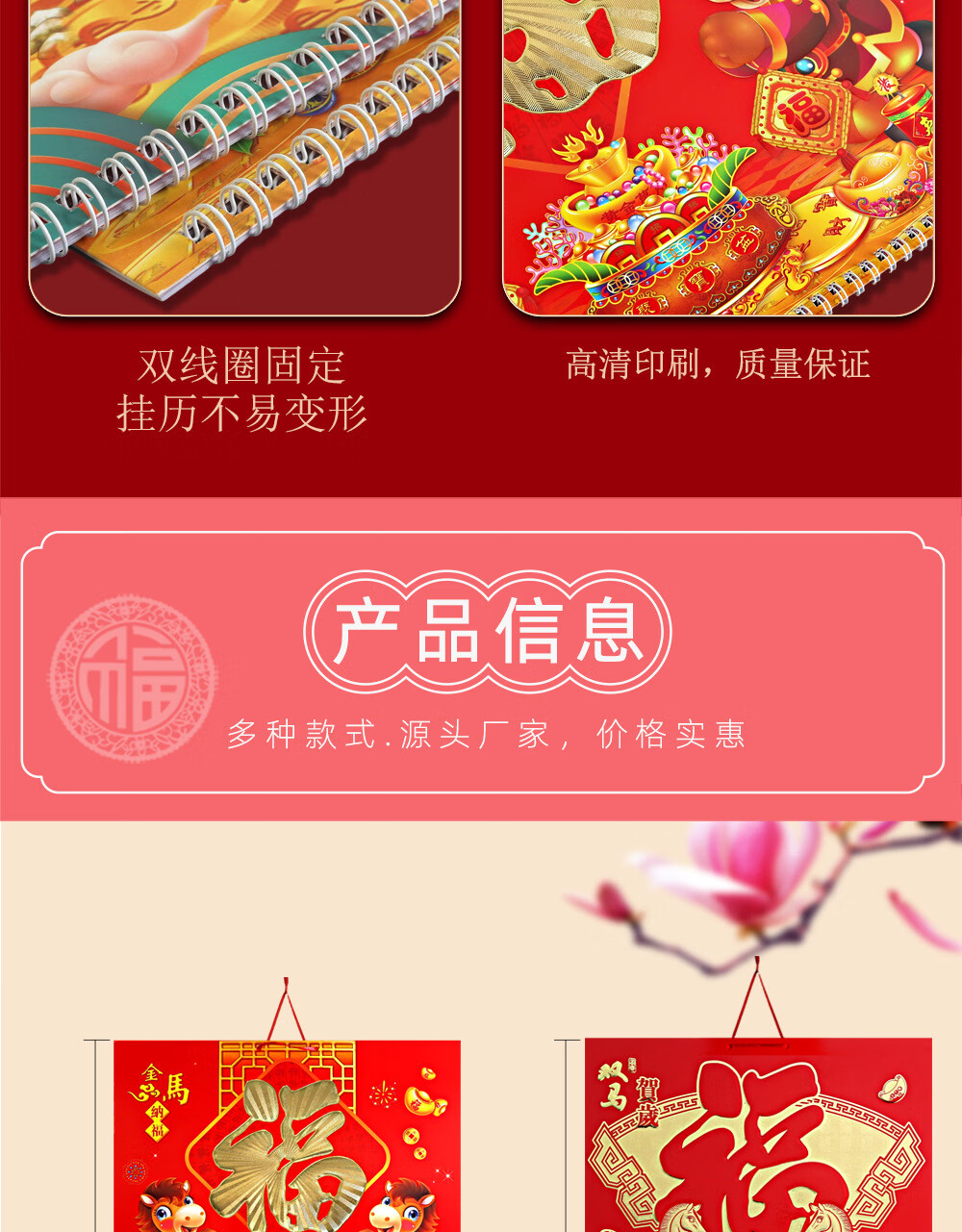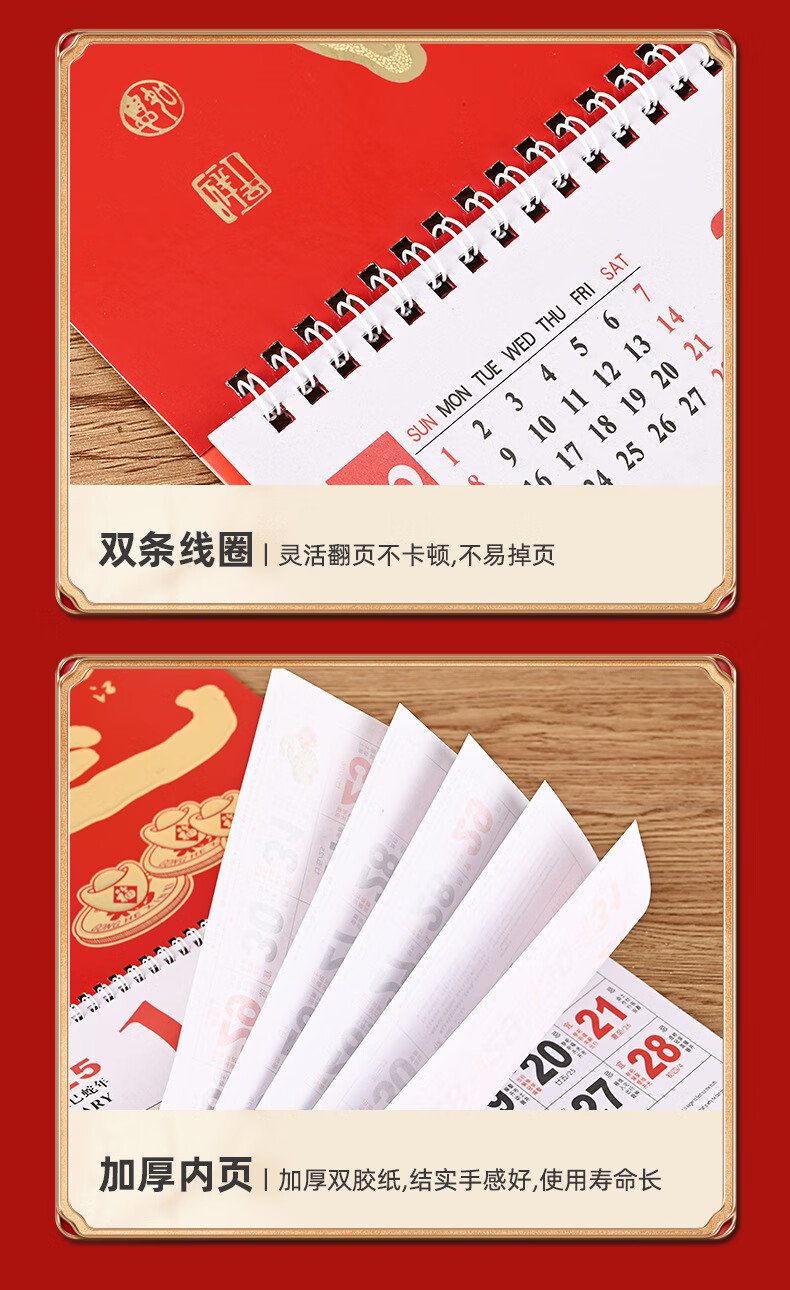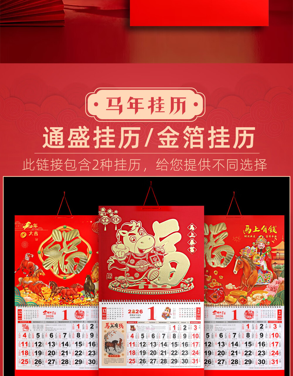 少年伴挂历日历黄历2026年马年新年礼物家用挂墙式正六开吊历手撕礼品 财福盈门7808
