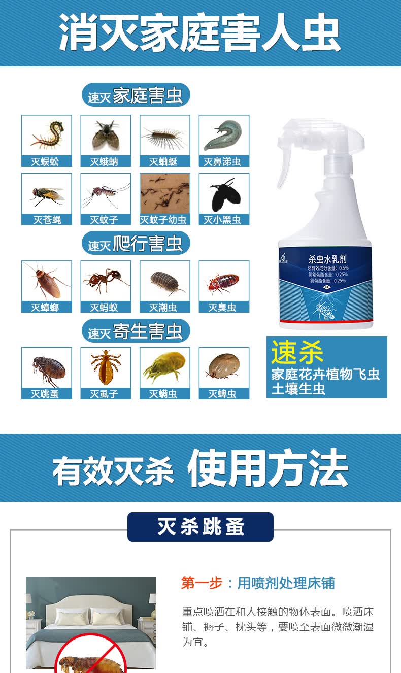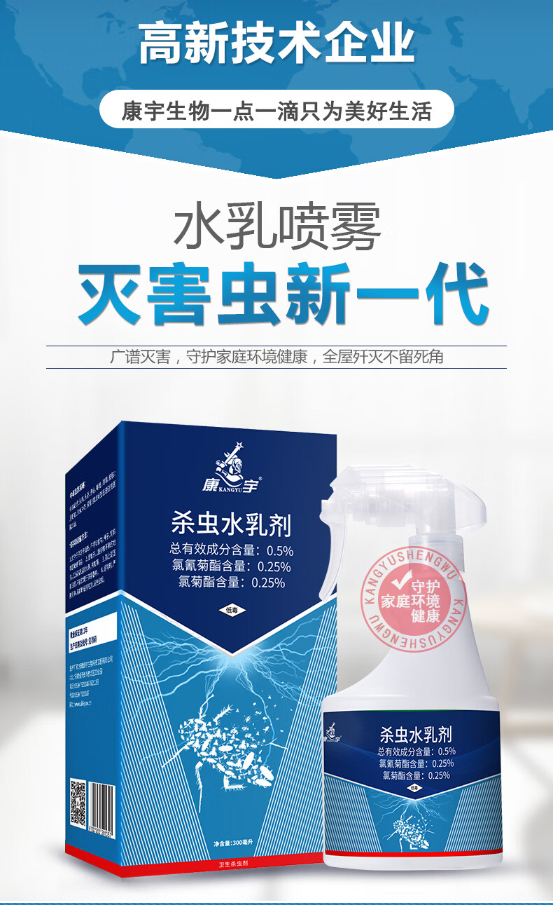 康宇杀虫喷雾剂家用室内灭潮虫跳蚤虱子蜘蛛药床上除螨虫臭虫驱虫用品