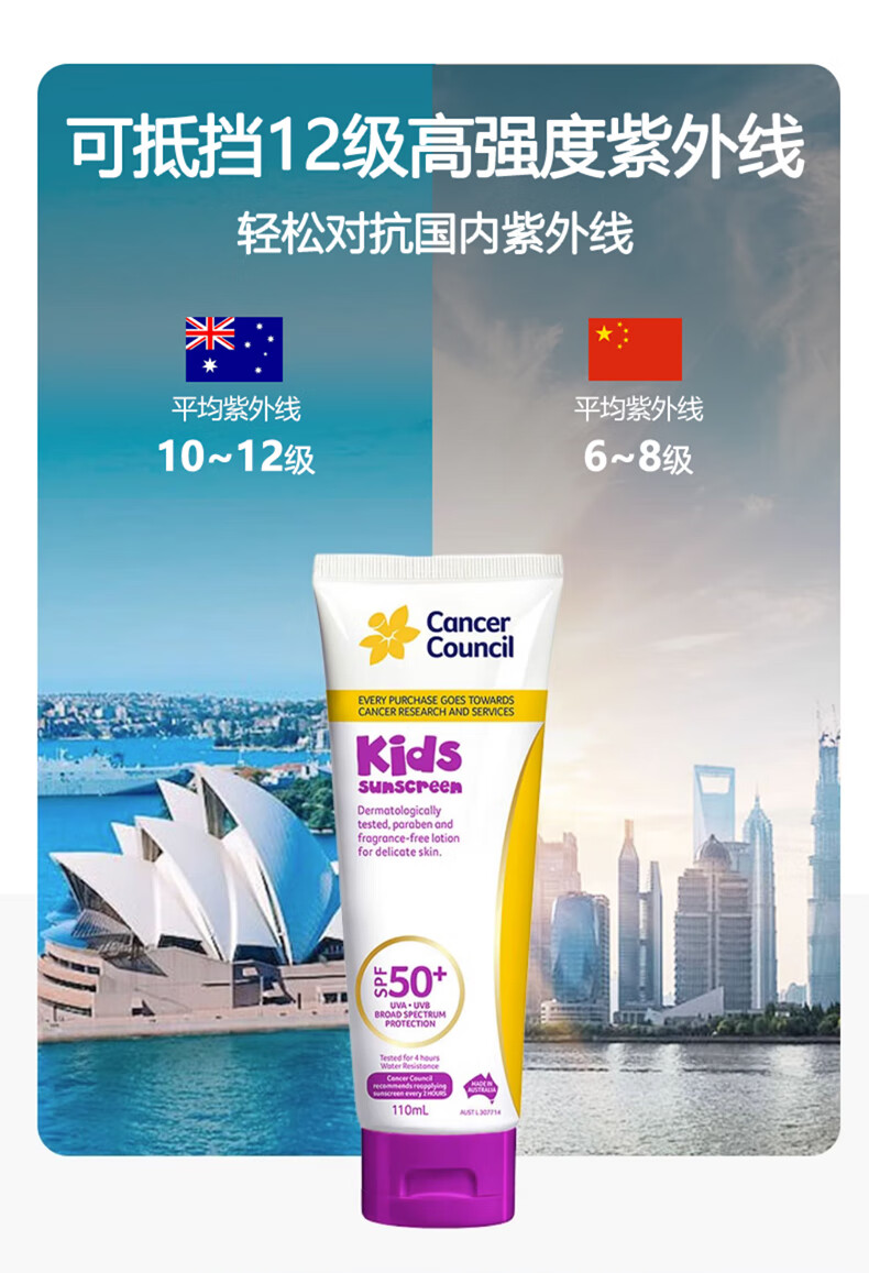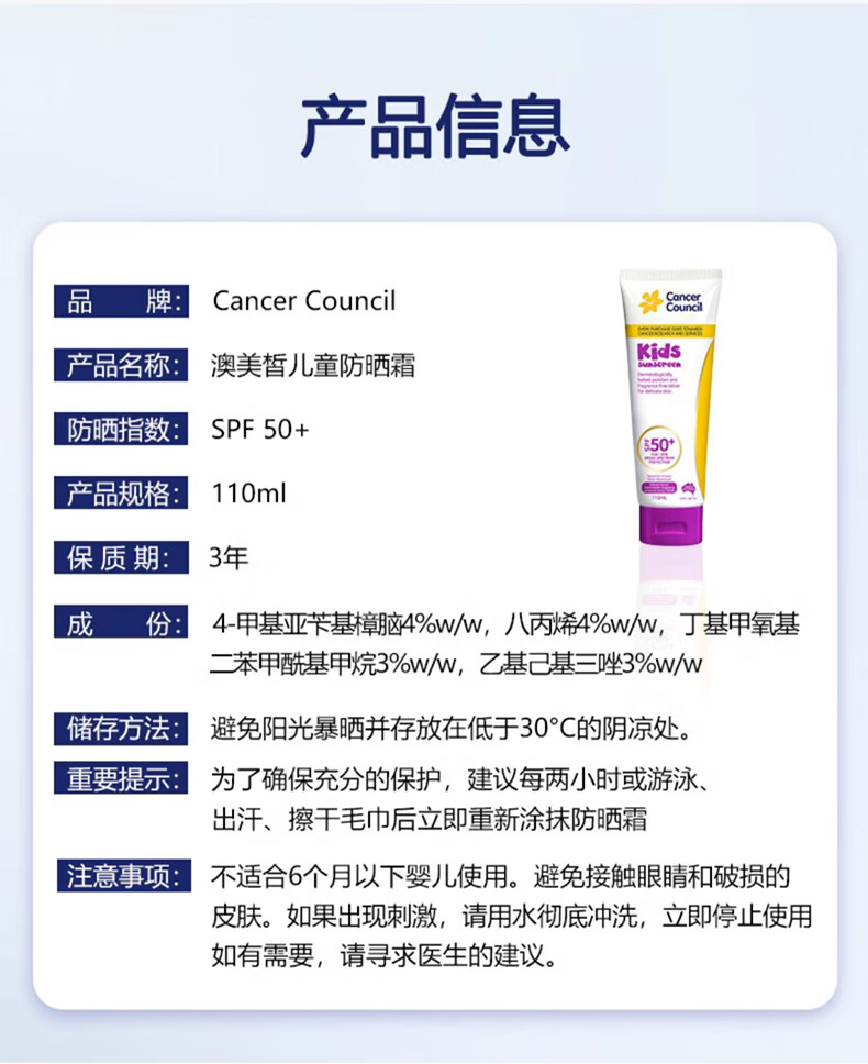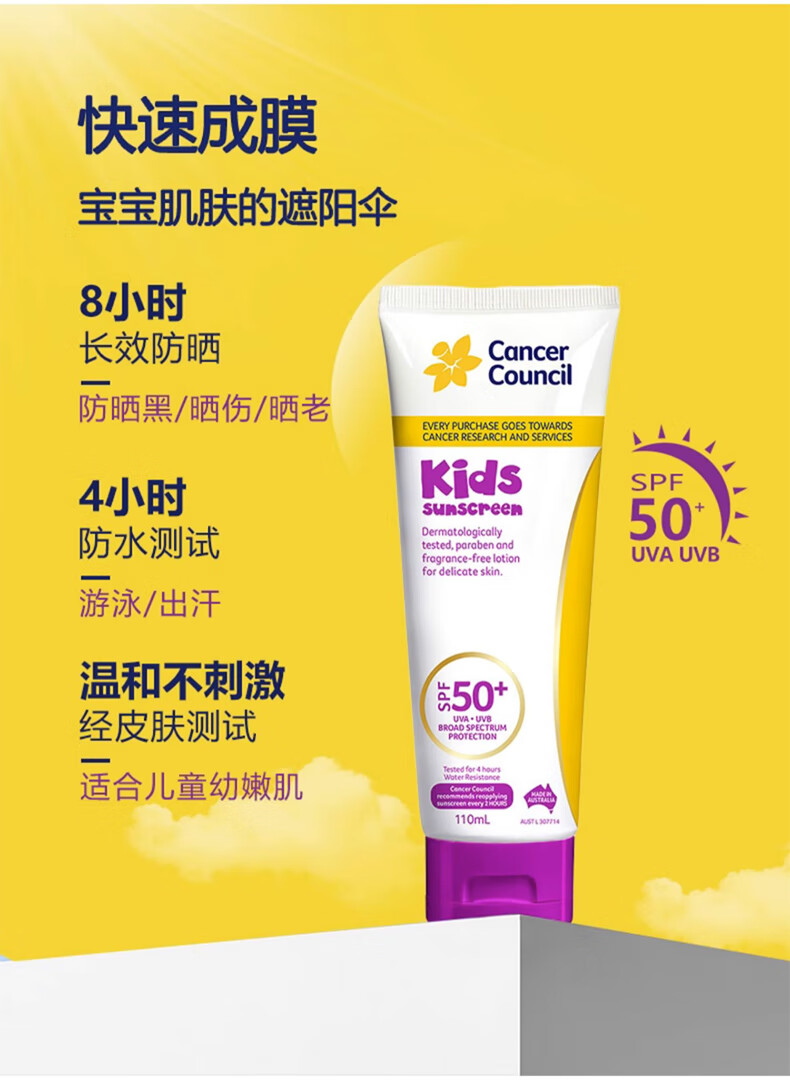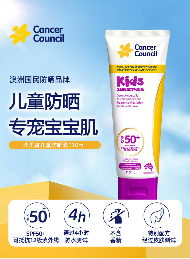 Cancer Council澳洲澳美皙儿童防晒乳霜 婴儿宝宝专用物理保湿防晒SPF50+110ML