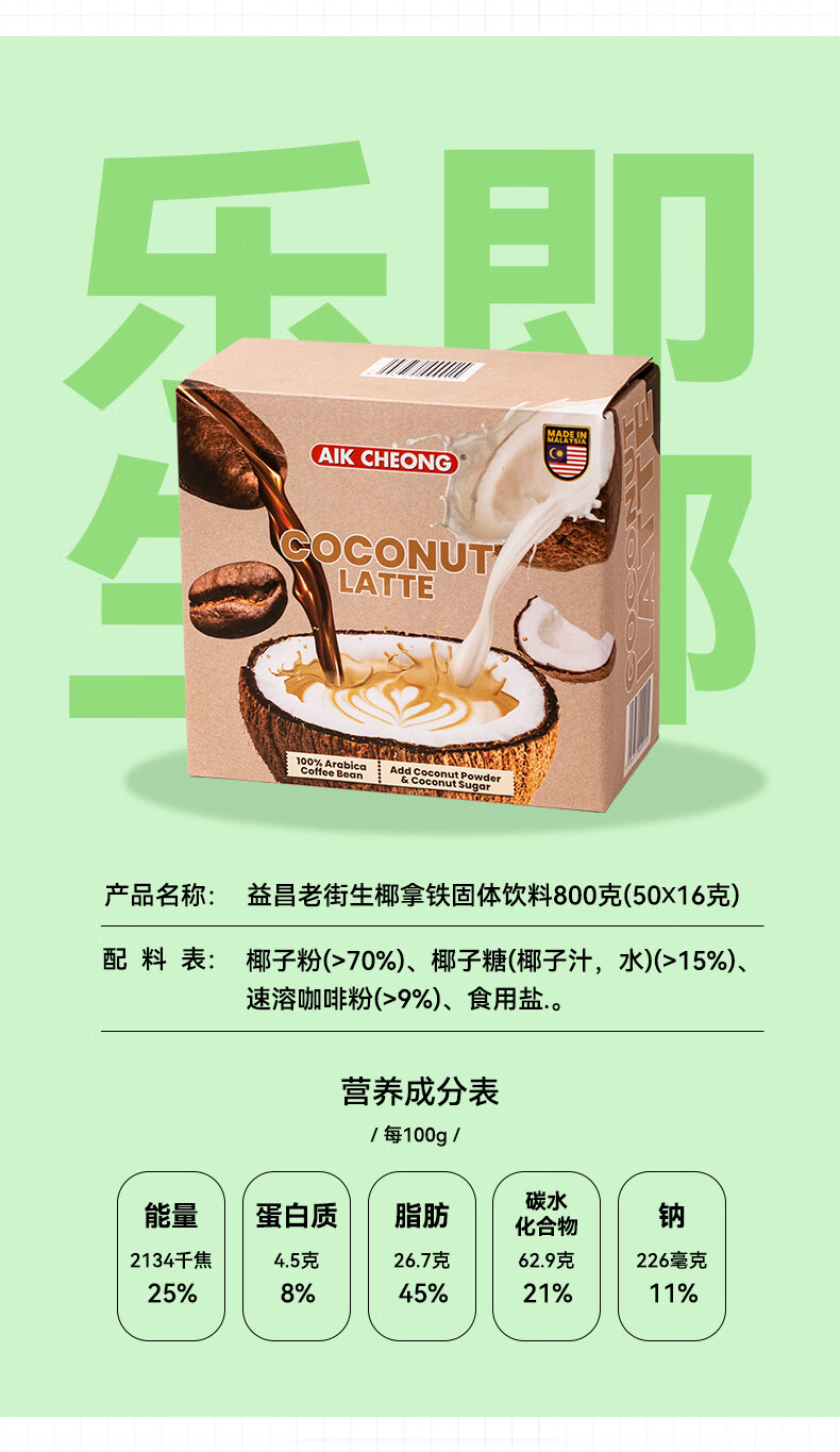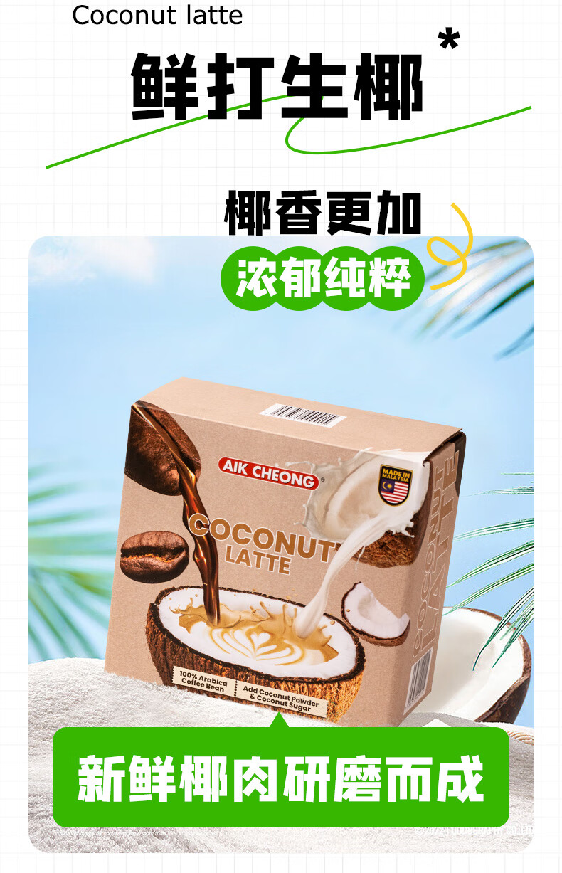 益昌老街(AIK CHEONG OLD TOWN) 醇香生椰拿铁 速溶咖啡16g*50条