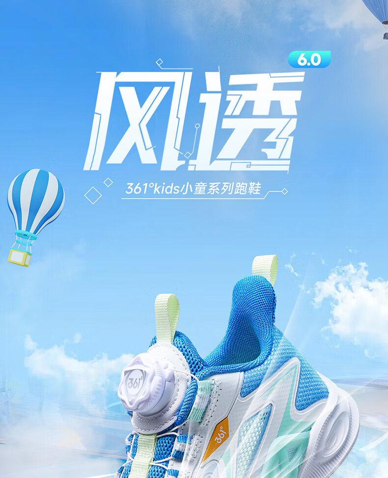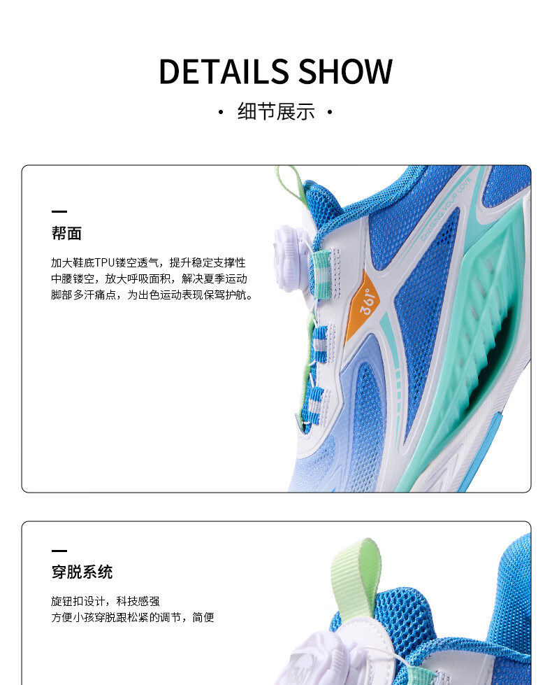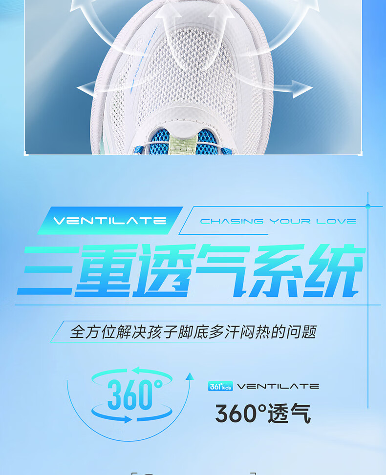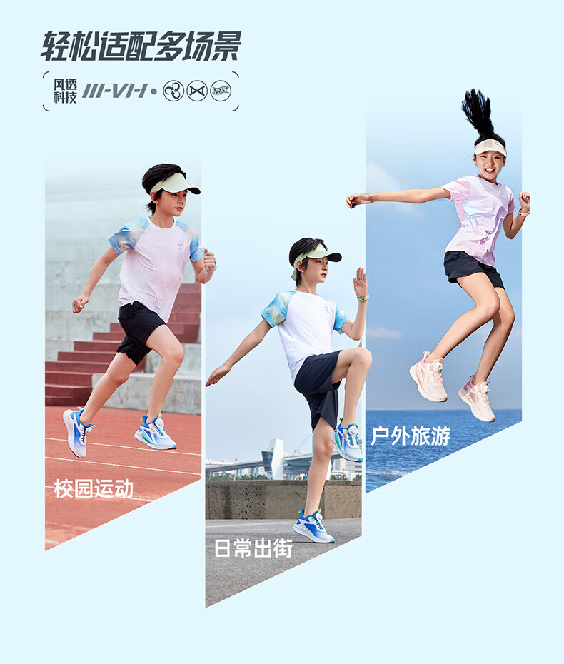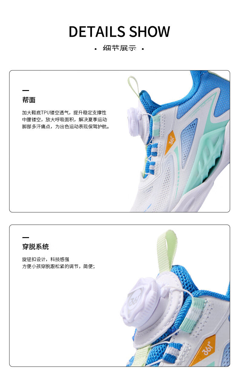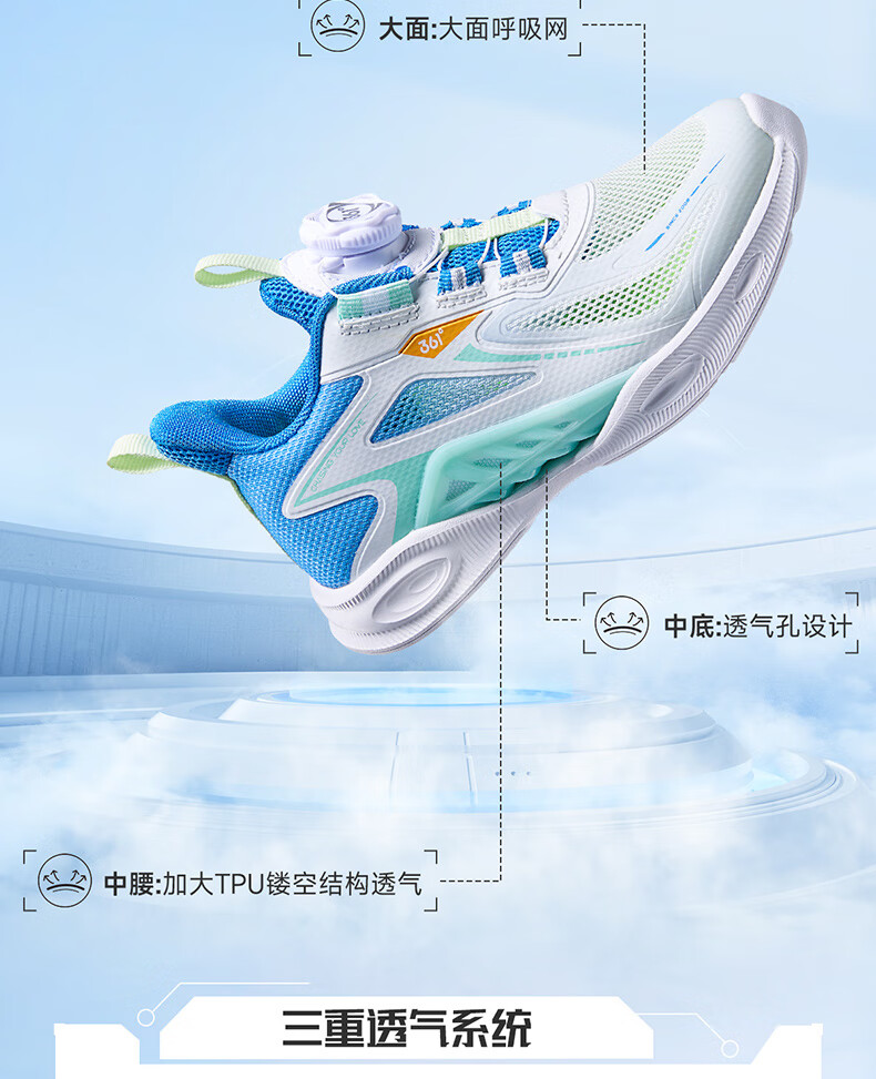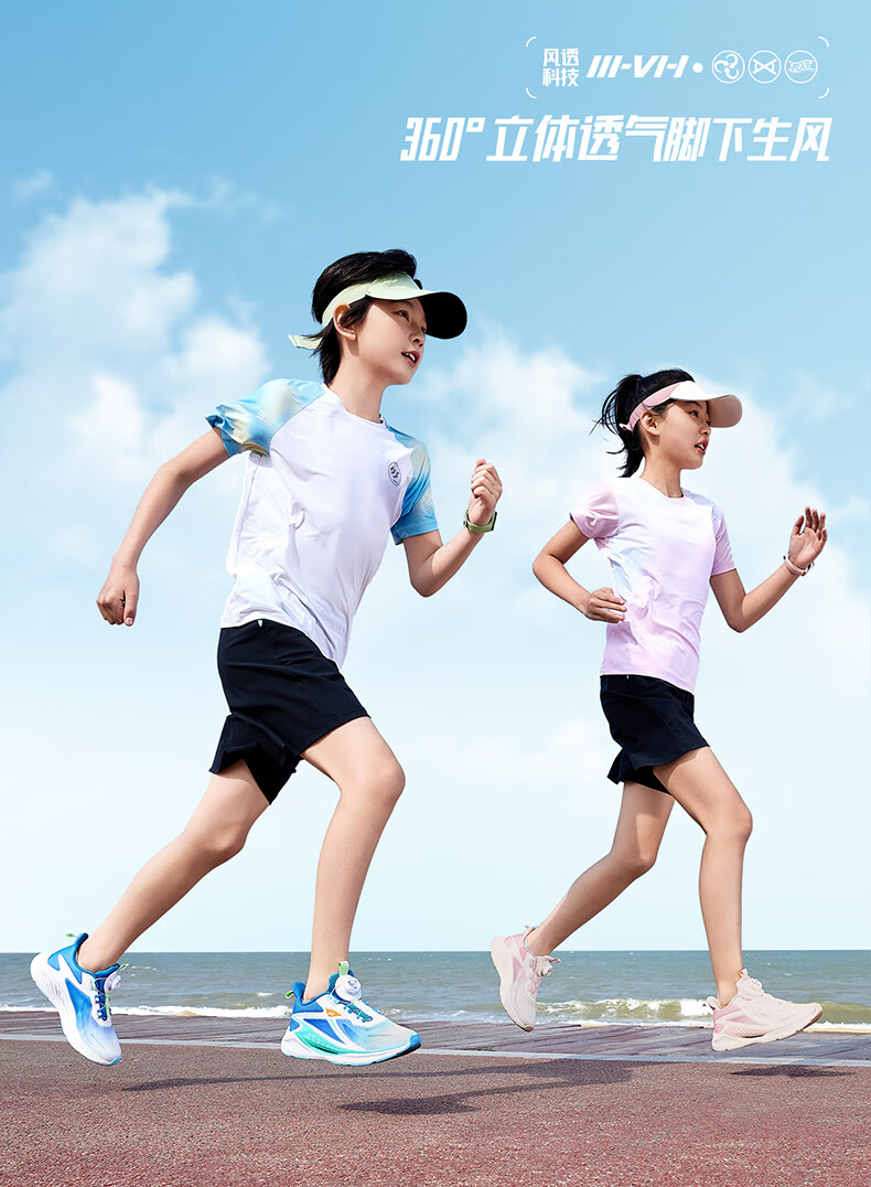 361°风透6.0|儿童跑鞋25夏季男女童轻弹透气专业运动鞋 蓝38