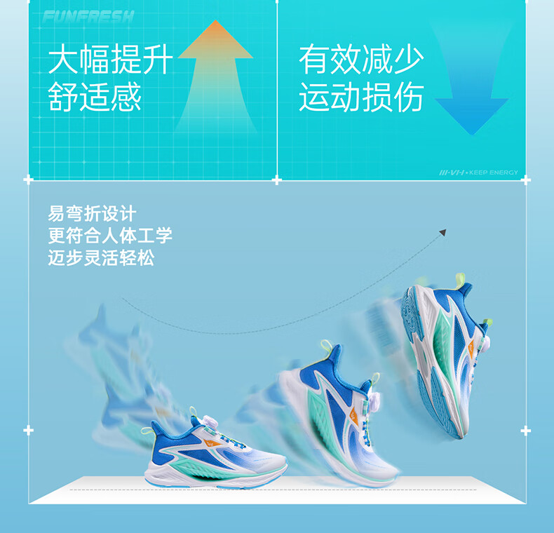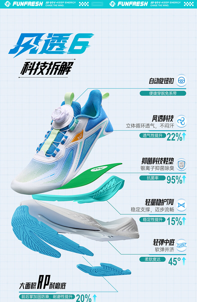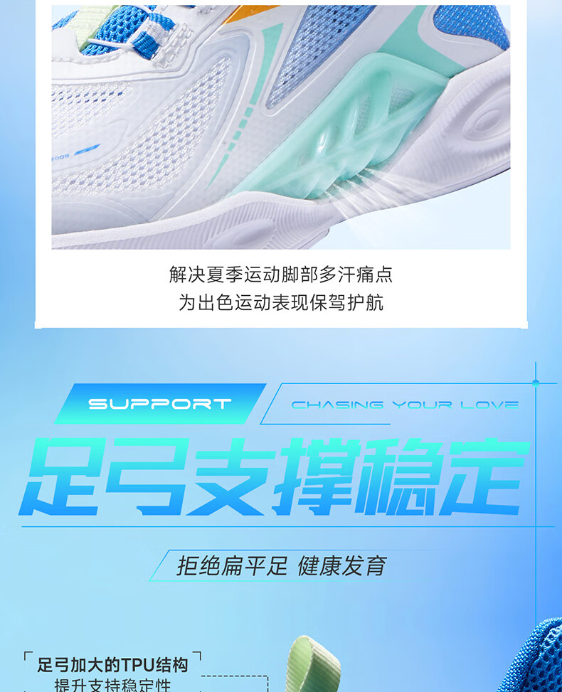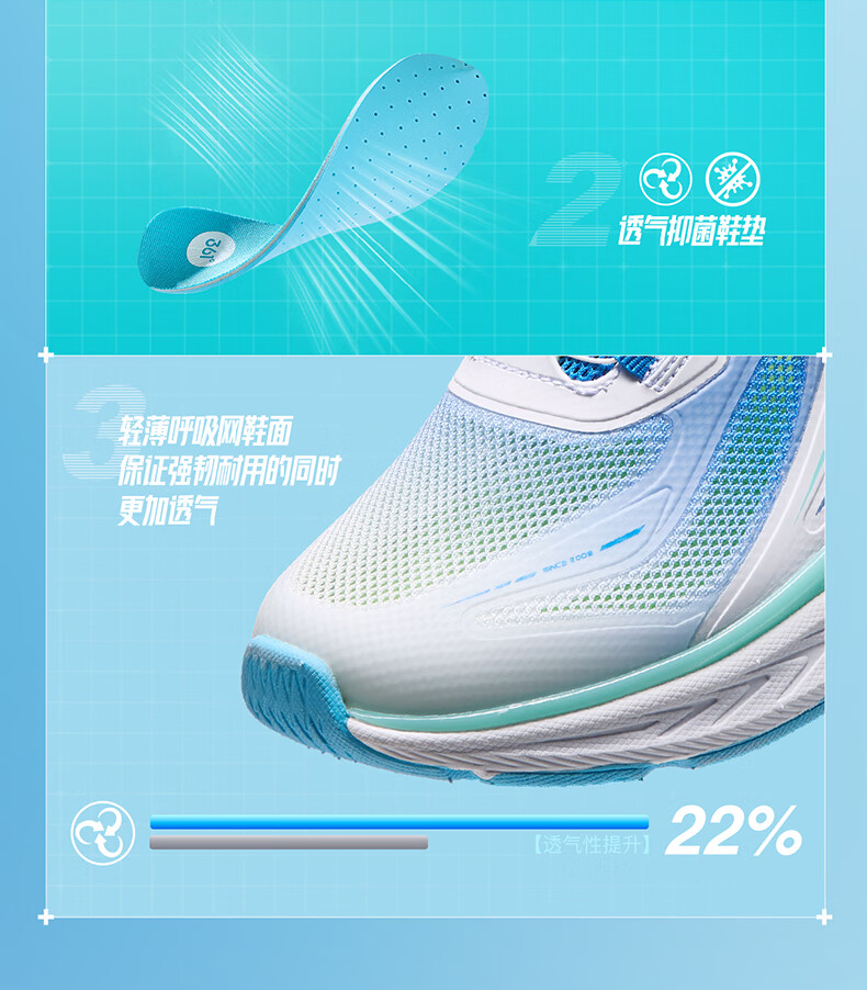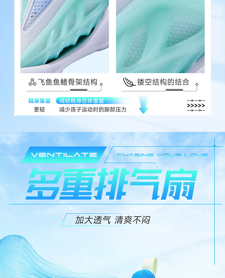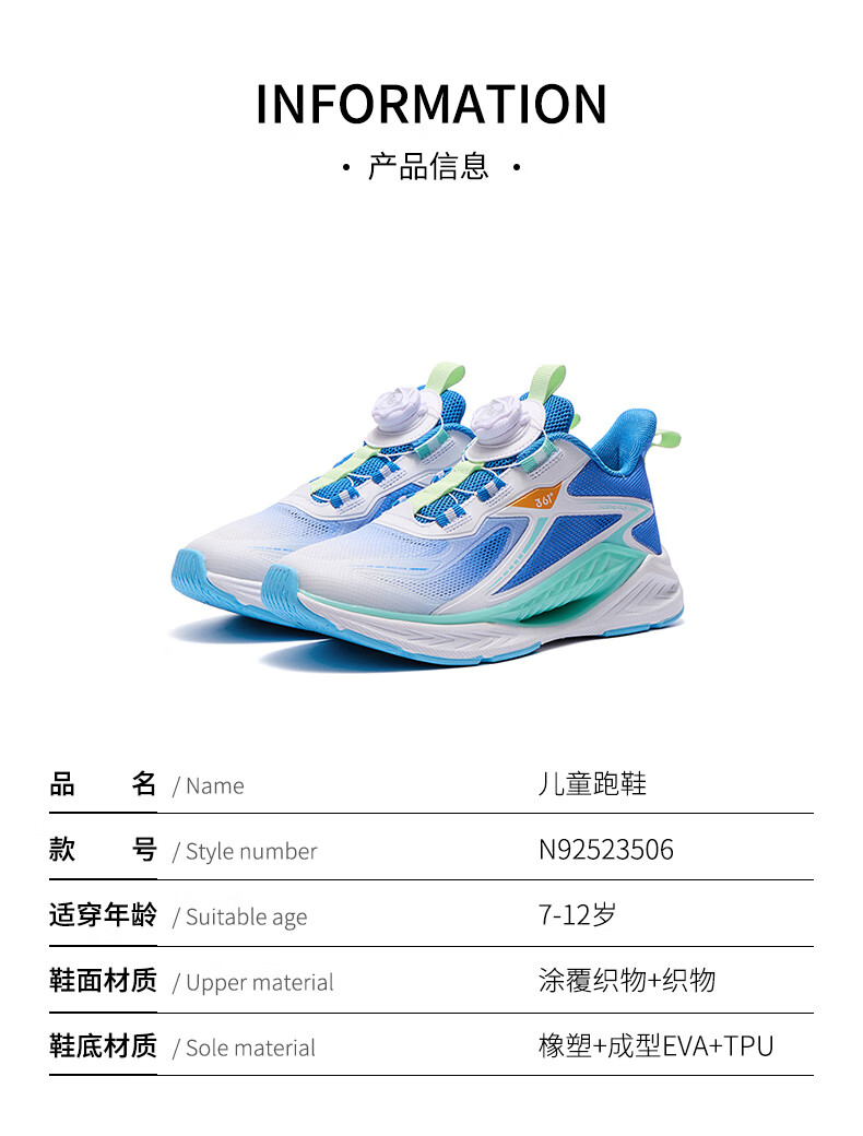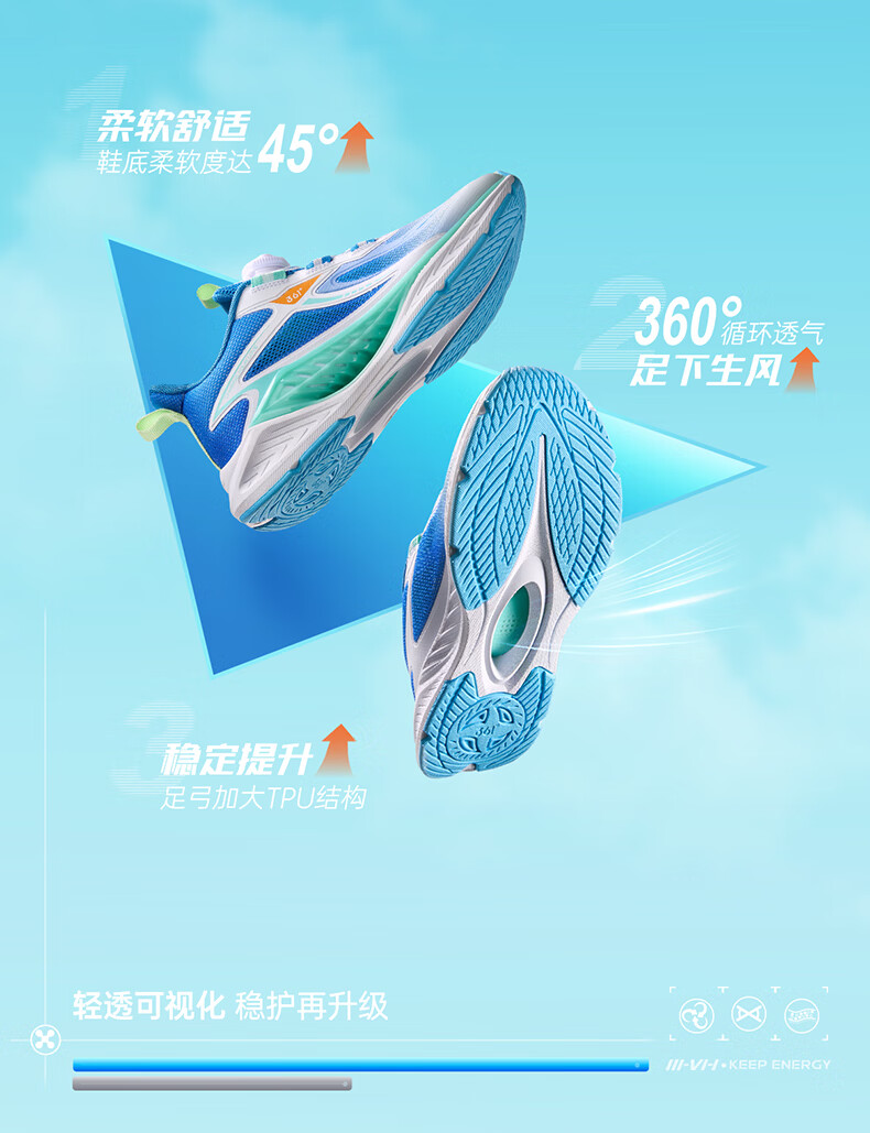 361°风透6.0|儿童跑鞋25夏季男女童轻弹透气专业运动鞋 蓝38