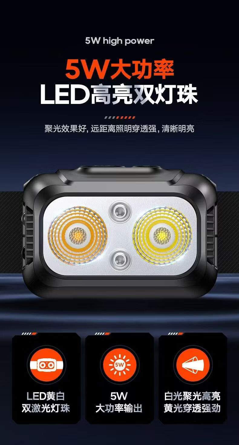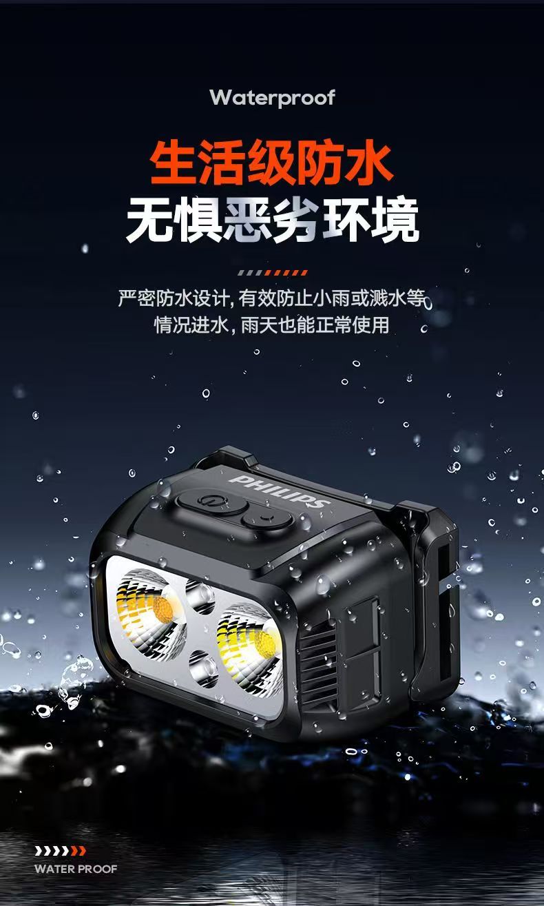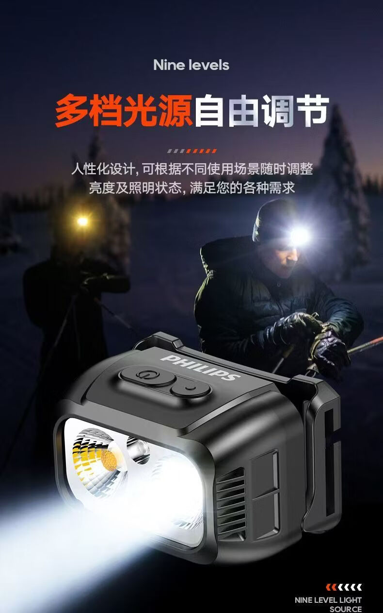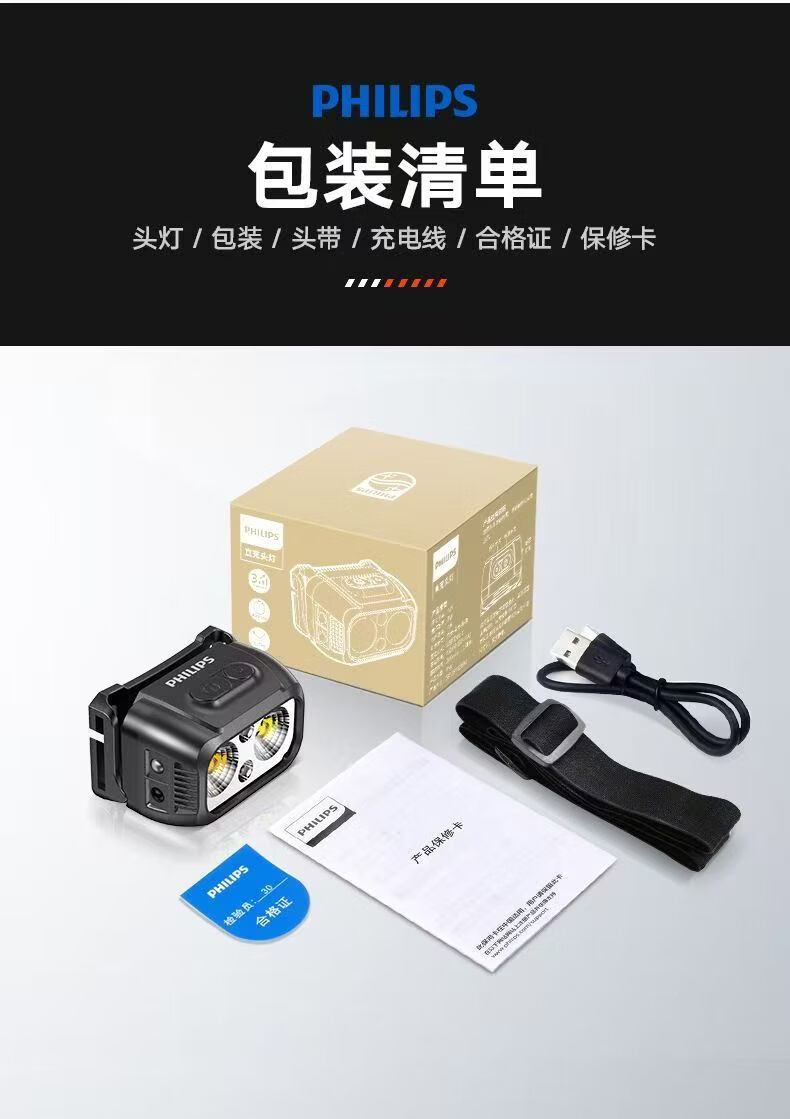 飞利浦(PHILIPS)感应头灯黄光白光双色夜钓强光充电高亮远射钓鱼头戴式照明SFL1341RH 5W/800毫安/SFL1341RH