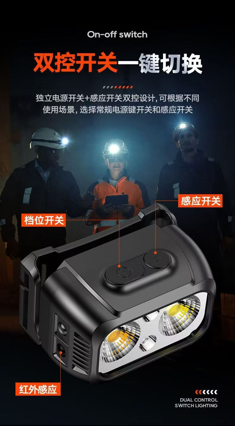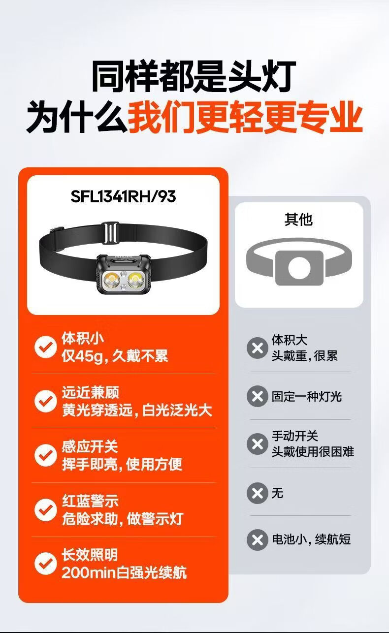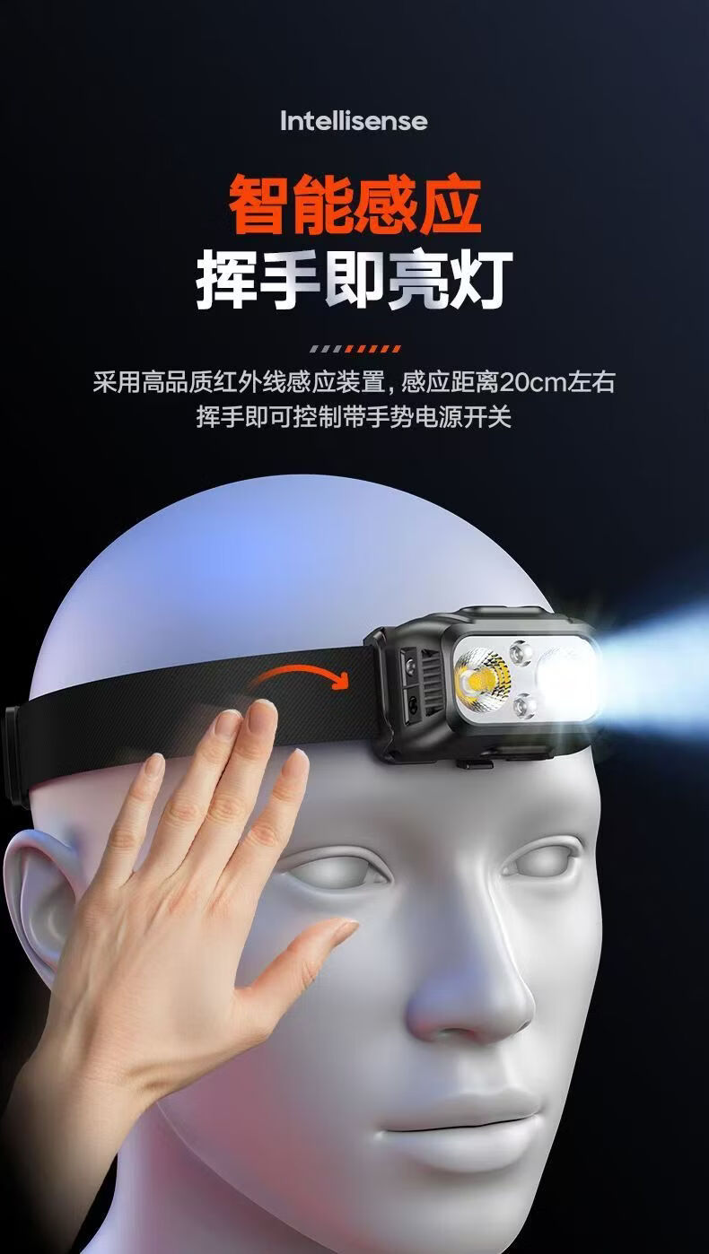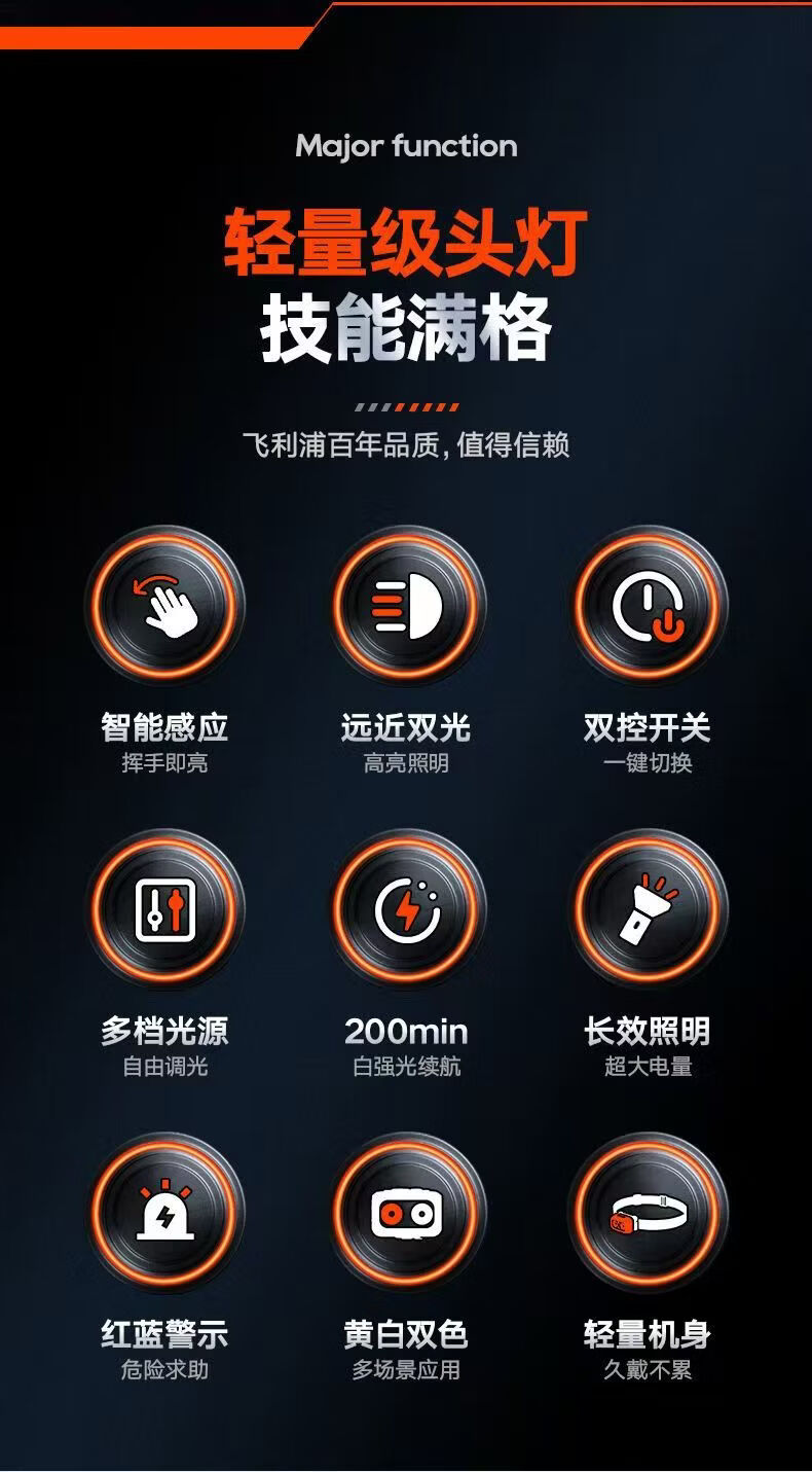 飞利浦(PHILIPS)感应头灯黄光白光双色夜钓强光充电高亮远射钓鱼头戴式照明SFL1341RH 5W/800毫安/SFL1341RH