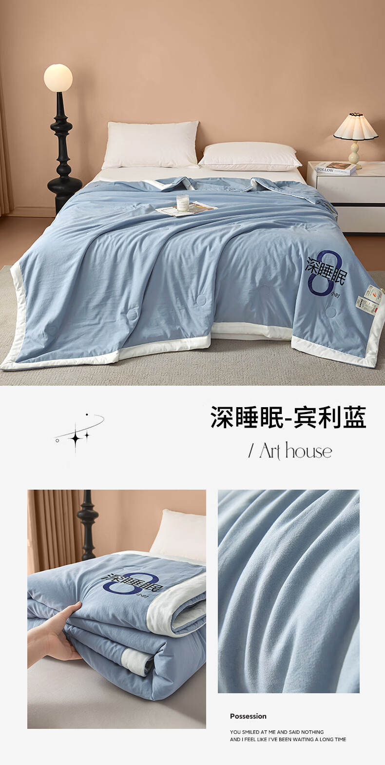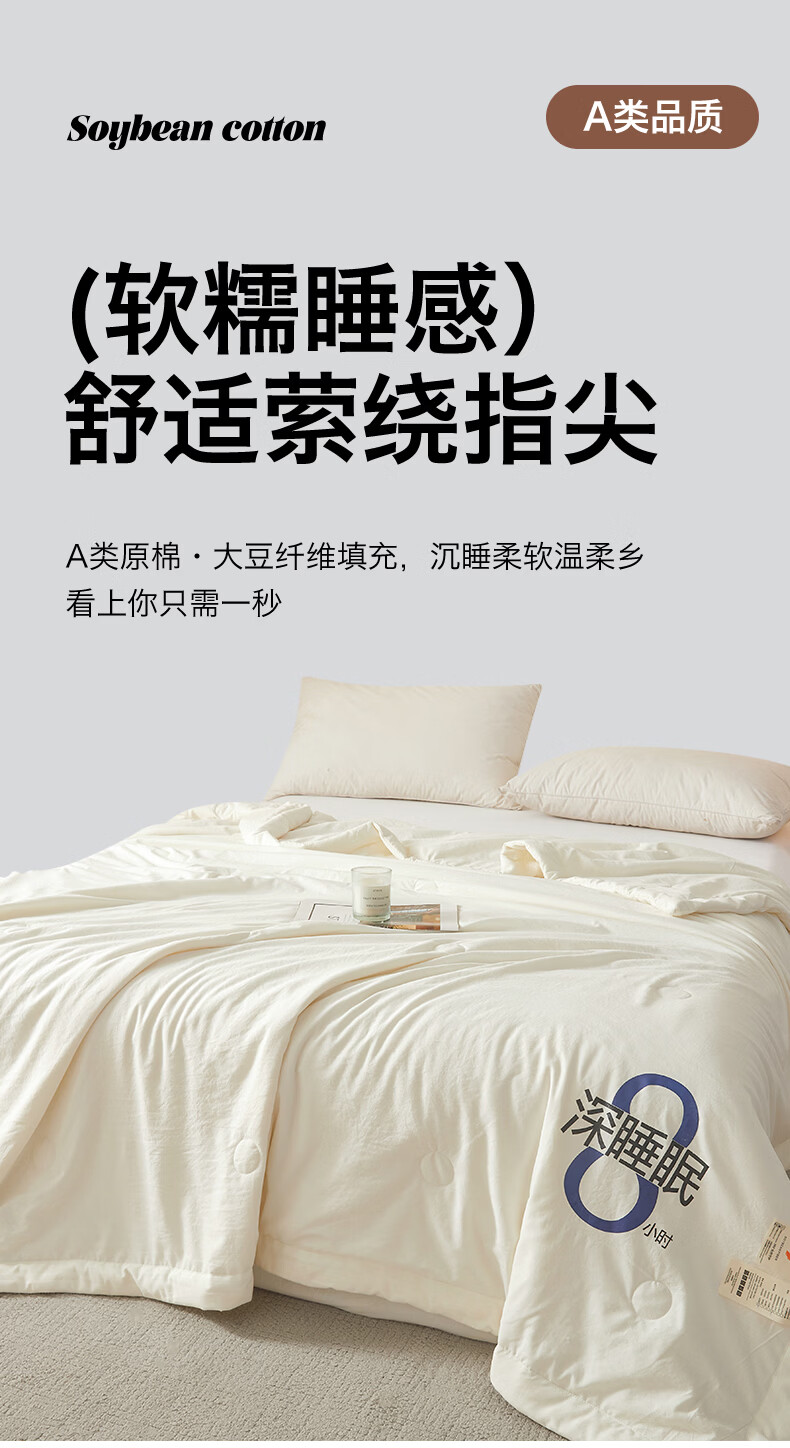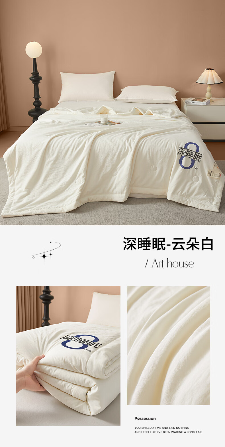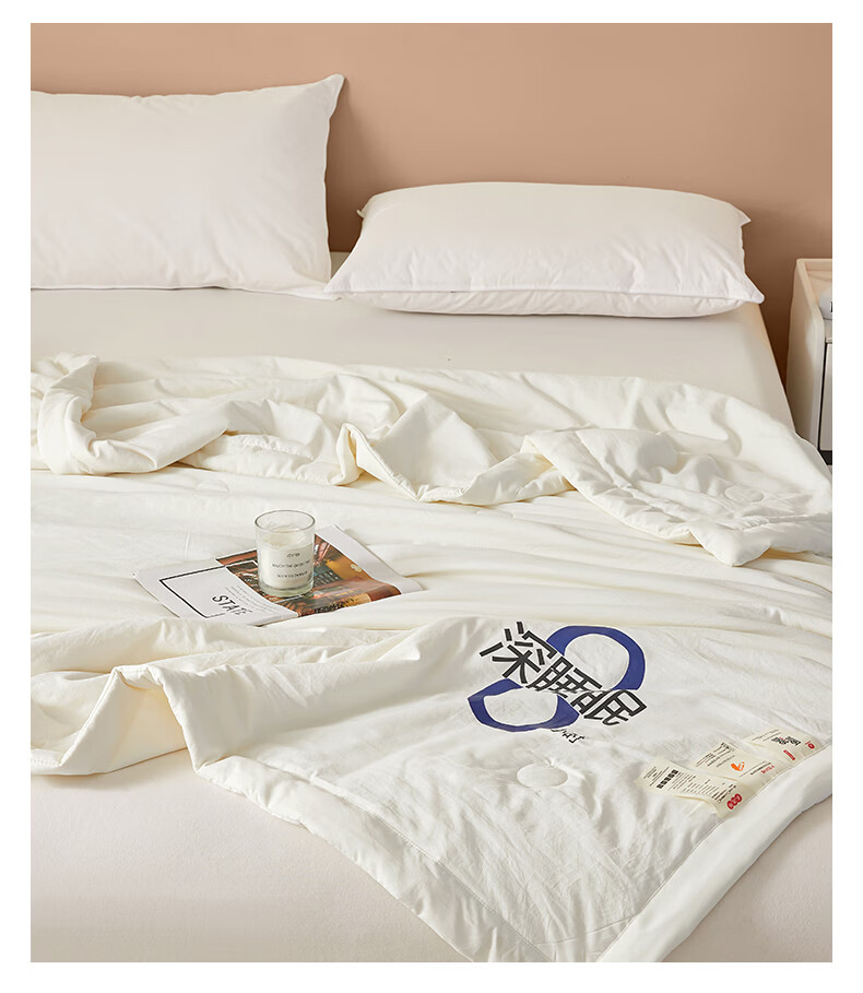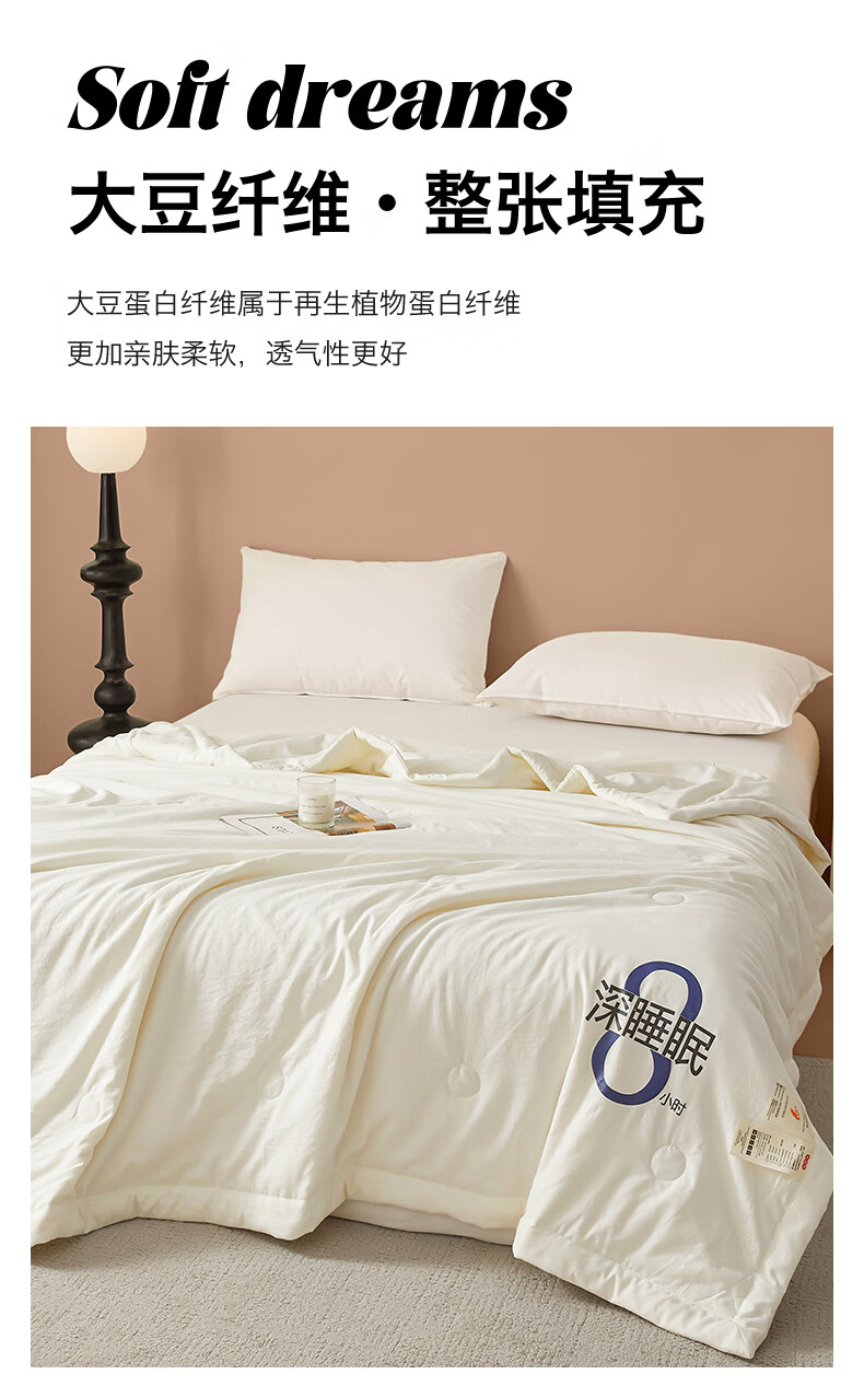 无印良品夏季空调被1.5x2米夏凉被四件套可机洗裸睡宿舍家用大豆被子薄款 深睡眠-云朵白【大豆纤维填充 亲肤软糯】 150x200cm单夏被 通用