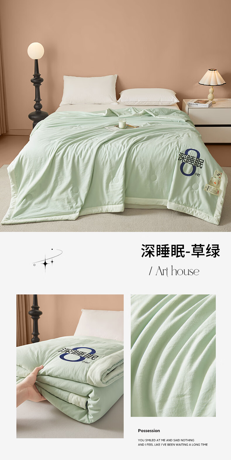 苏萱2026新款热卖水洗冰丝夏被四件套夏季夏凉被空调被可机水洗单双人 亚丁绿+冰川灰 单人夏被-150*200cm