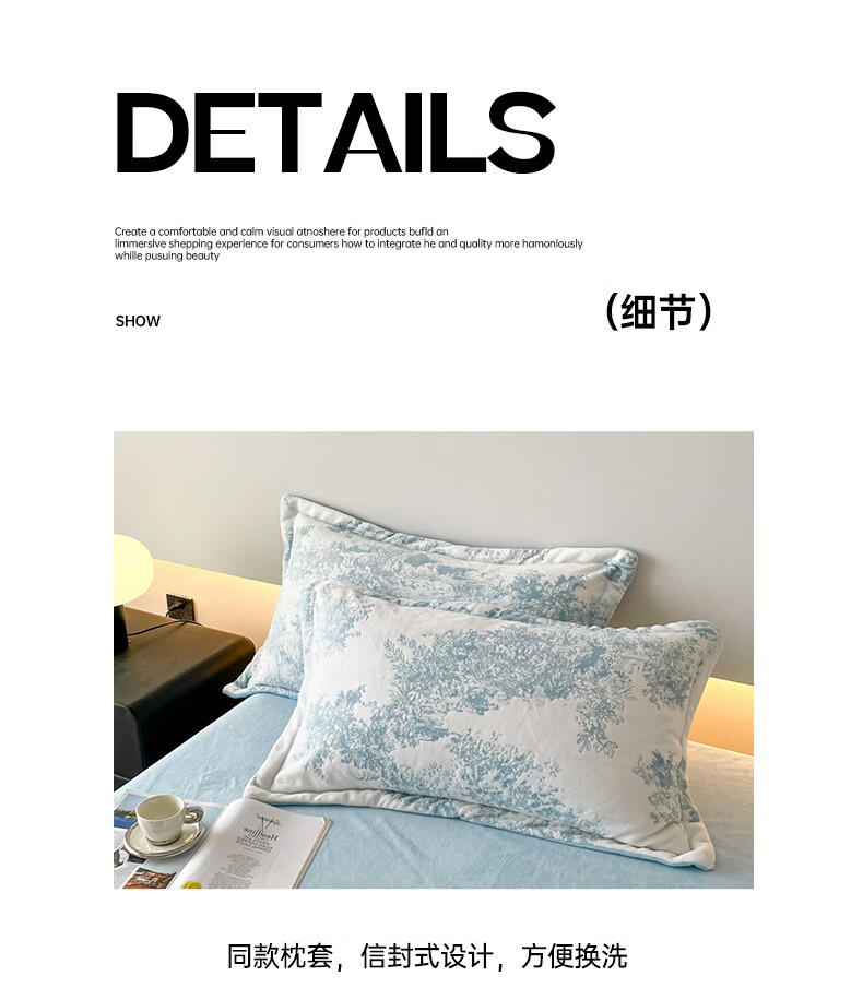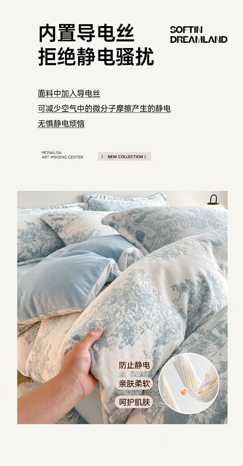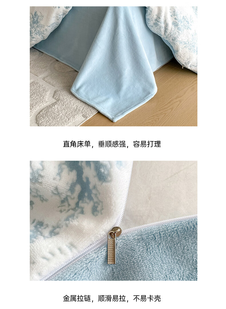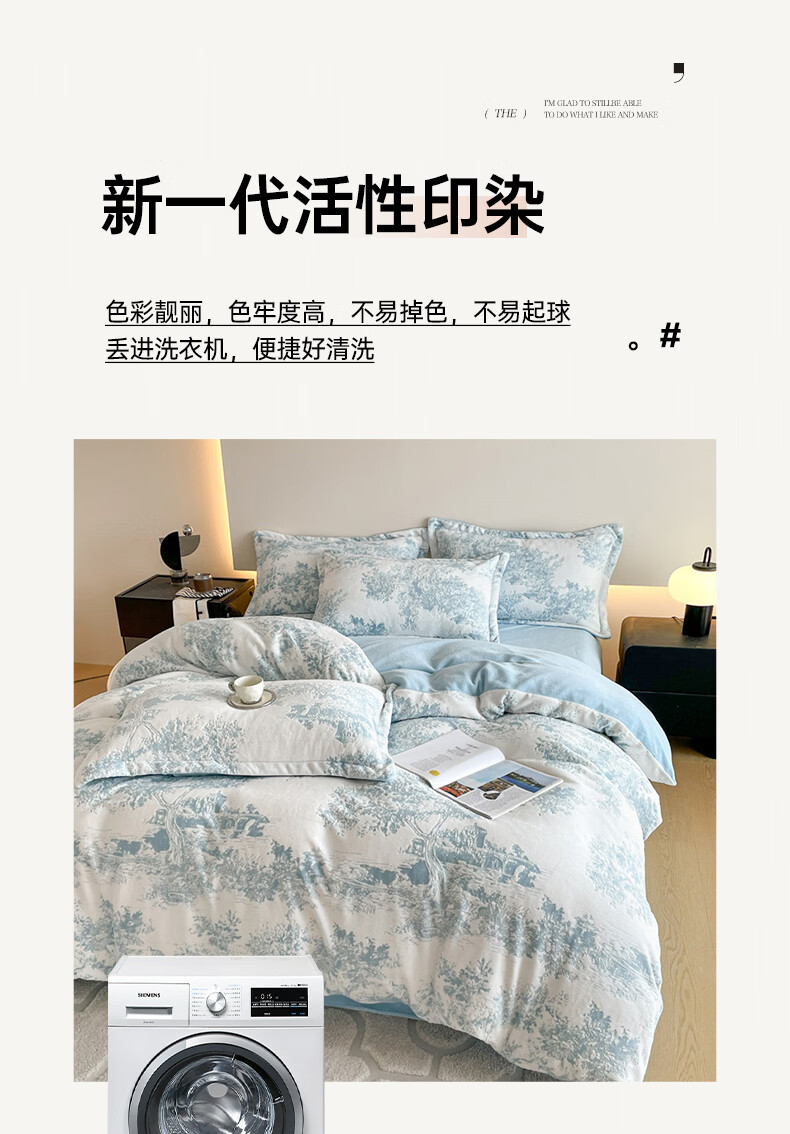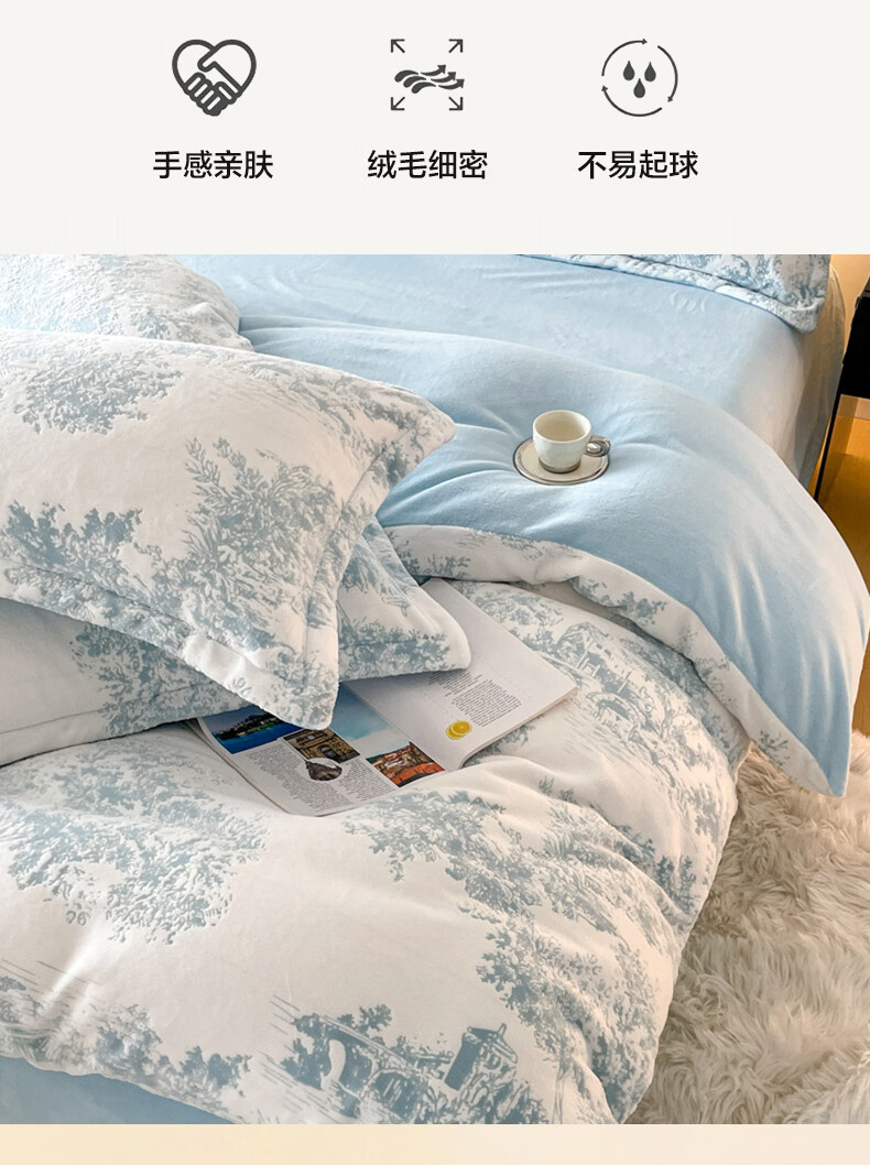 无印良品冬季雕花牛奶绒床上四件套双面加绒被套家用床单被罩保暖床笠套件 云木-蓝 【雕花牛奶绒 加厚保暖】 1.8m 床单款 四件套-被套200x230cm