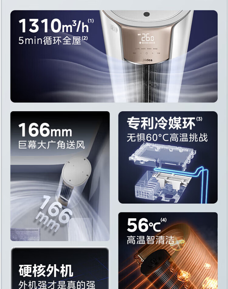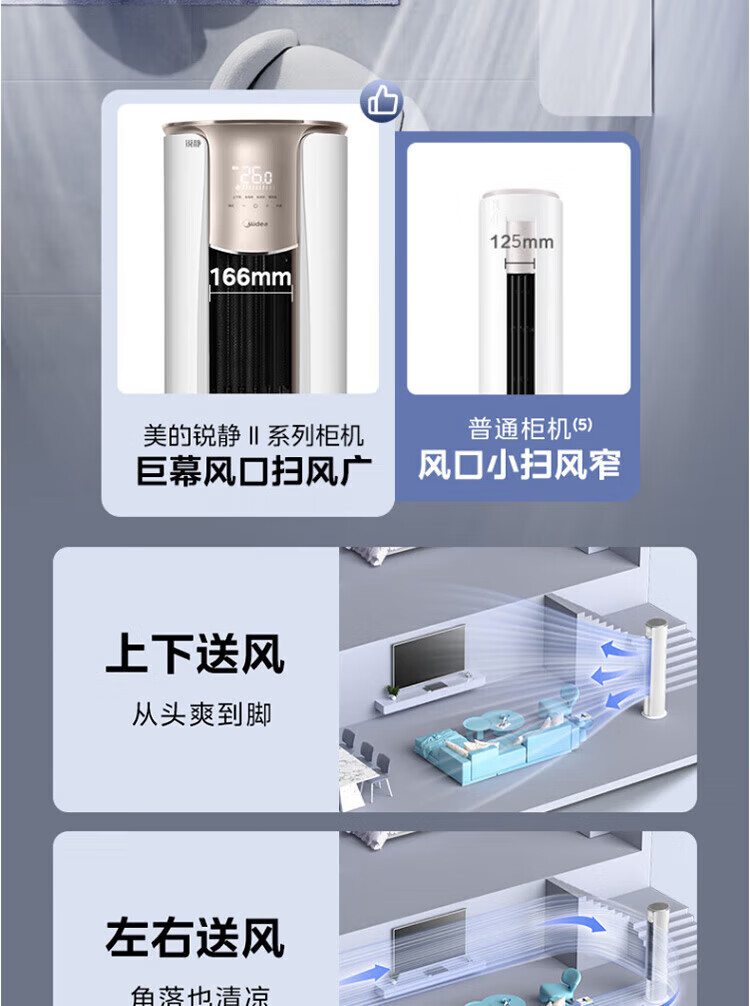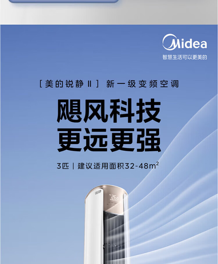 美的(Midea)空调柜机立式锐静二代新一级能效全直流变频冷暖自清洁客厅大风口国家补贴15%节能省电以旧换新 锐静 大风口 大3匹