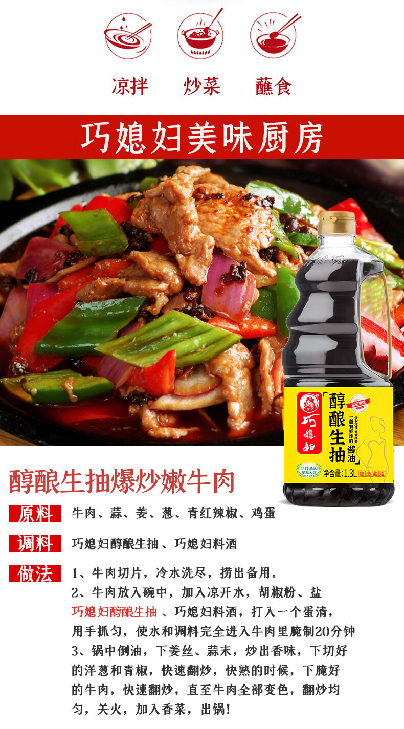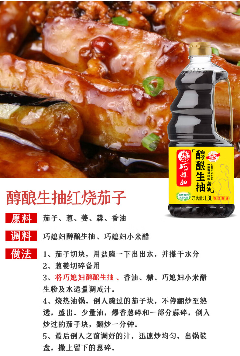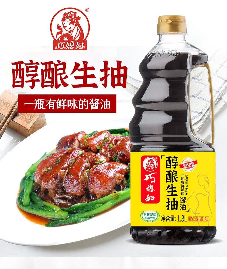 巧媳妇家用生抽醇酿酱油大桶装炒菜卤炖调馅味极鲜调味品【临期8月底】 醇酿生抽1.3L*2桶【临期8月底】