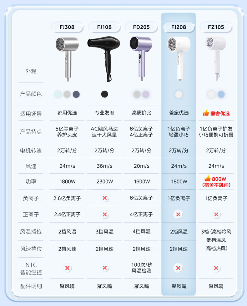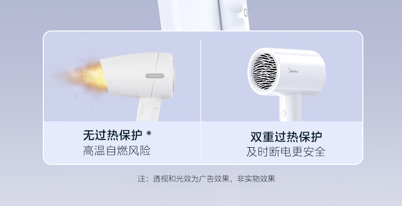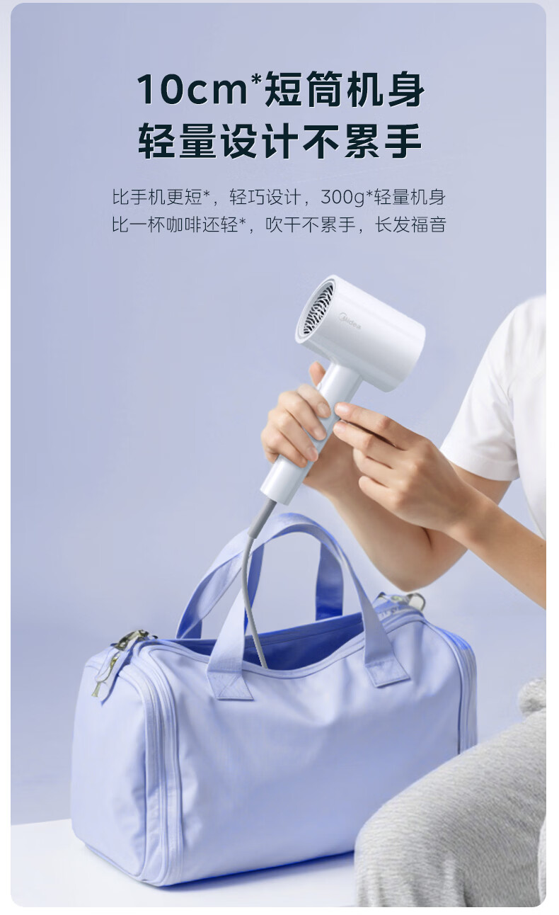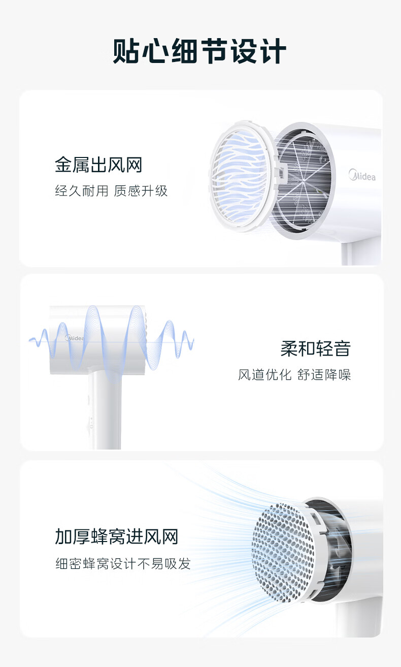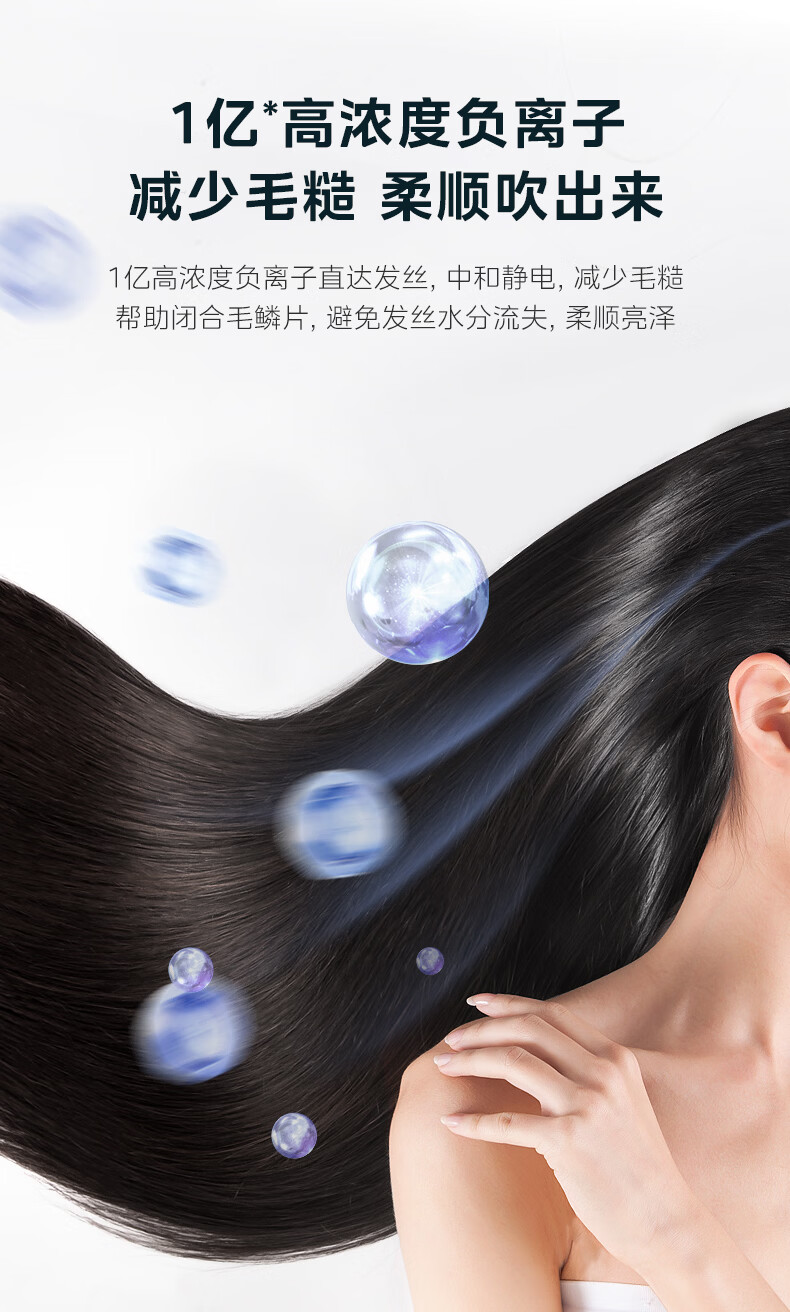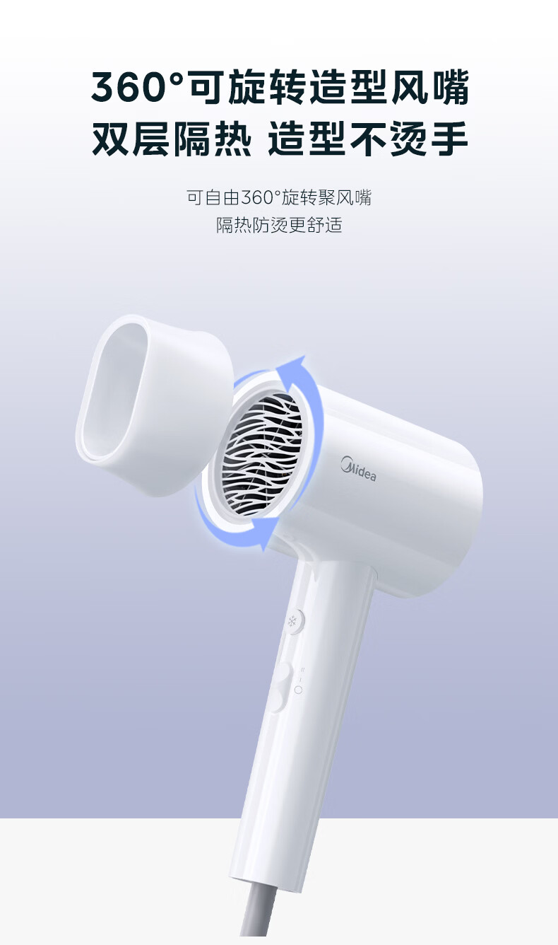 美的(Midea)1亿负离子电吹风 大功率快干不伤发吹风机 家用负离子护发吹风筒 FJ208白1800W 国家补贴 生日礼物
