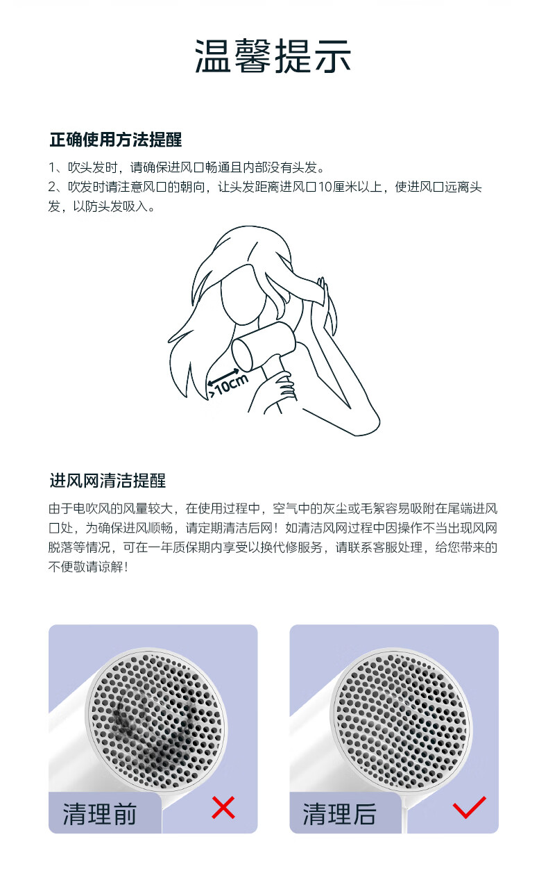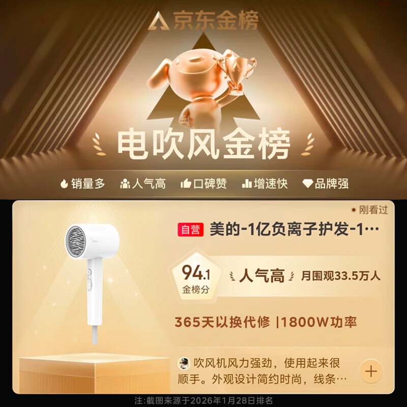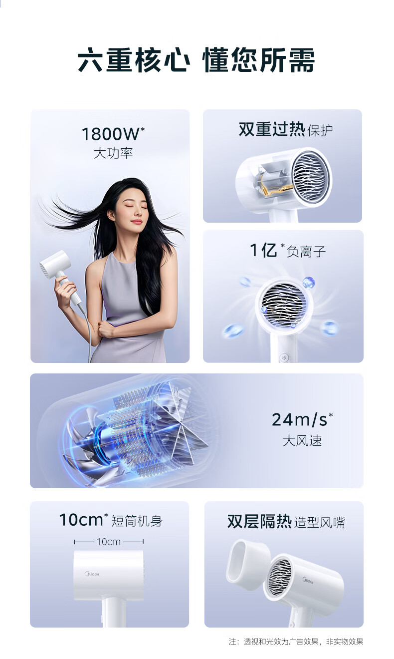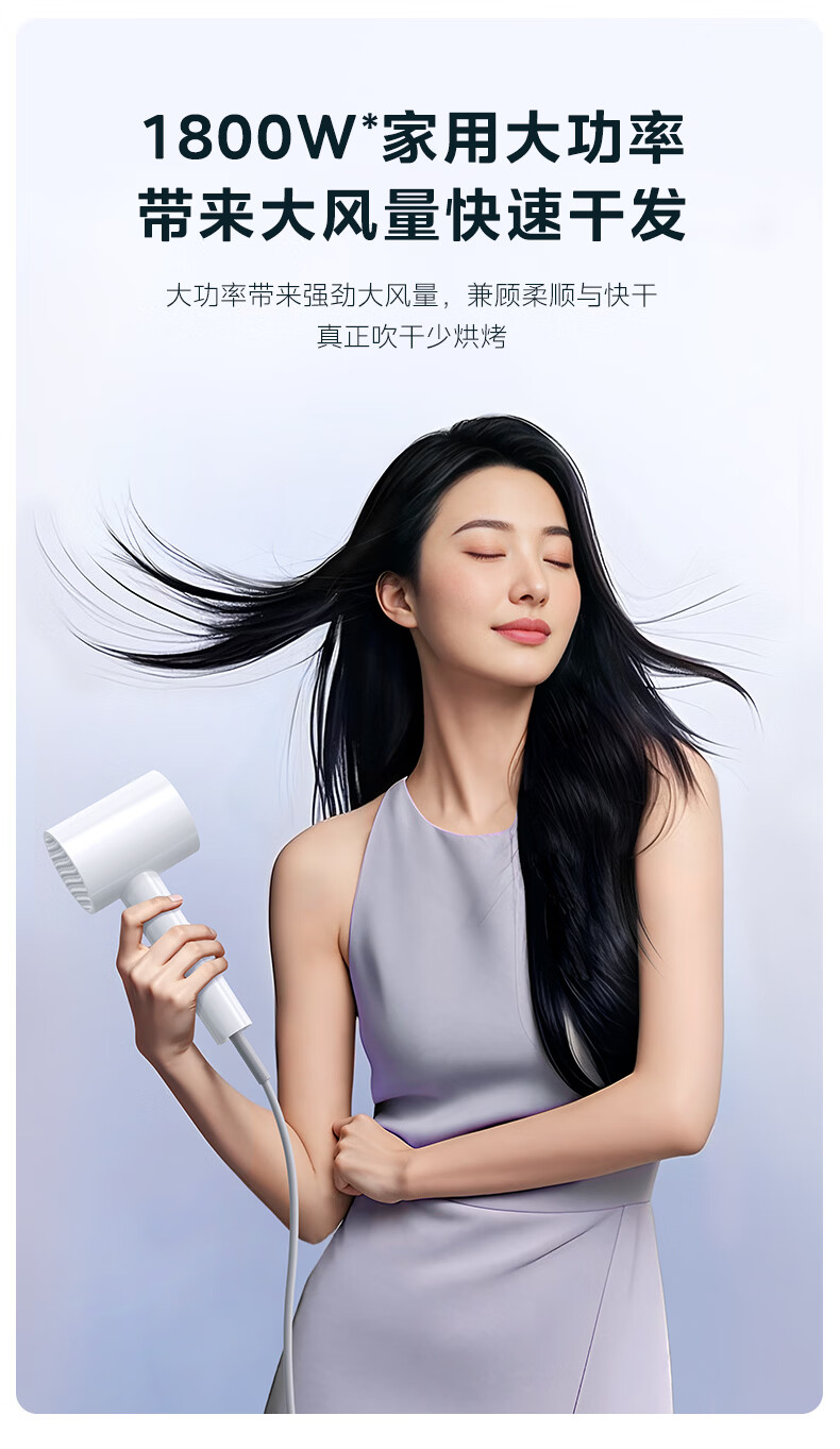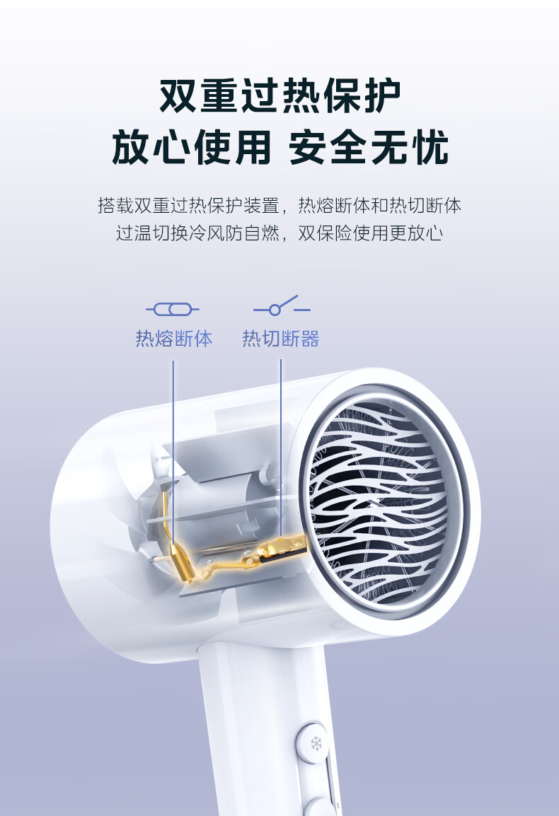 美的(Midea)1亿负离子电吹风 大功率快干不伤发吹风机 家用负离子护发吹风筒 FJ208白1800W 国家补贴 生日礼物