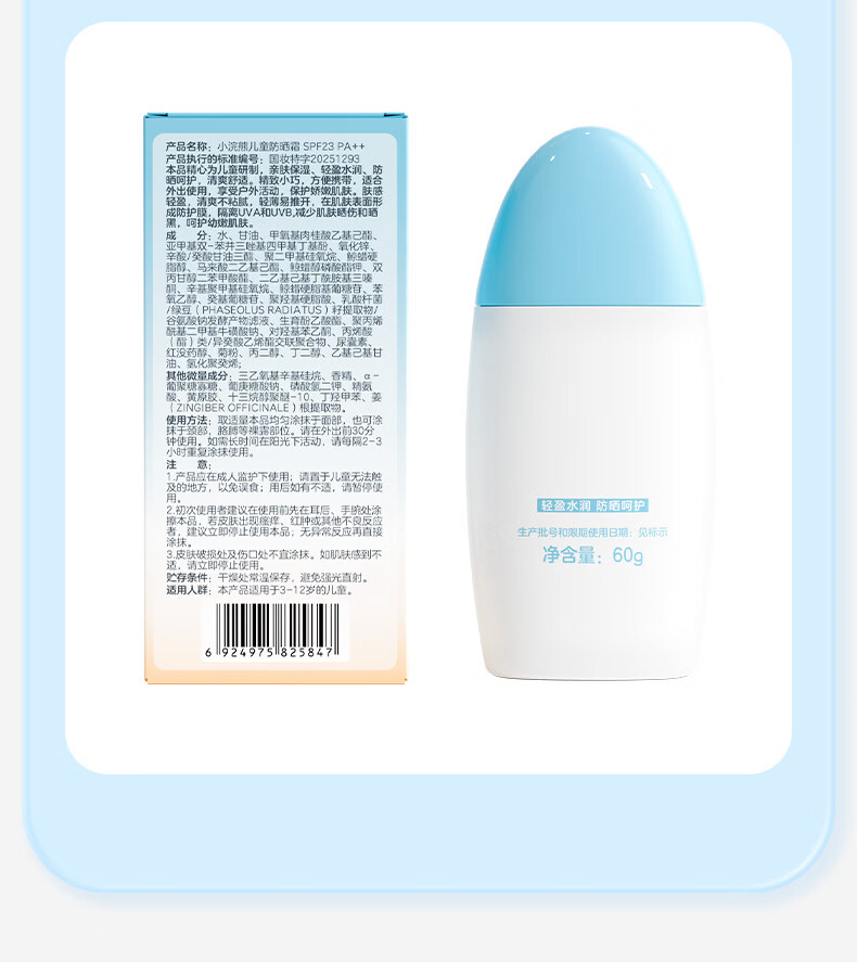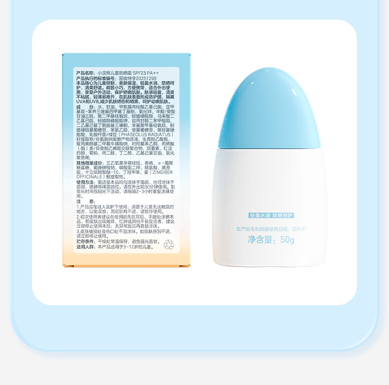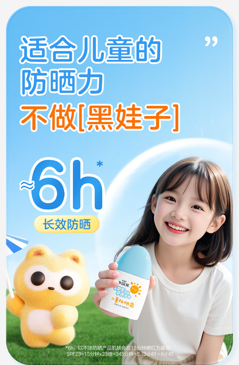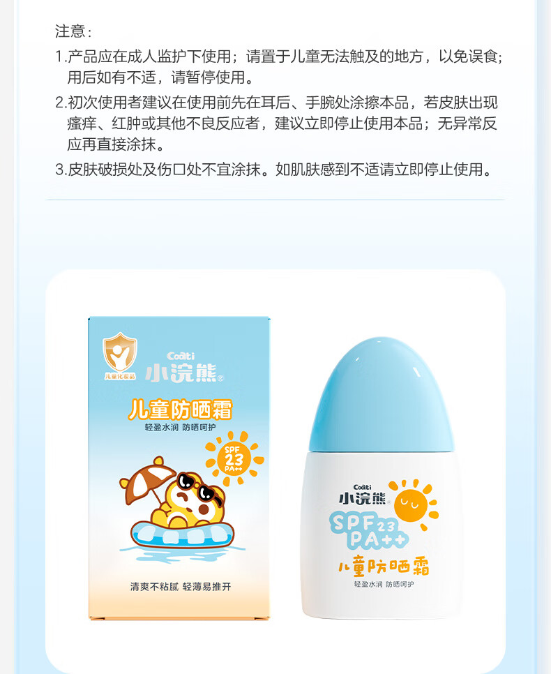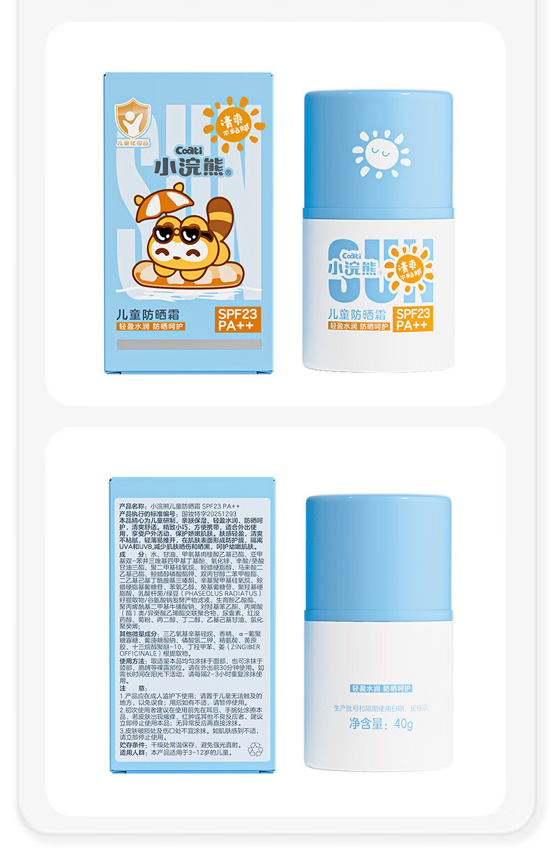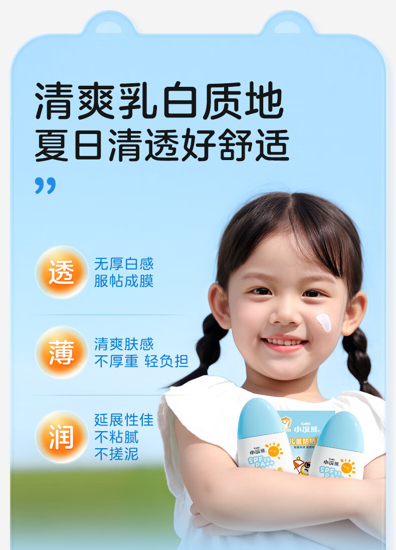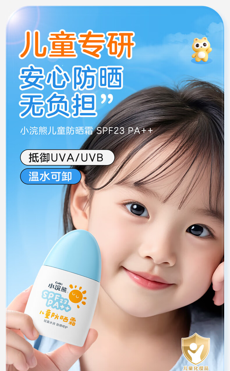 小浣熊儿童防晒霜户外隔离防紫外线青少年学生防晒乳液夏季军训不粘腻 【3岁+】儿童防晒霜40g