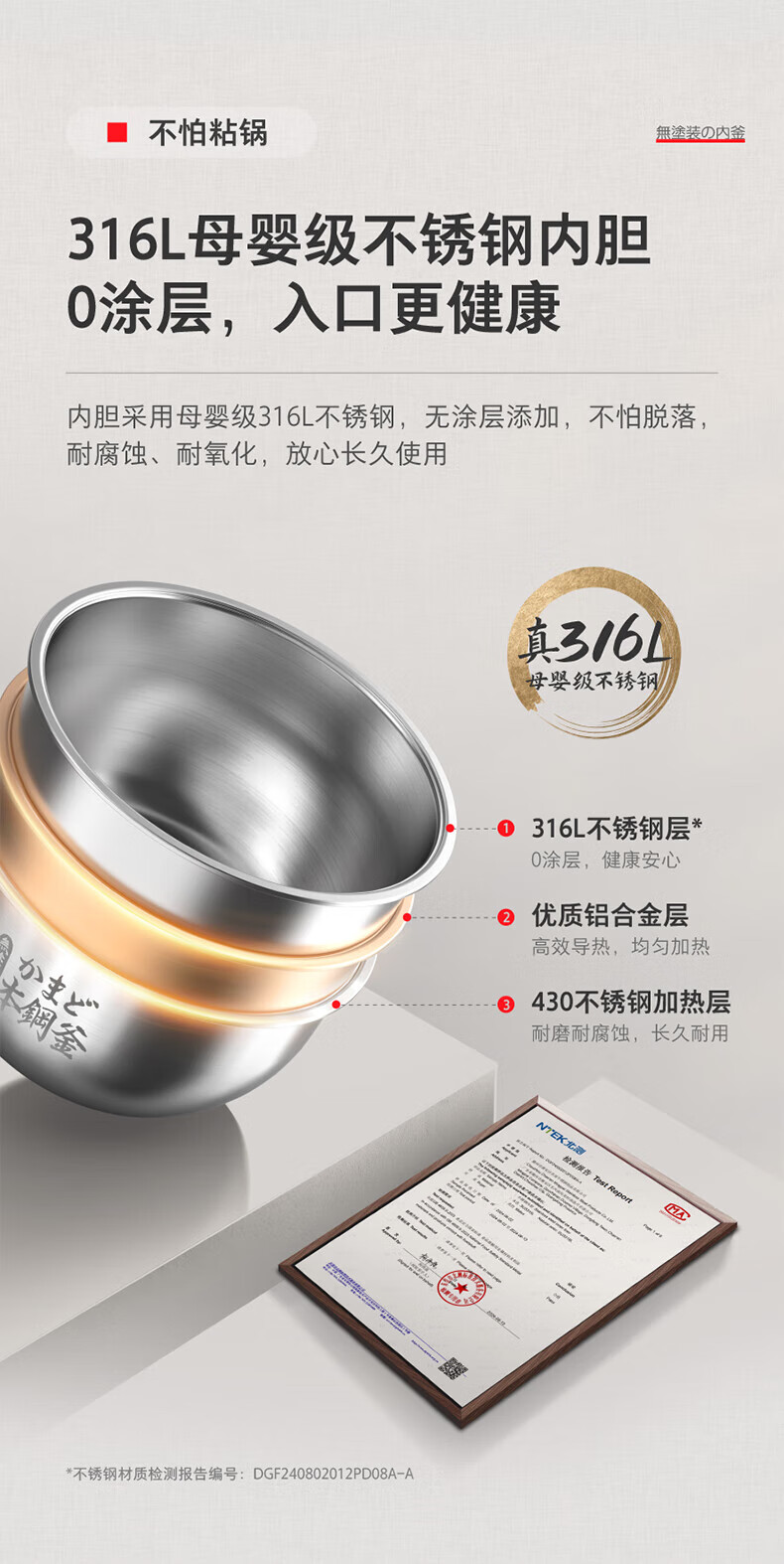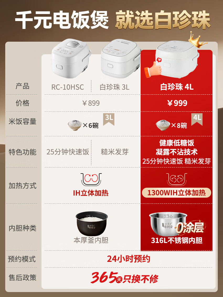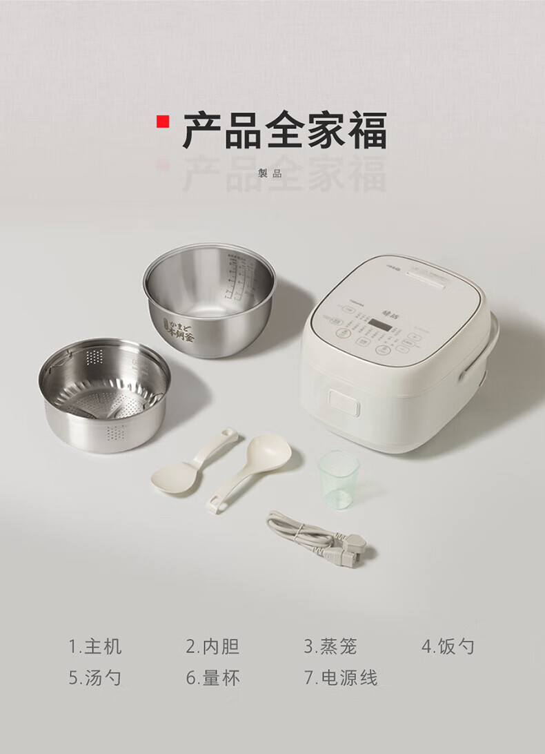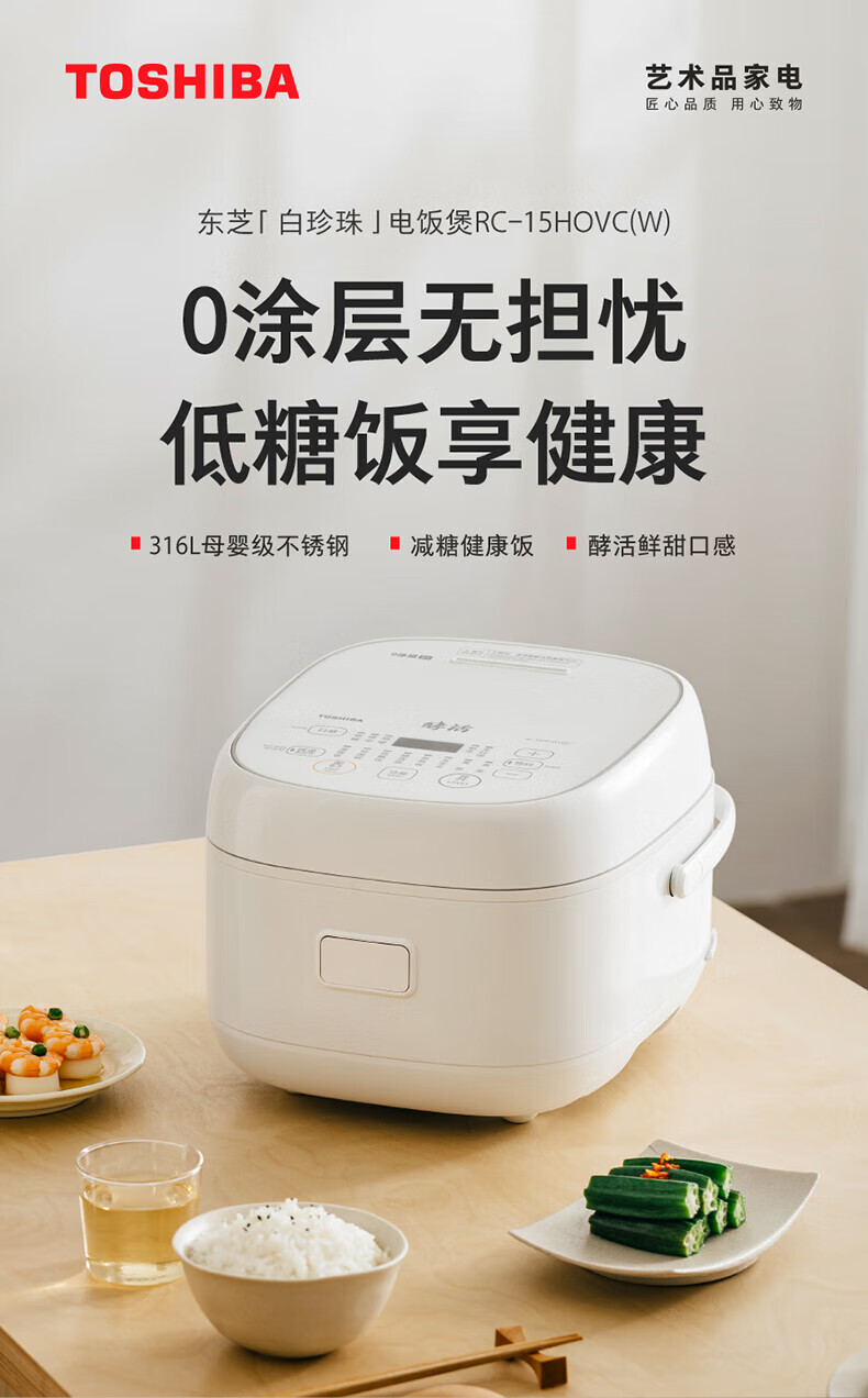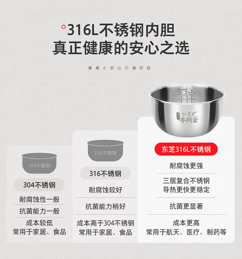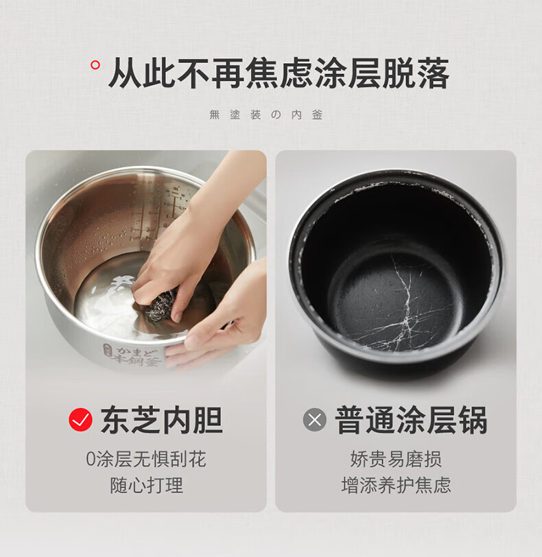 东芝(TOSHIBA)【官方旗舰店】0涂层电饭煲4-5人无涂层不锈钢IH电饭煲4升容量 【健康低糖】 4L 丨1-6人