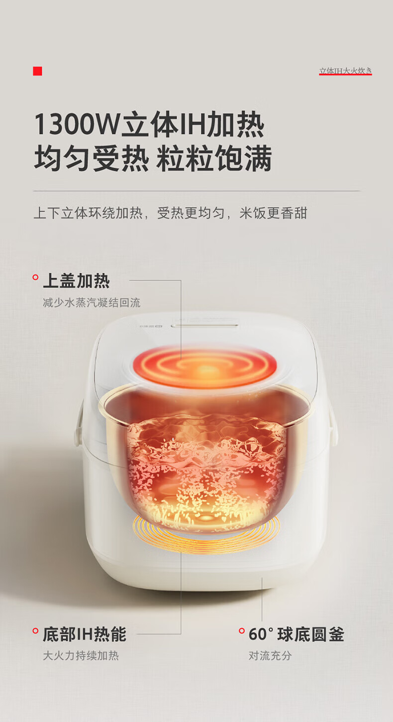 美的(Midea)电饭煲4L 家用大容量3-5人青瓷抗菌内胆IH立体加热可拆上盖智能可预约蒸煮米饭锅多功能用途电饭锅 【青瓷抗菌内胆】 4L 防刮耐磨钢化玻璃屏