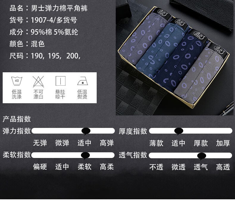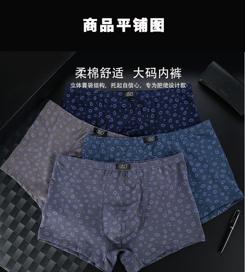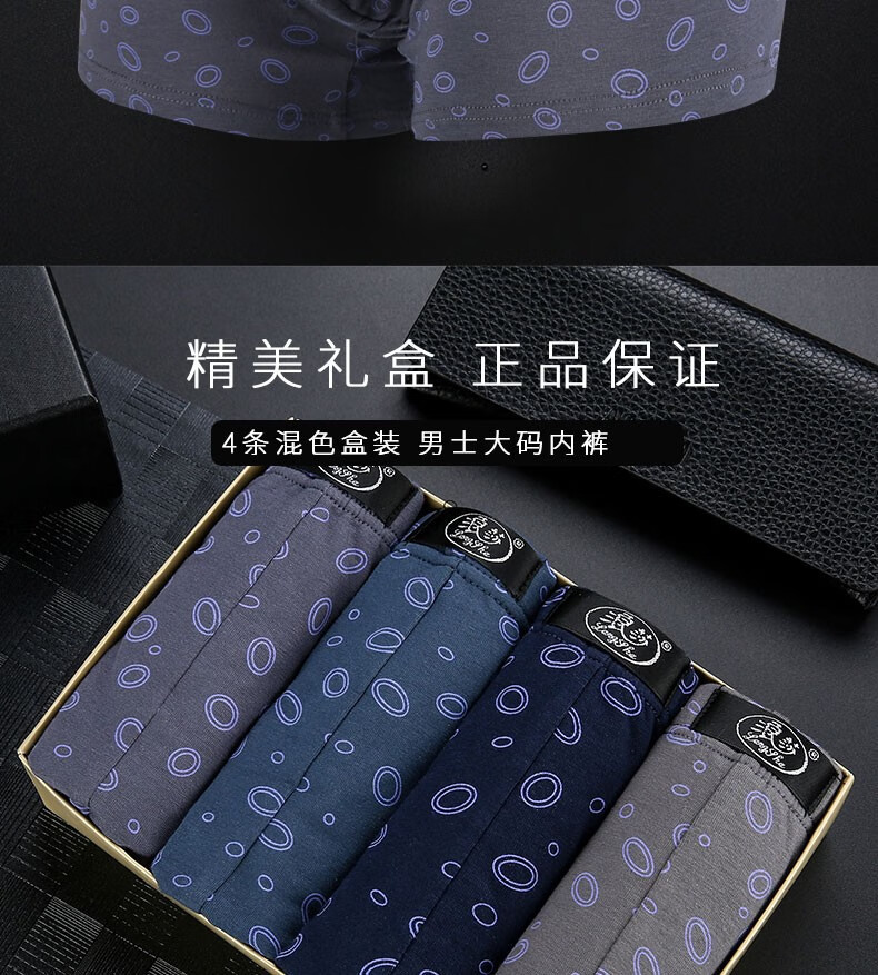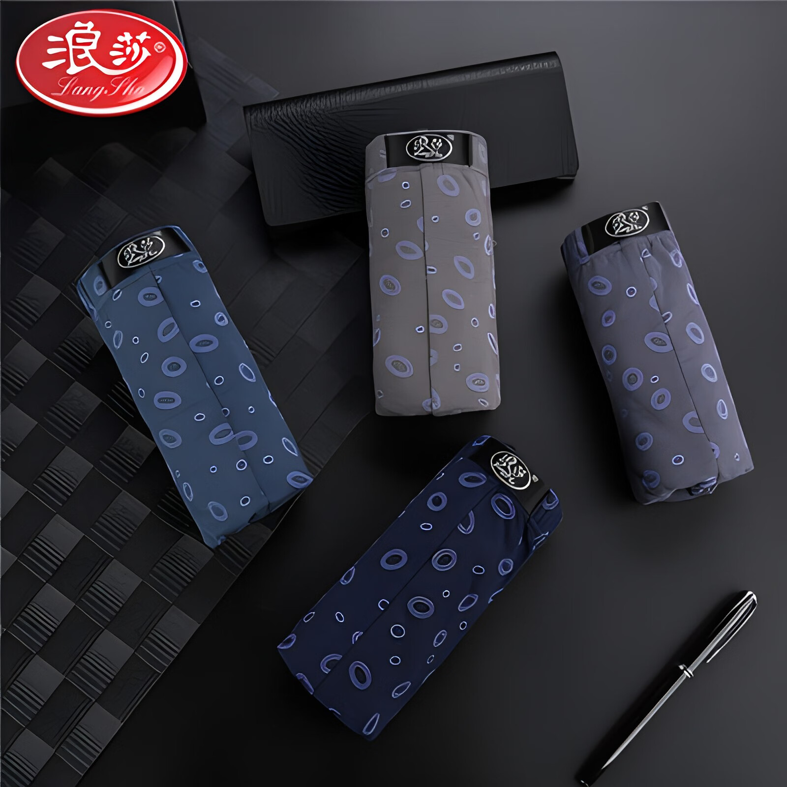 浪莎男士内裤男生男款棉质平角裤裤衩男式四角裤短裤头男人春秋 4条装[条纹时尚款] 4条 3XL /185