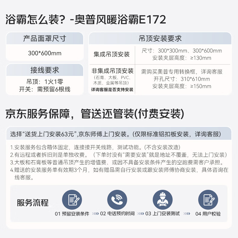 奥普(AUPU)风暖浴霸E系列 纤薄机身 风暖换气照明一体E172适配集成吊顶