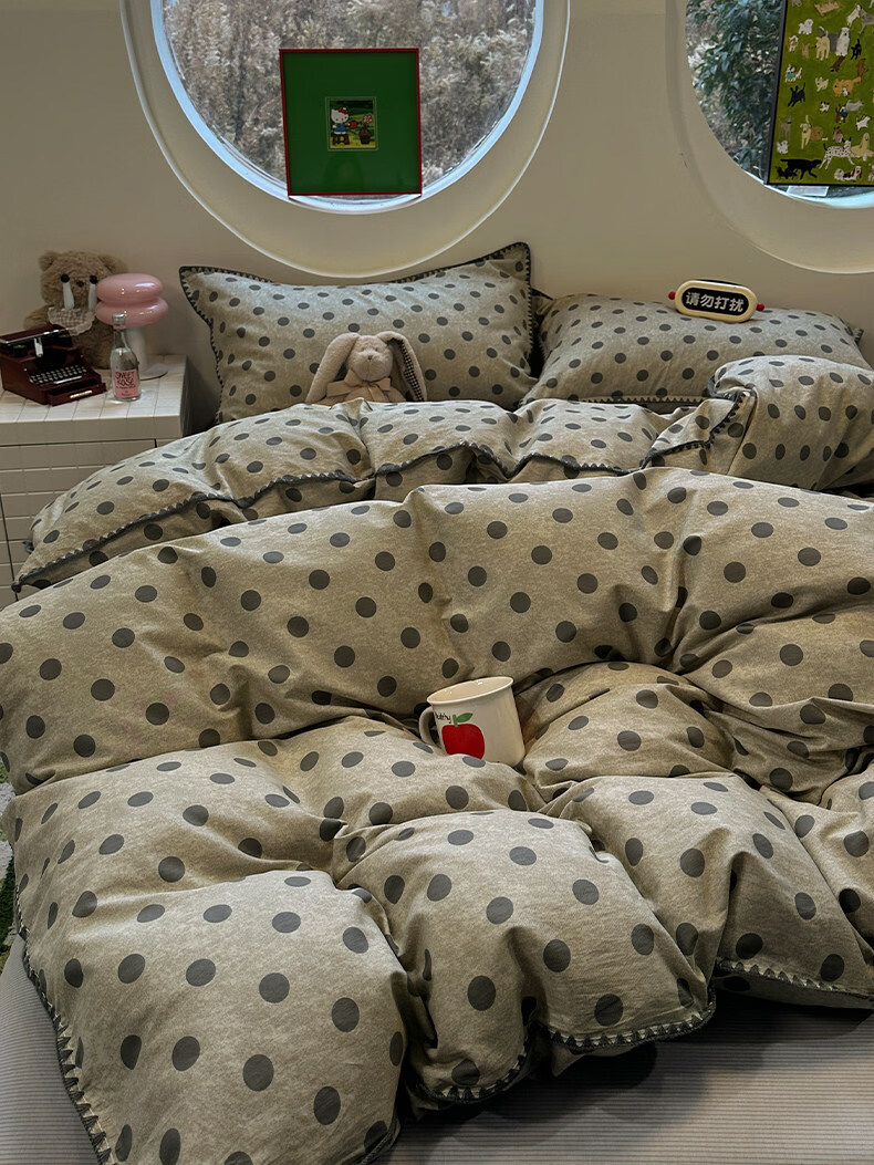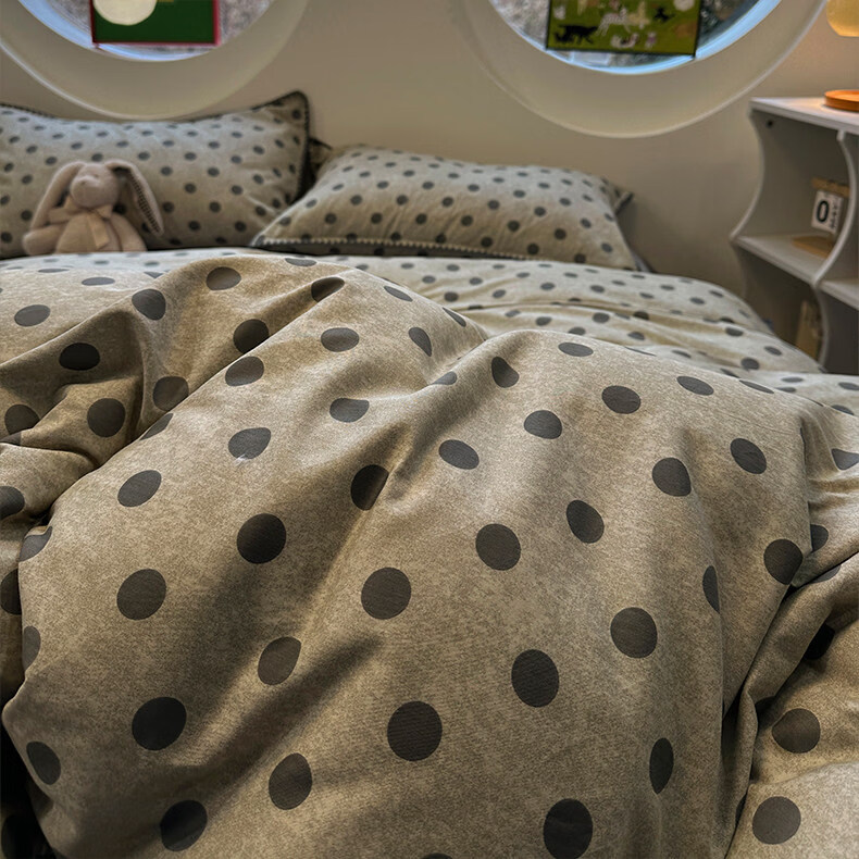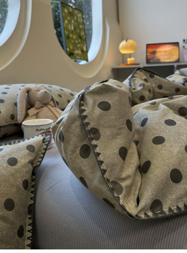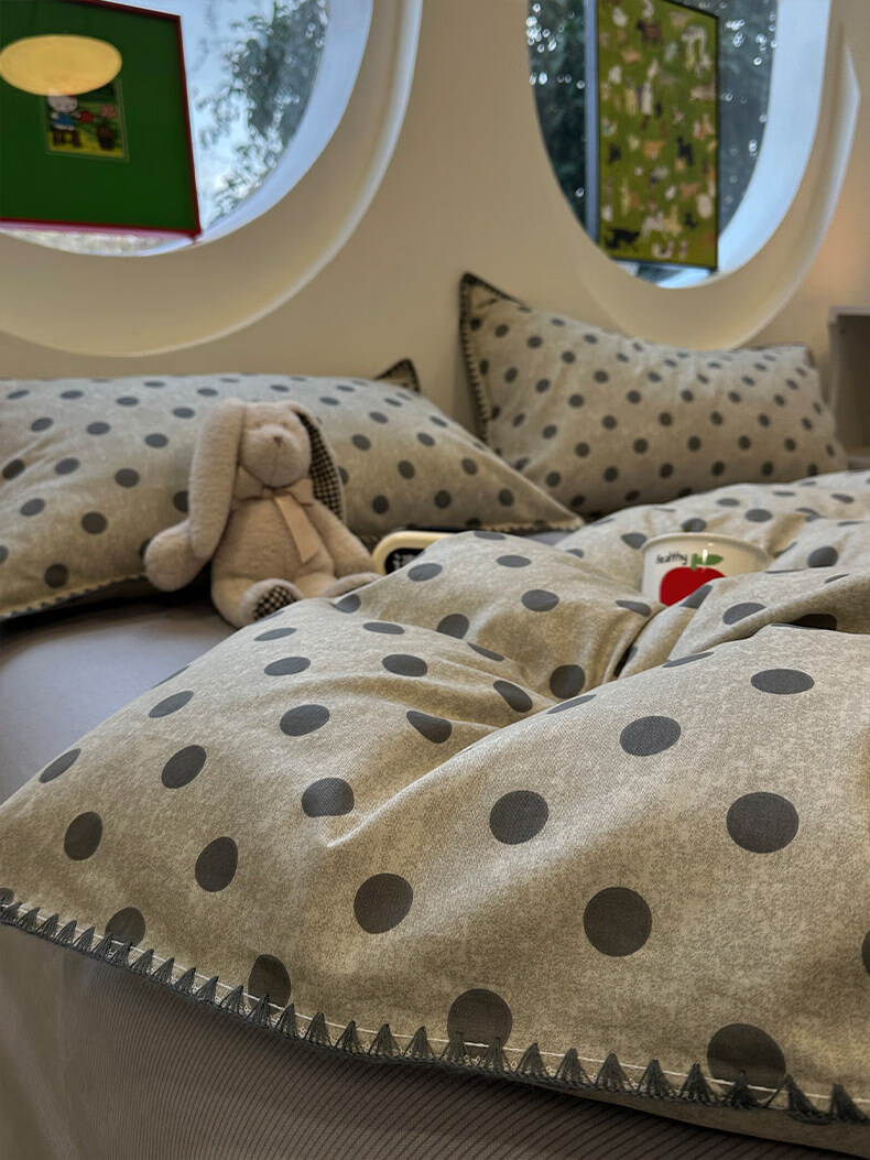 苏萱高级感灰色波点纯棉四件套100全棉贝壳边被套床单三件套床上用品4 灰调波点 1.8m 床单款 四件套-被套200x230cm