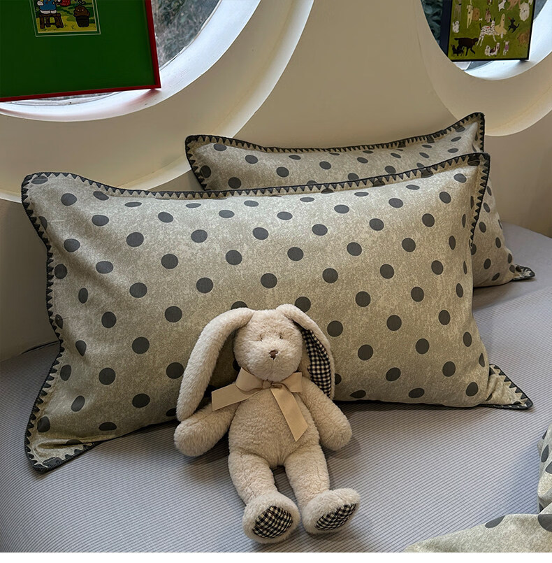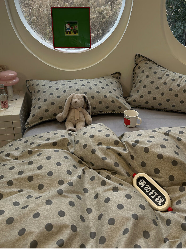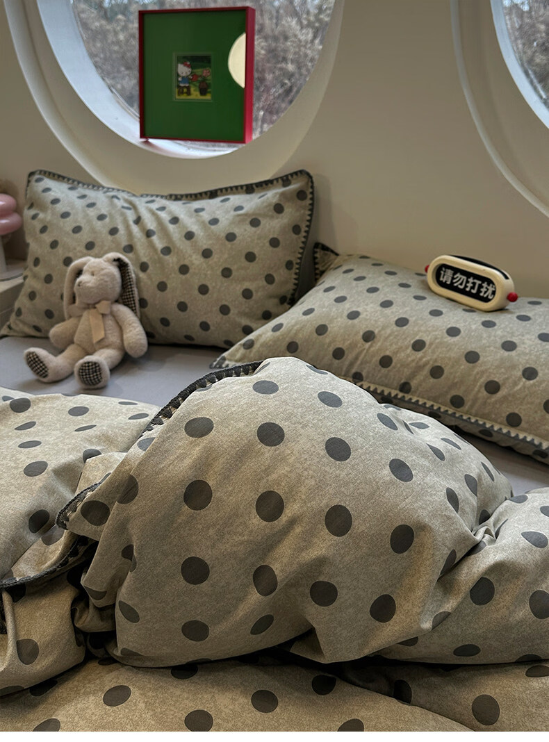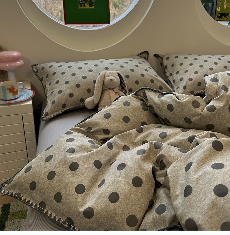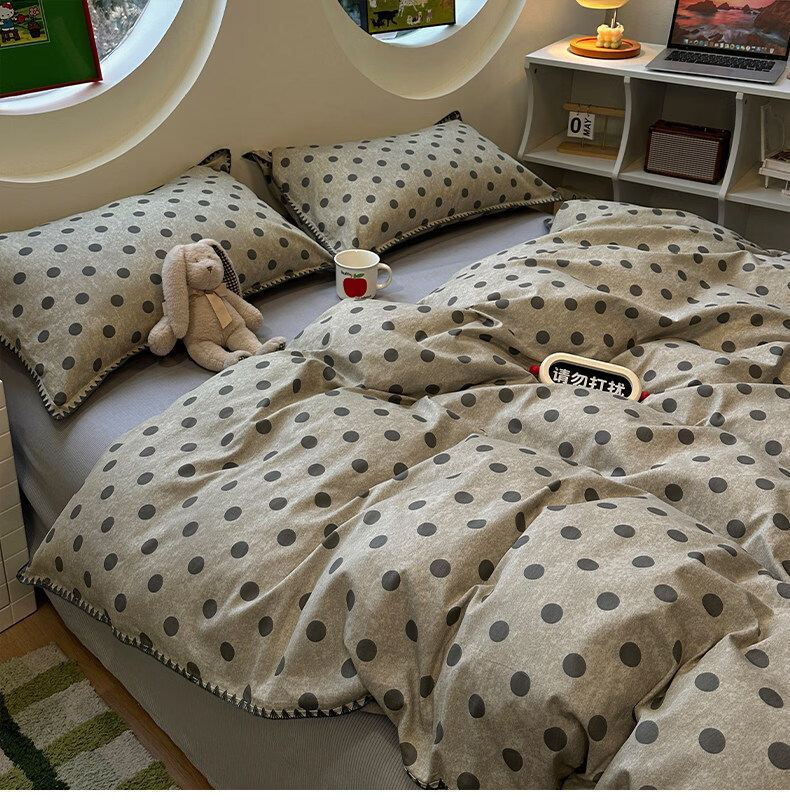 苏萱高级感灰色波点纯棉四件套100全棉贝壳边被套床单三件套床上用品4 灰调波点 1.8m 床单款 四件套-被套200x230cm