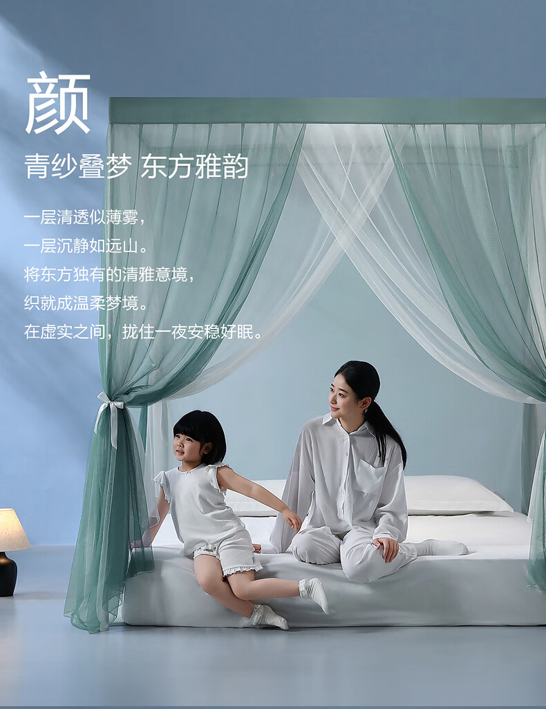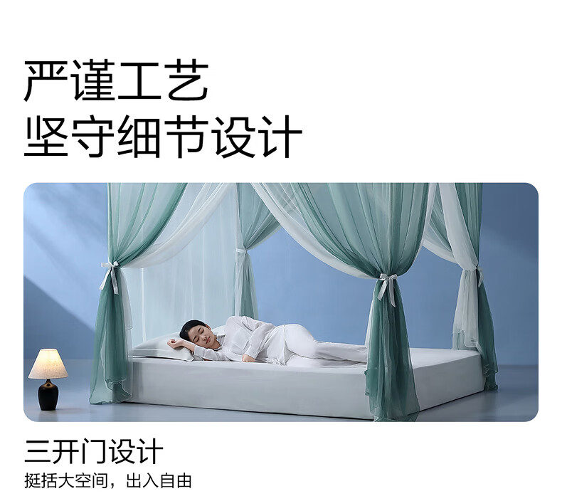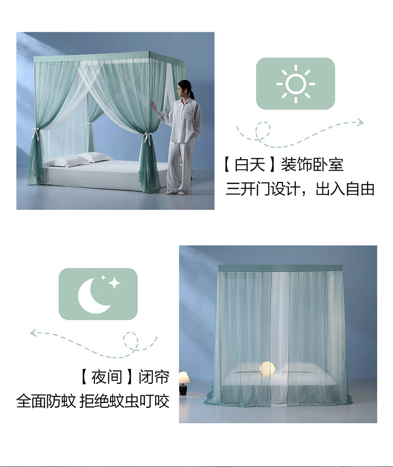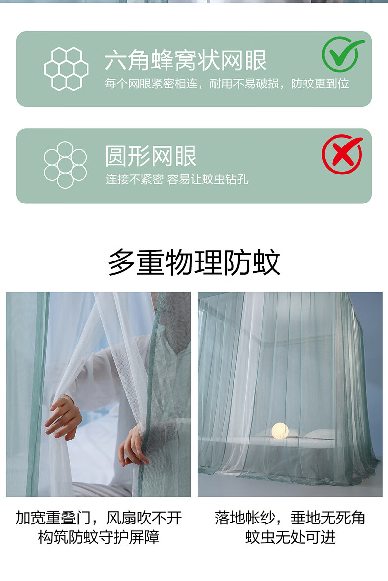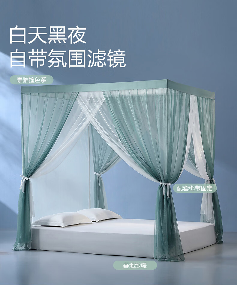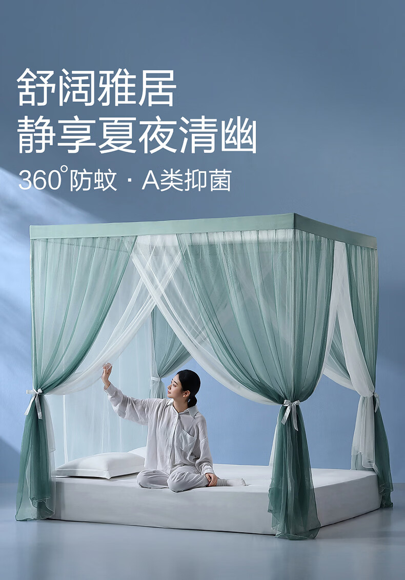 水星家纺轻纱素雅立地蚊帐 轻纱素雅立地蚊帐(古典绿) 200cm*150cm*217cm