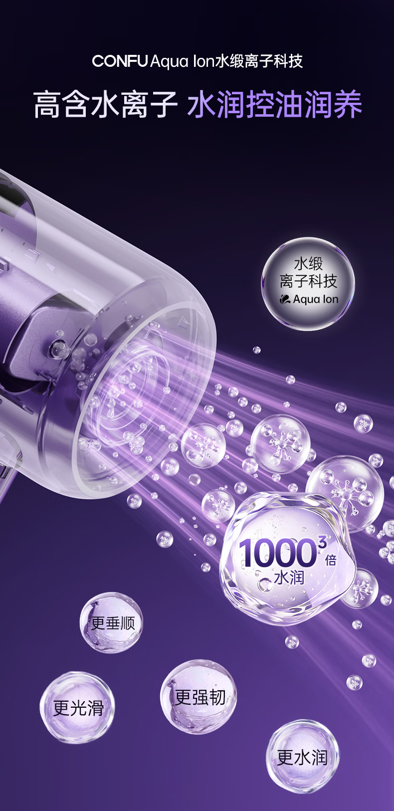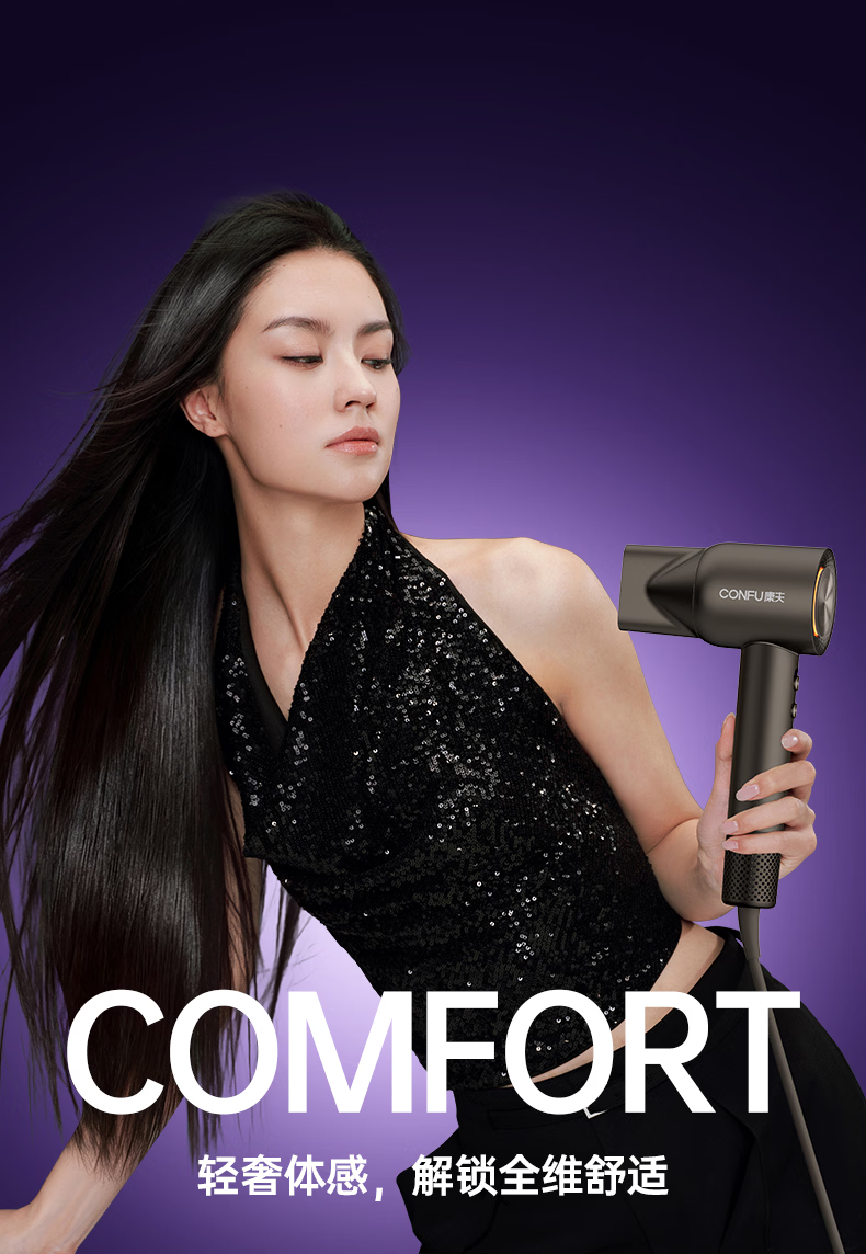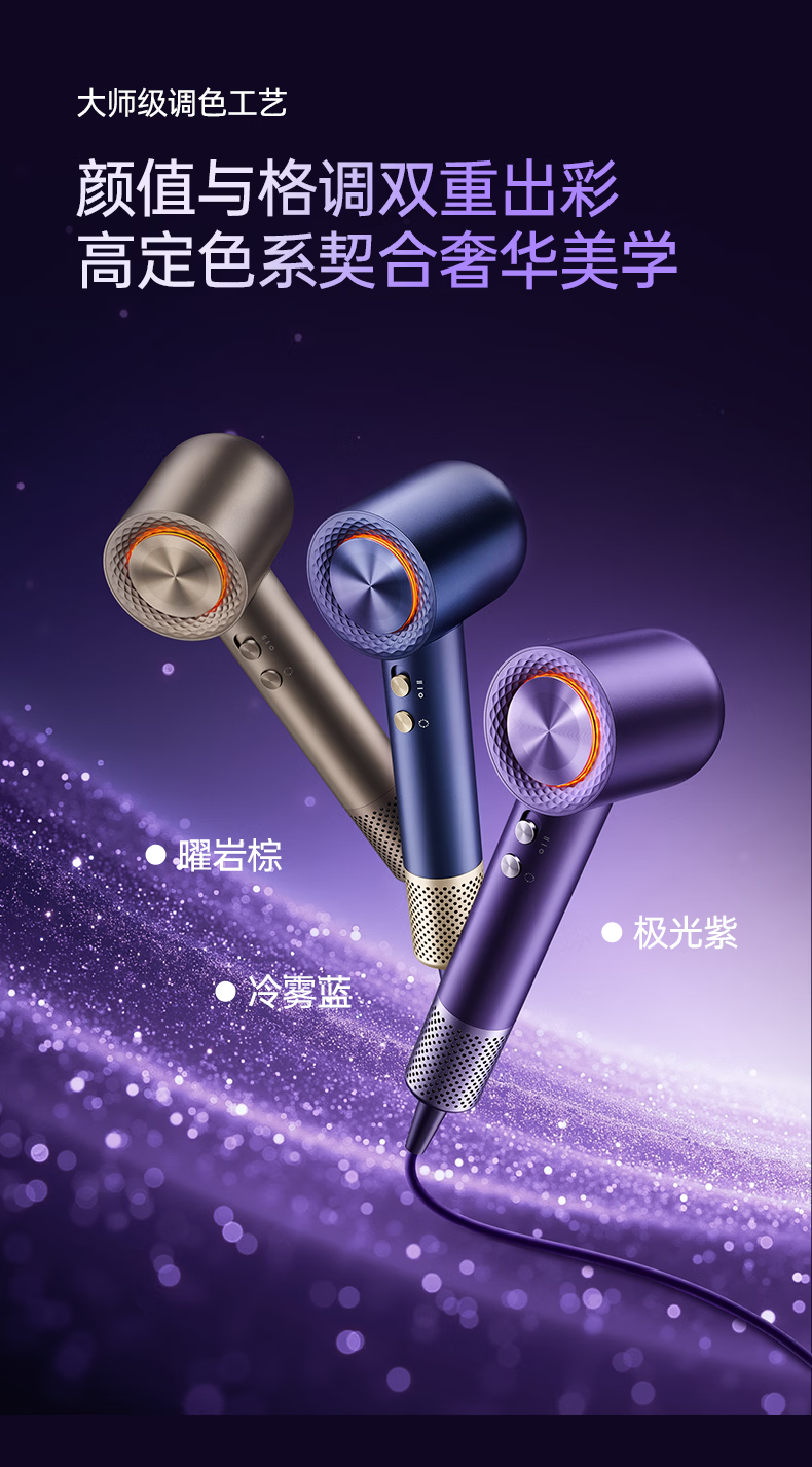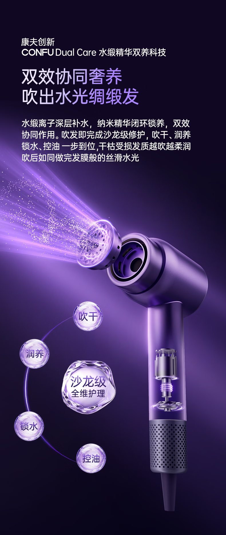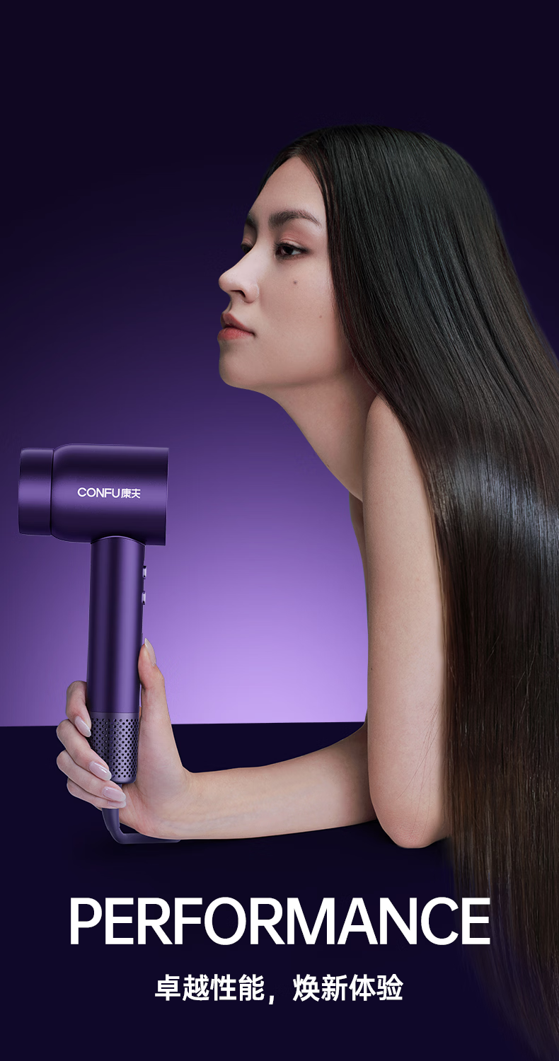 康夫(CONFU)Silk3菱光水离子高速护发吹风机精华润发静音速干13万转家用大功率电吹风筒生日礼物极光紫 养护版