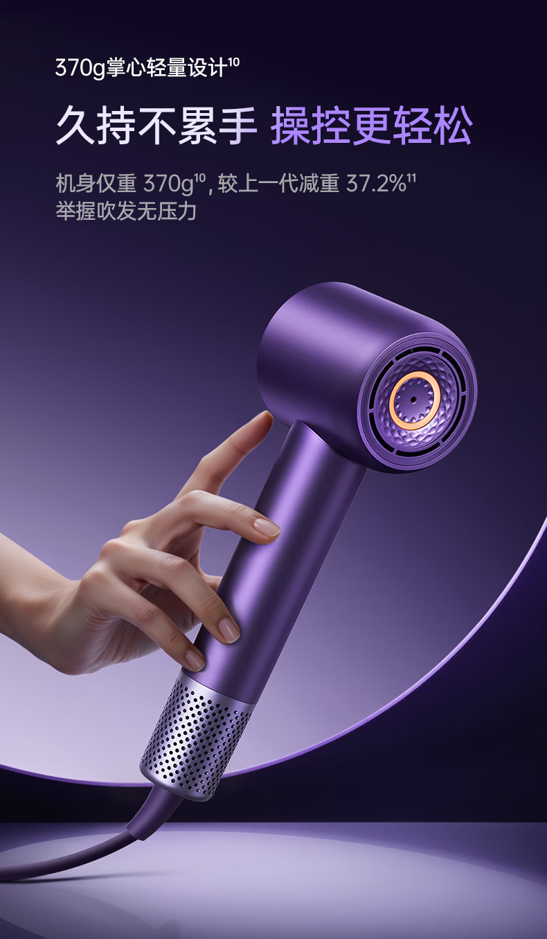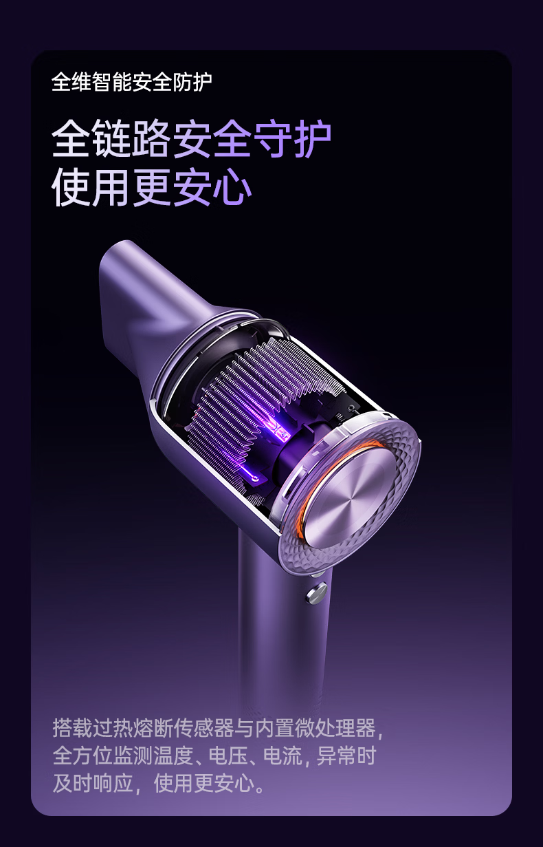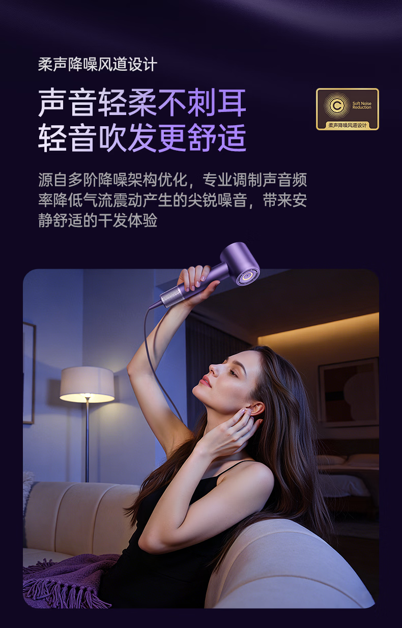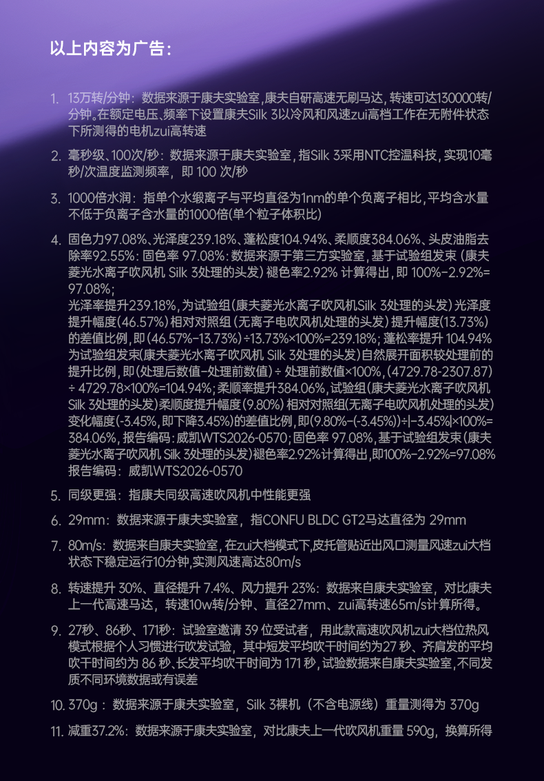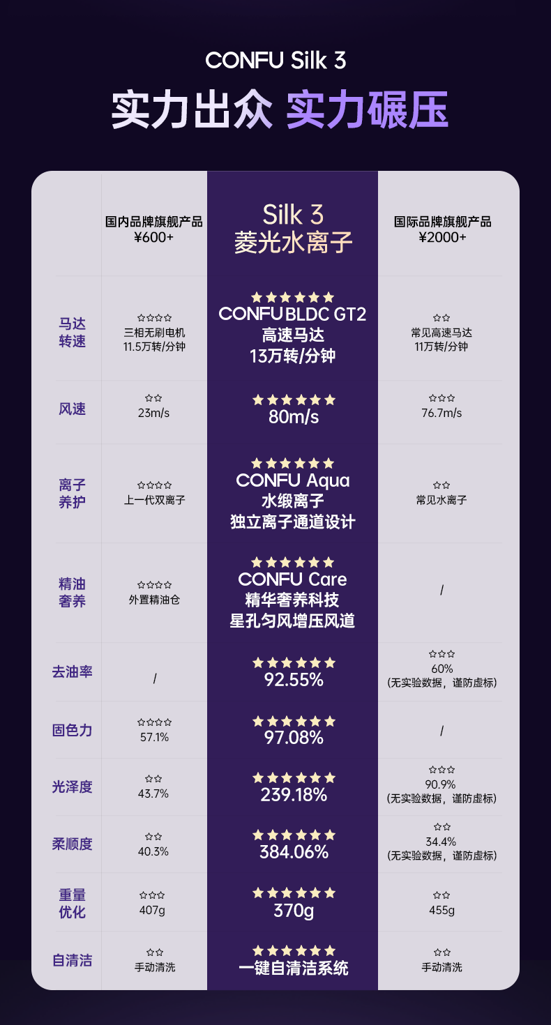 康夫(CONFU)Silk3菱光水离子高速护发吹风机精华润发静音速干13万转家用大功率电吹风筒生日礼物极光紫 养护版