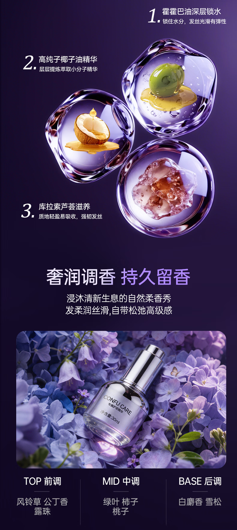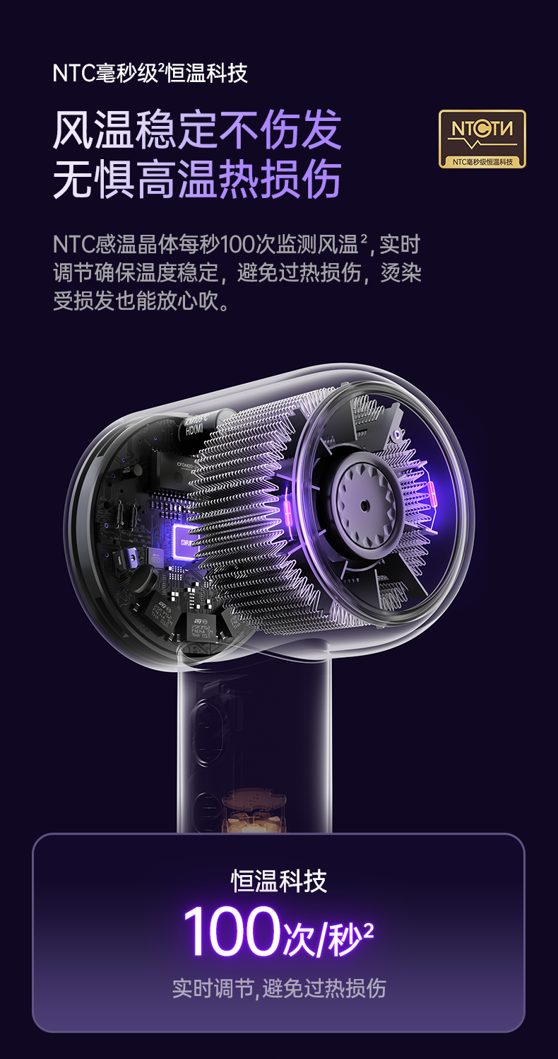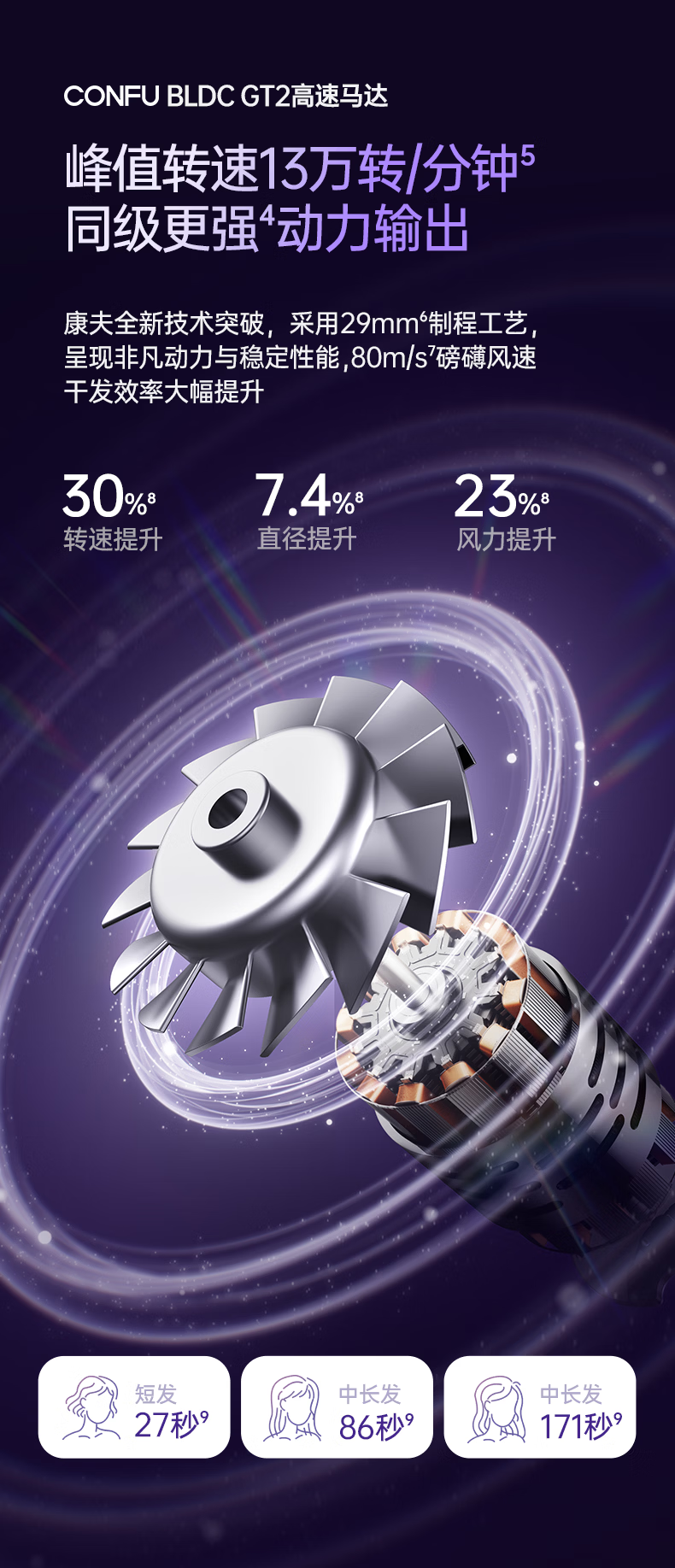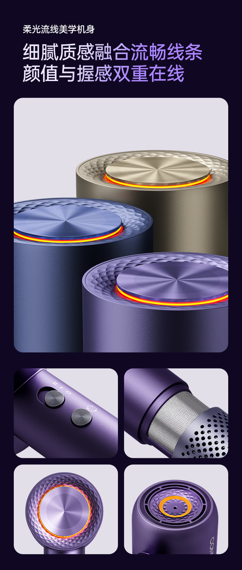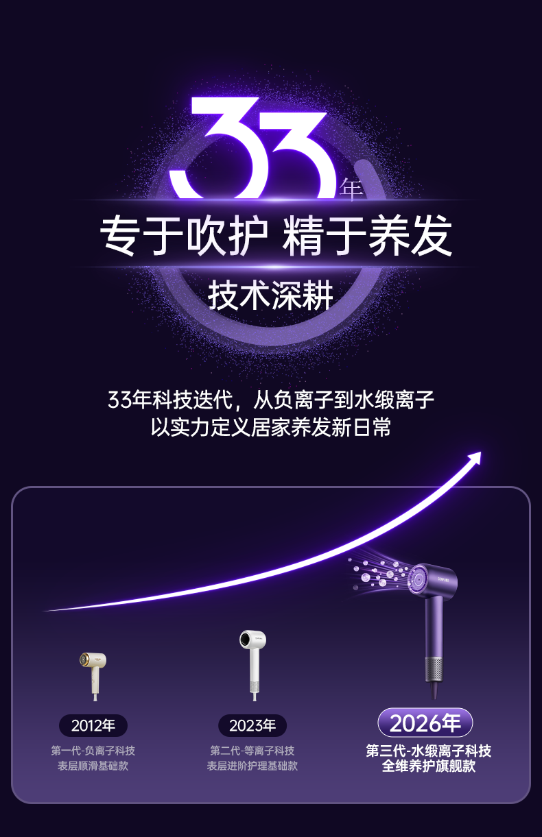 康夫(CONFU)Silk3菱光水离子高速护发吹风机精华润发静音速干13万转家用大功率电吹风筒生日礼物极光紫 养护版