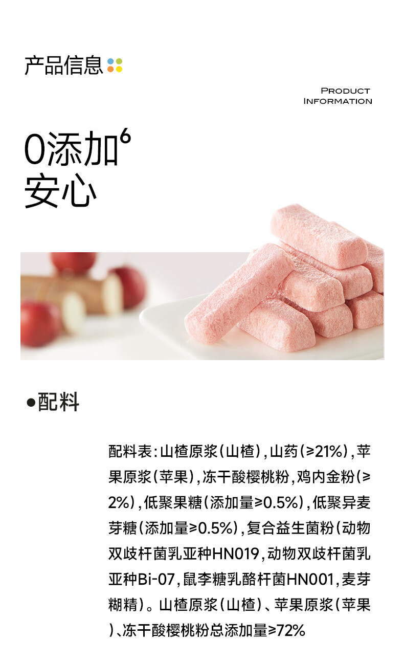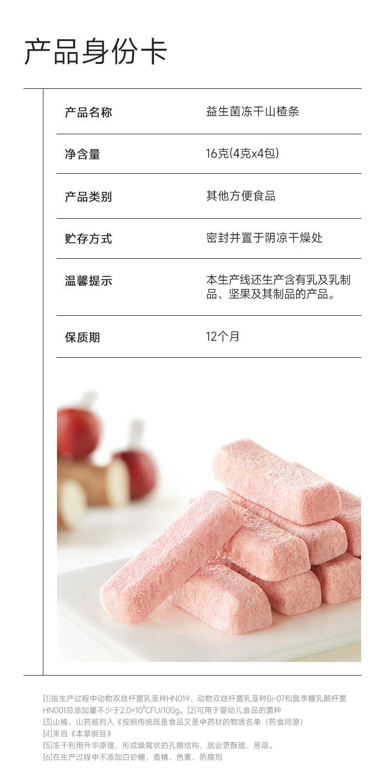 不二宝贝儿童宝宝零食冻干山楂条16g鸡内金水果条片搭无添加糖