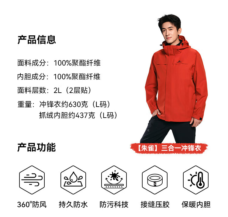 拓路者(Pioneer Camp)林更新同款朱雀硬壳冲锋衣男女户外防风防水夹克登山服 【男款】黑色 硬壳单冲 L