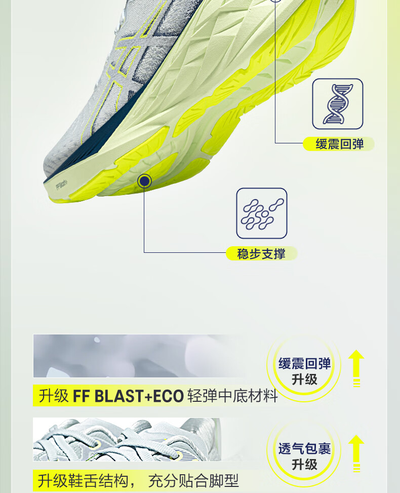 亚瑟士ASICS跑步鞋男鞋缓震运动鞋耐磨舒适跑鞋回弹舒适 NOVABLAST 4 灰色/蓝色 43.5