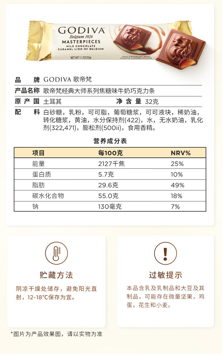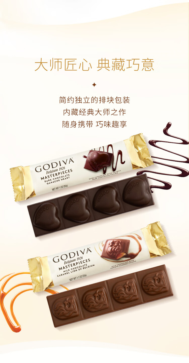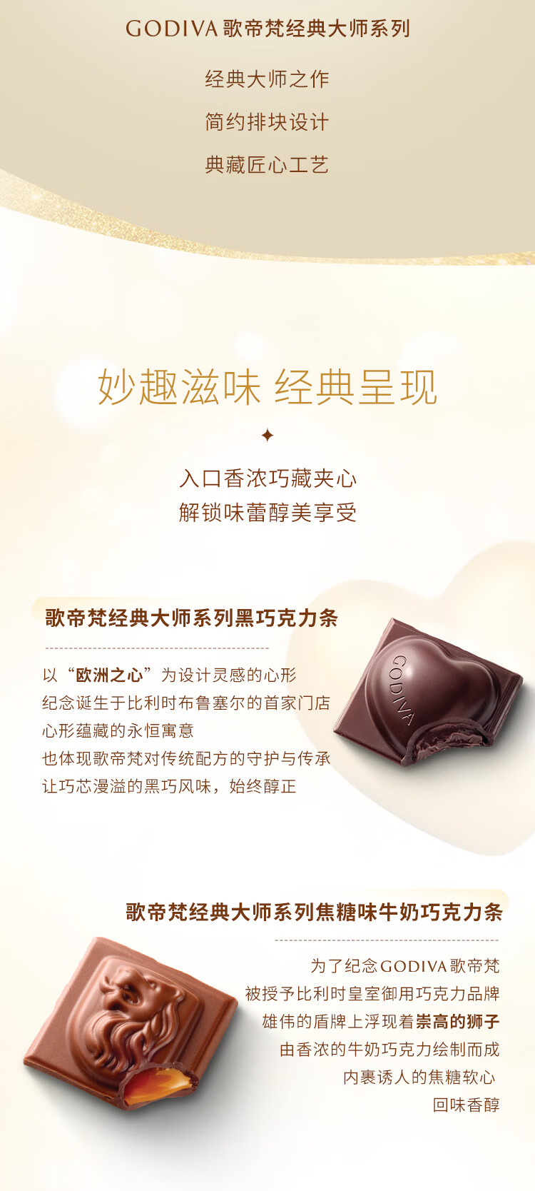 歌帝梵经典大师系列焦糖味牛奶巧克力条32g 喜糖情人节礼情人节