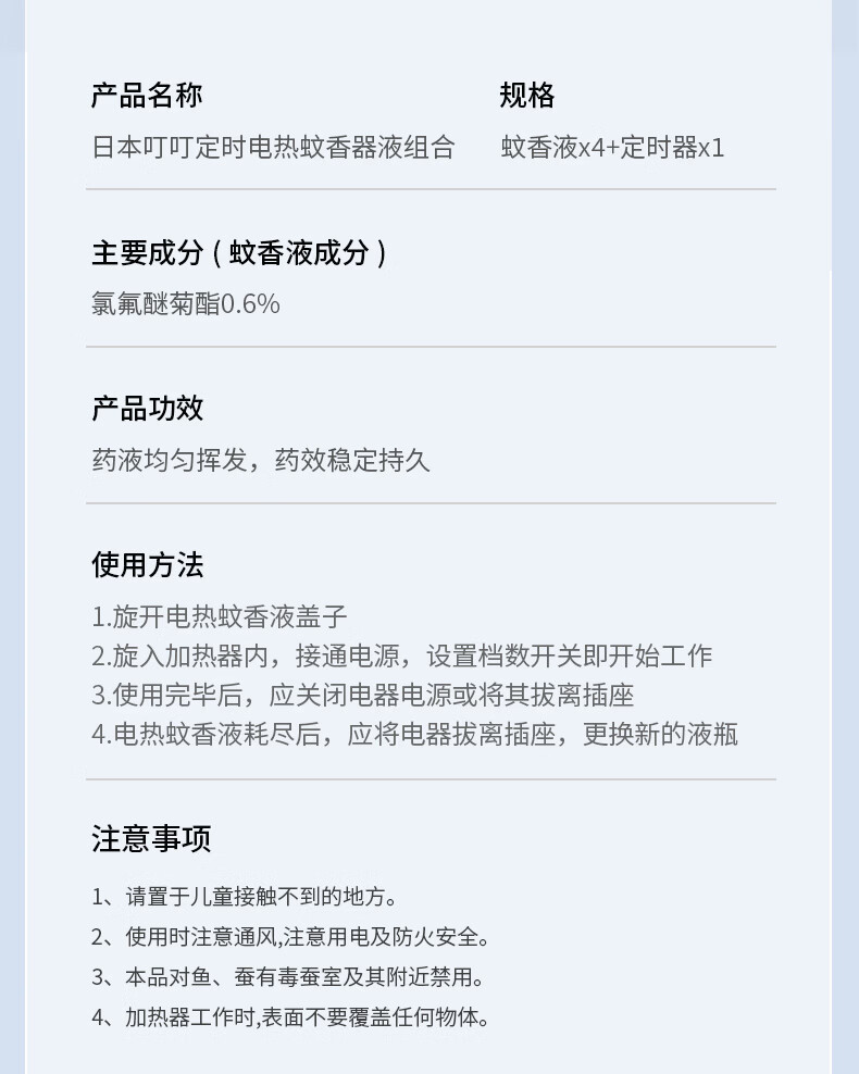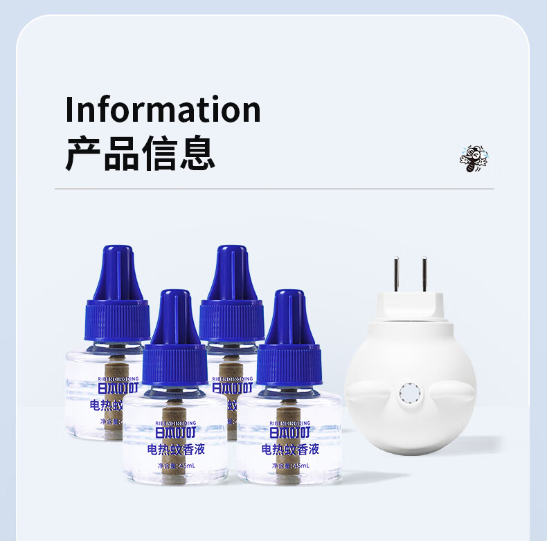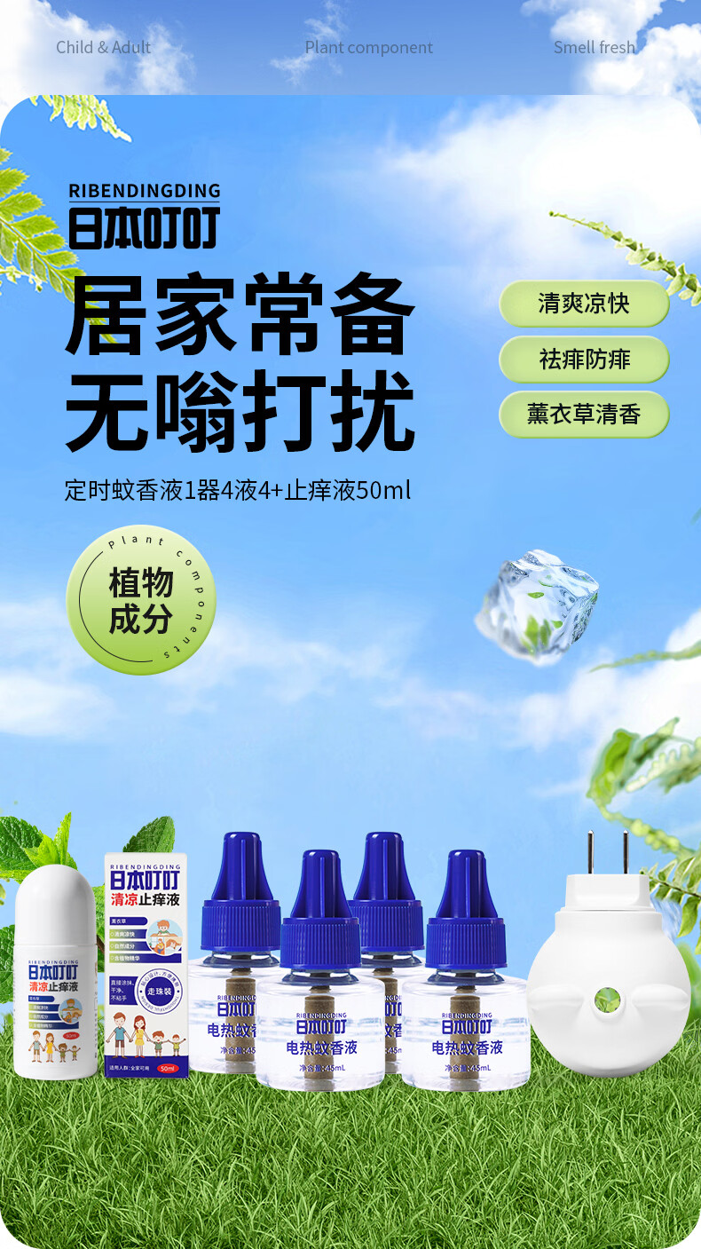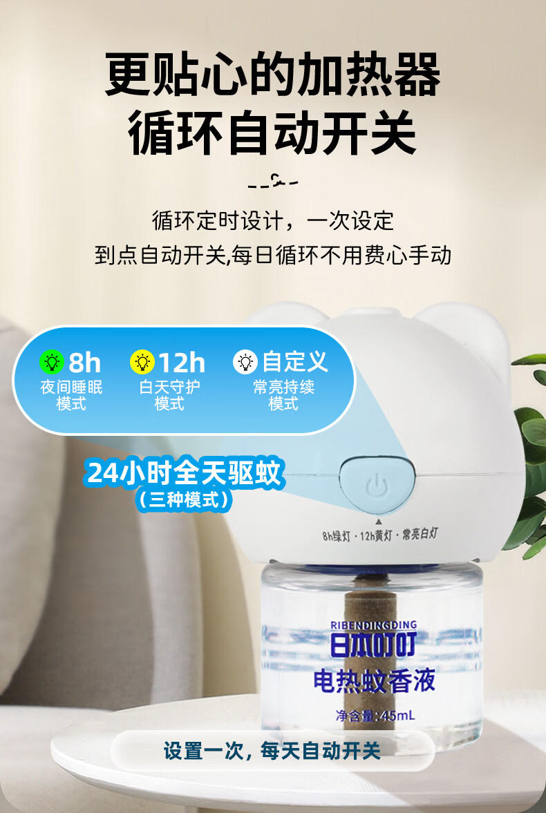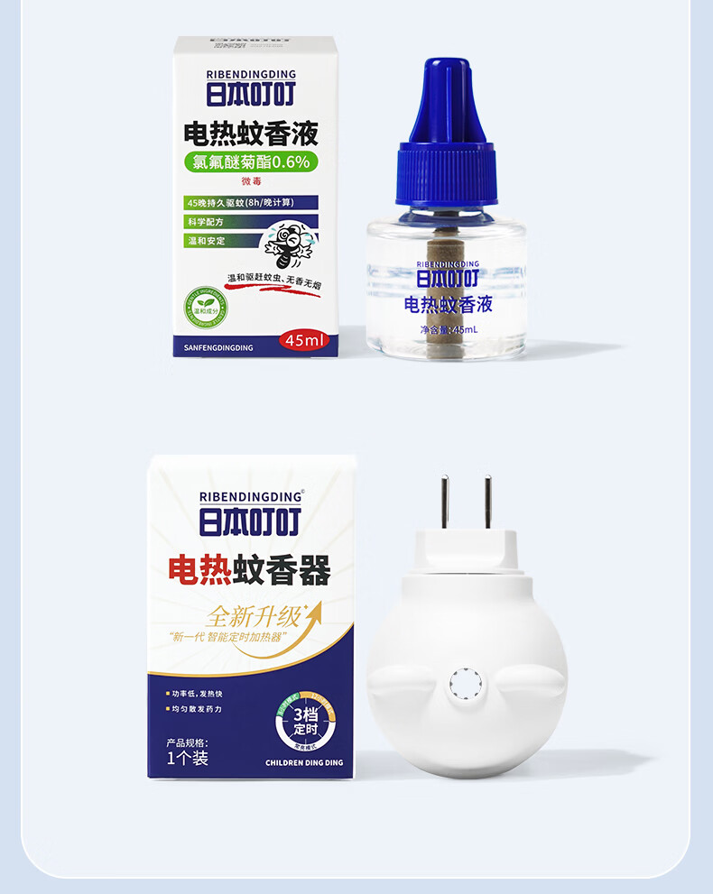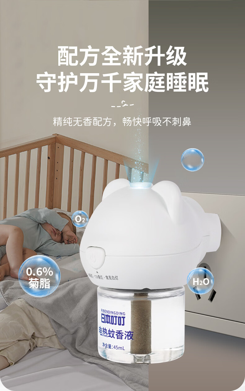 日本叮叮电蚊香液儿童驱蚊液180晚1器4液45ml定时防蚊叮咬舒缓止痒液