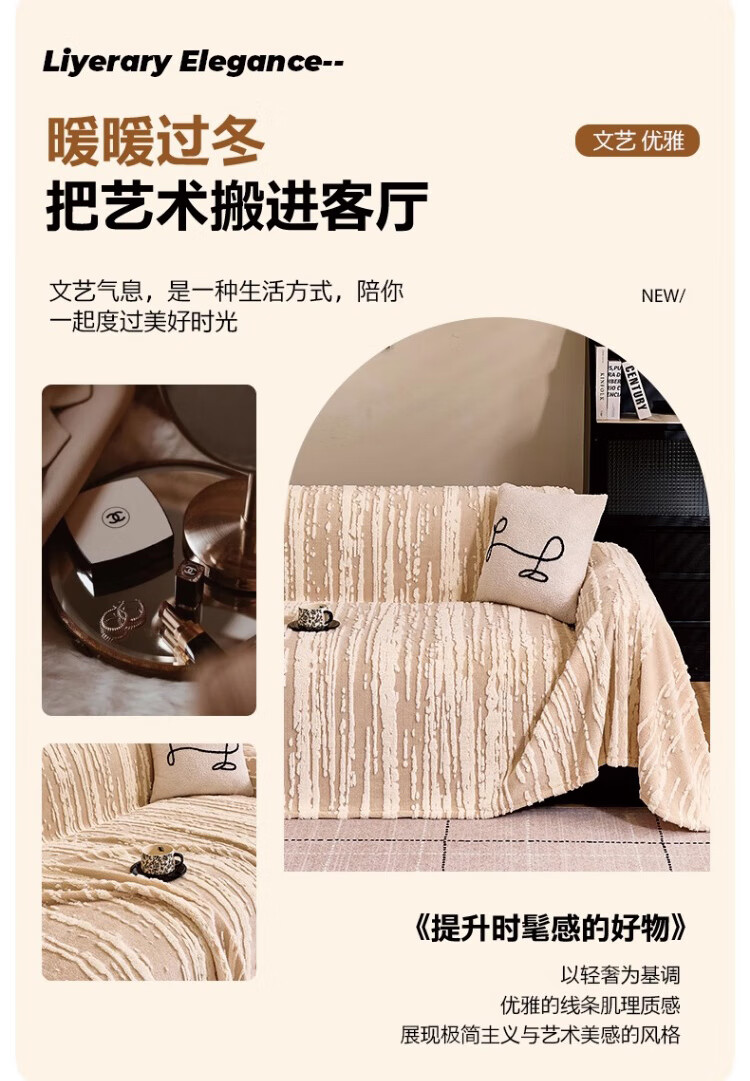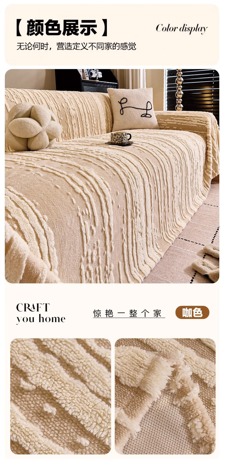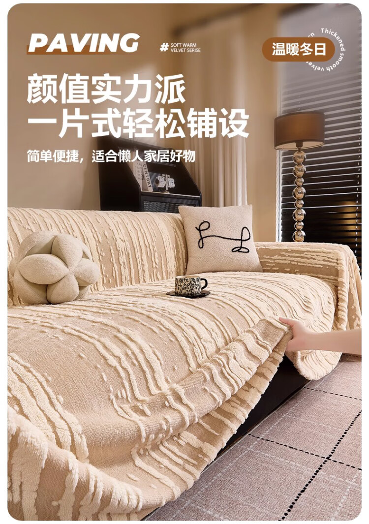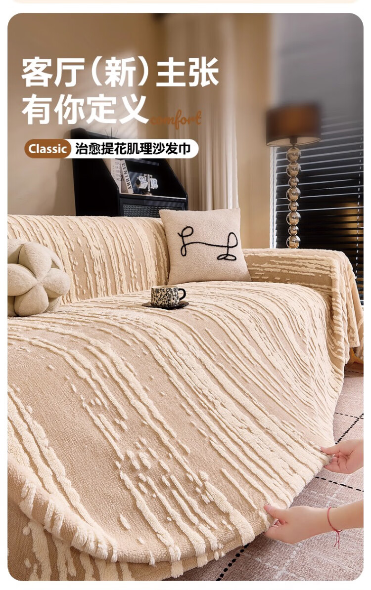 金拾美月2026新款沙发盖布巾冬季一整张加厚毛绒全盖毯防猫抓保暖坐垫套 条纹典典-咖色 180cm*130cm (适用于单人位/脚踏)