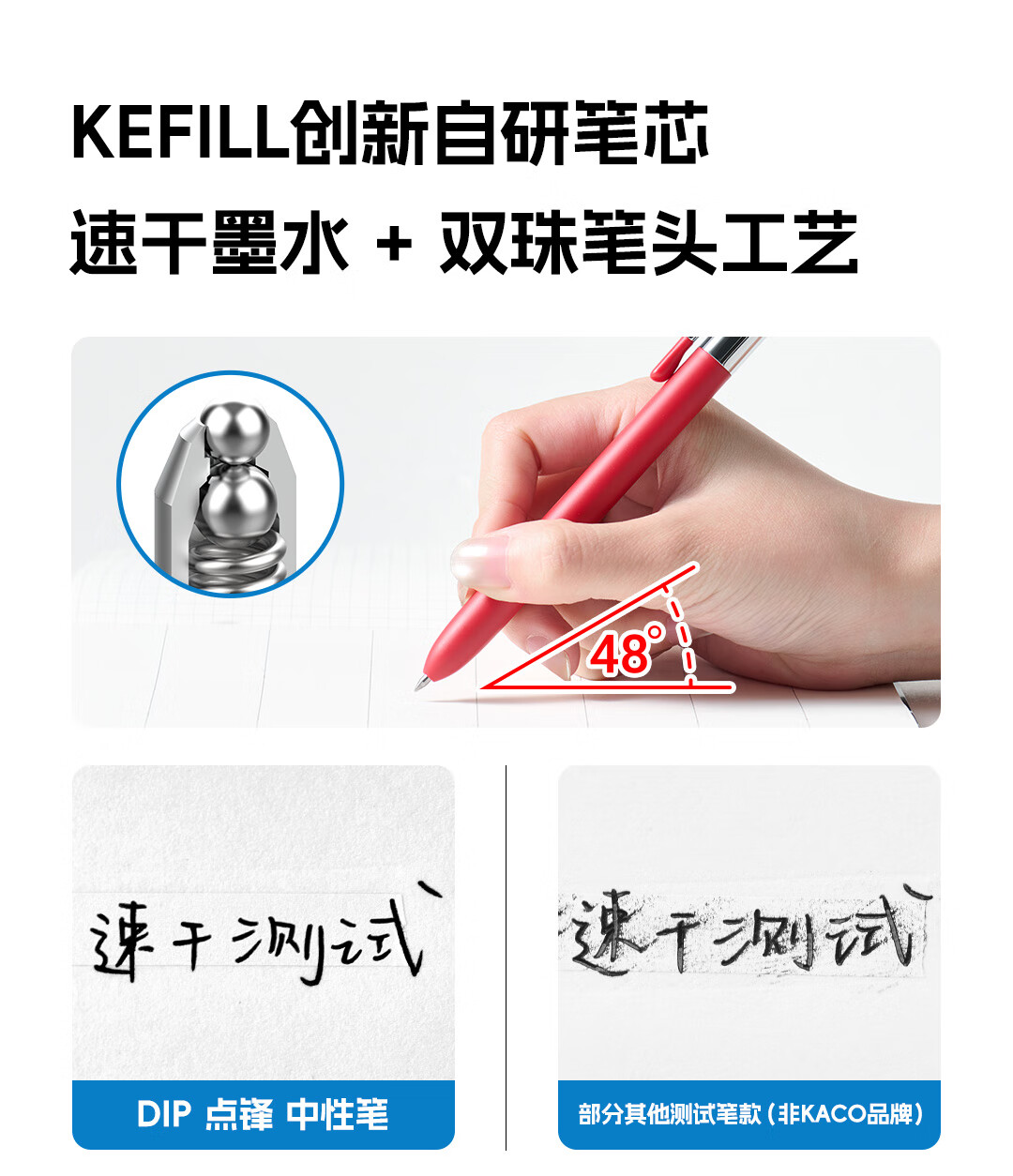 KACODIP点锋按动中性笔金属笔子弹头黑笔高颜值ins风解压按动 0.5黑学生书写刷题考研创意 灰色