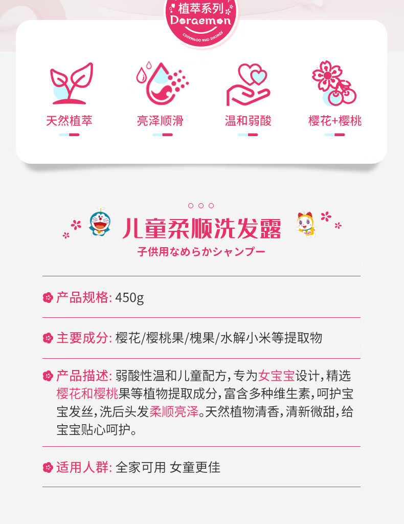 添乐 哆啦A梦儿童洗发水女童宝宝长发专用柔顺洗发露 3-6-9-12岁