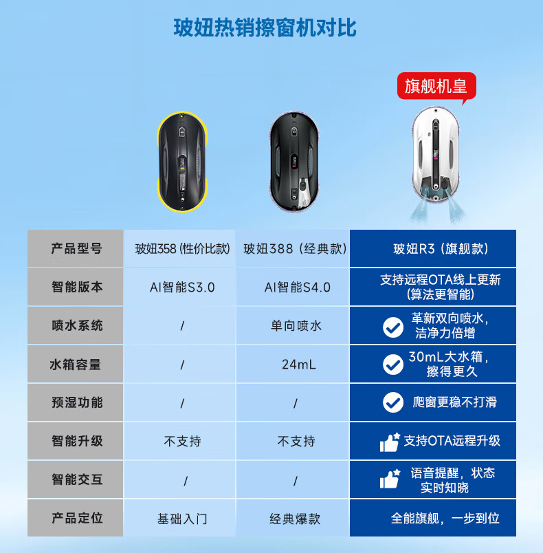 玻妞(HOBOT)全自动家用双向喷水擦窗机器人波妞擦玻璃机器人 干湿两用擦窗擦玻璃神器 玻妞R3