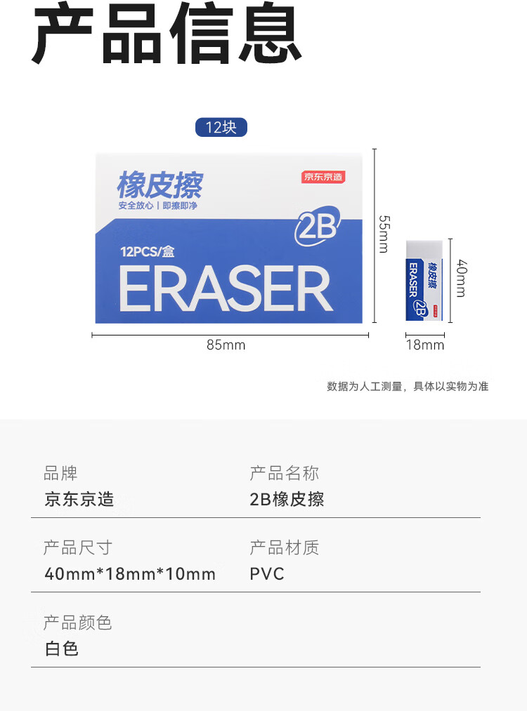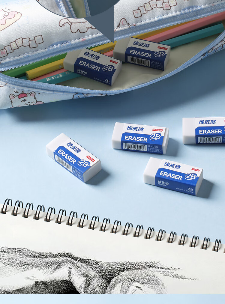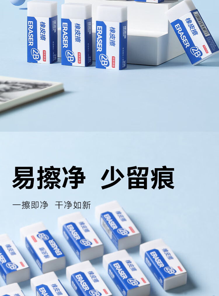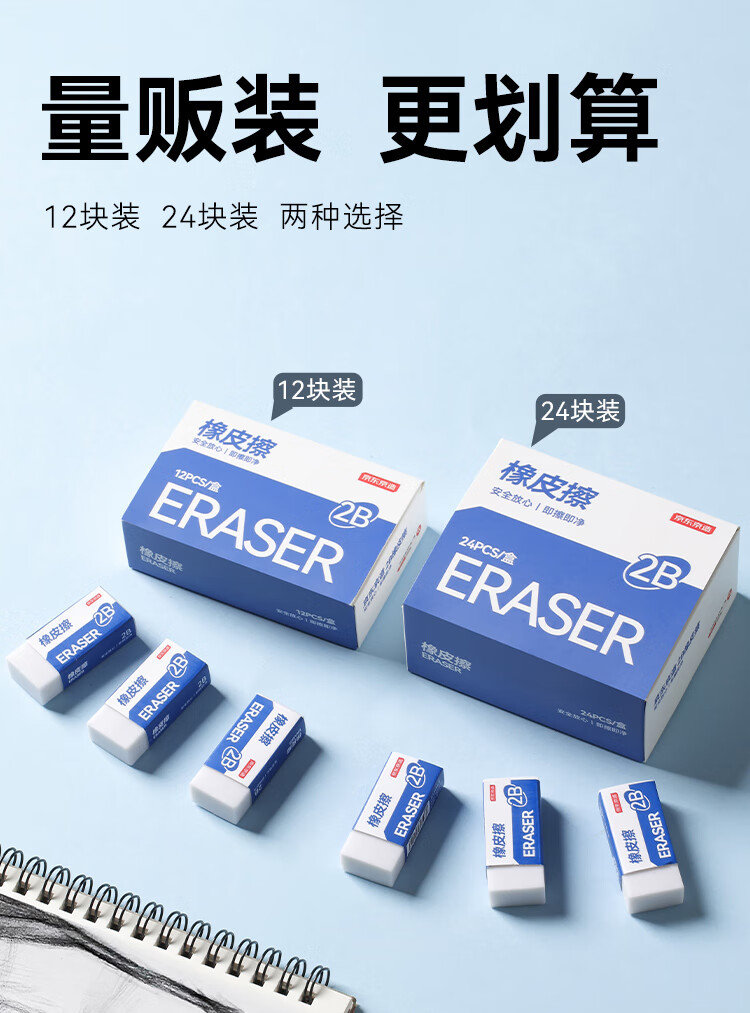 京东京造 12块2B橡皮擦 净白易擦少屑 开学文具考研中考高考学生考试美术绘图橡皮JD5037