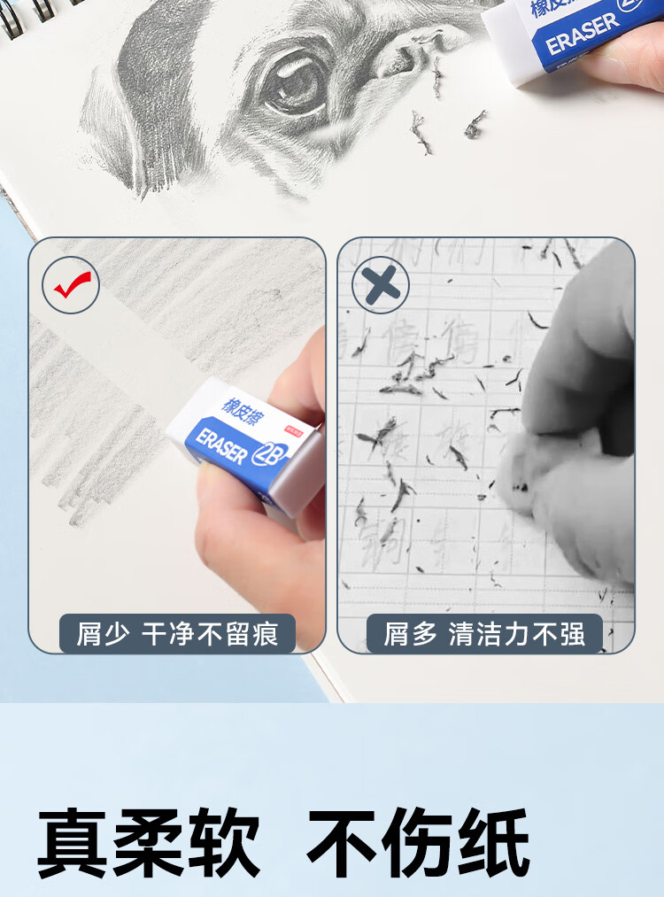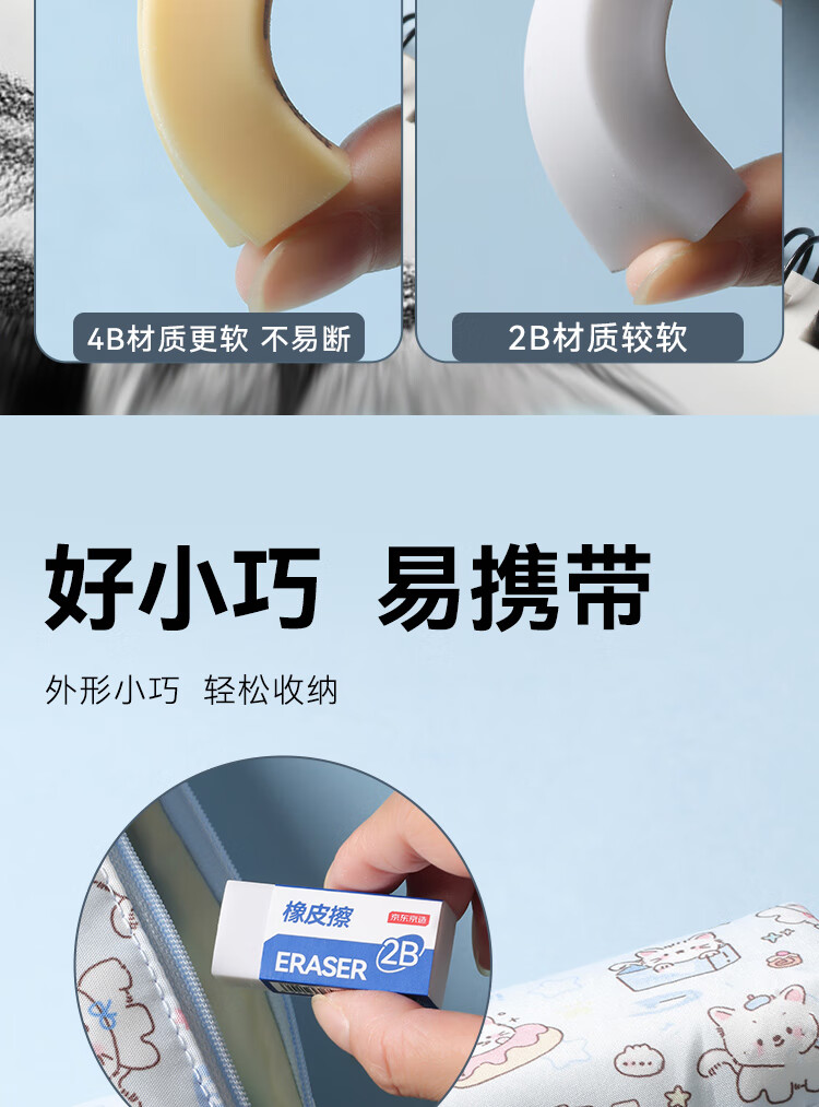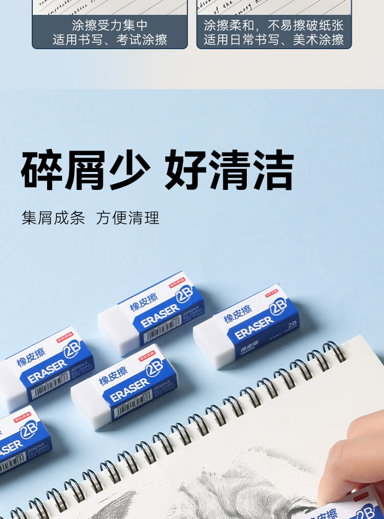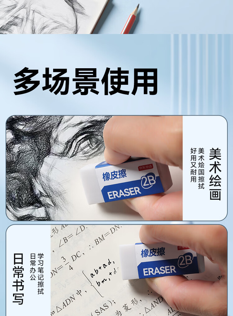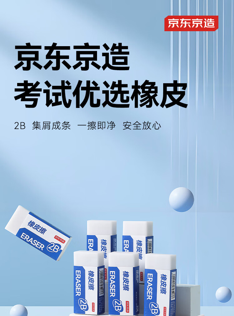 京东京造 12块2B橡皮擦 净白易擦少屑 开学文具考研中考高考学生考试美术绘图橡皮JD5037